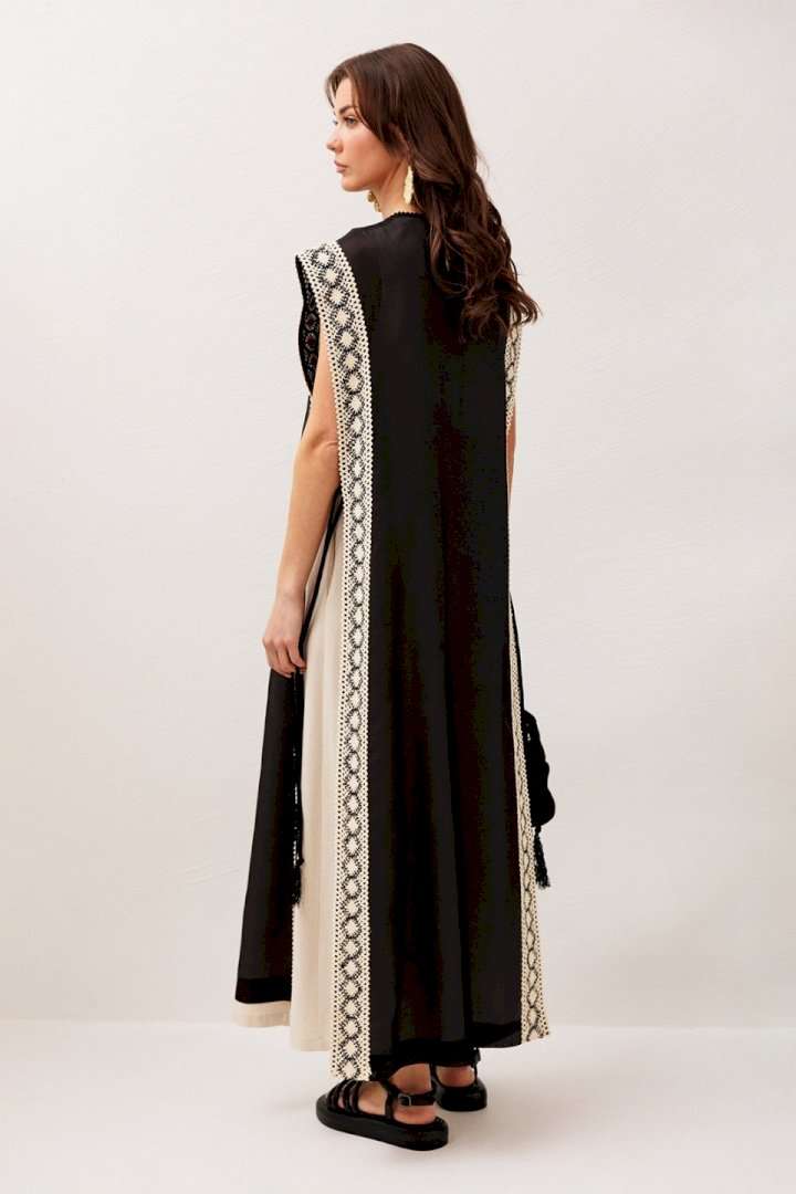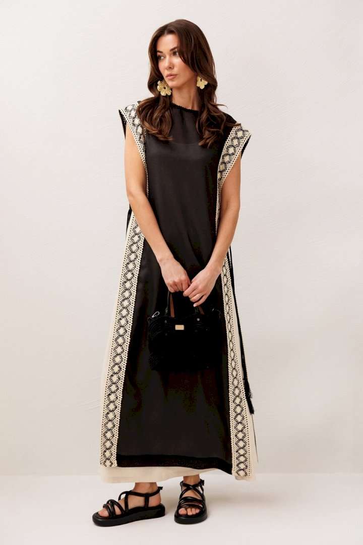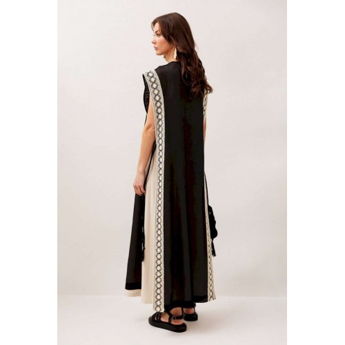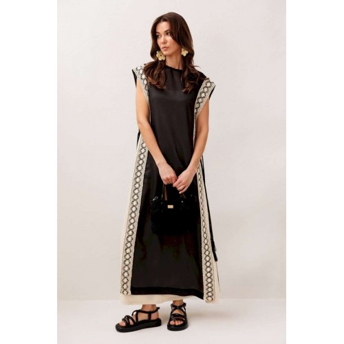 Платье 3303 черный + натуральный BUTER — это выбор для стильных и уверенных в себе женщин. Коллекция бренда BUTER предлагает платье из вискозы и полиэстера, где верхний слой из полупрозрачной ткани, расклешённый к низу. Особое очарование добавляет кружево, настроченное по бокам. Оригинальная деталь в виде завязок на декоративный шнурок и застежка на пуговицу придают платью изысканность. Внутреннее платье А-силуэта имеет боковые карманы, что делает его практичным и удобным. Это идеальный наряд на весенне-осенний период для повседневных прогулок или вечерних выходов. Платье выполнено в универсальных черно-бежевых тонах, подчеркивающих индивидуальность.