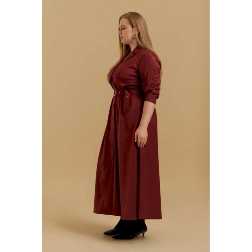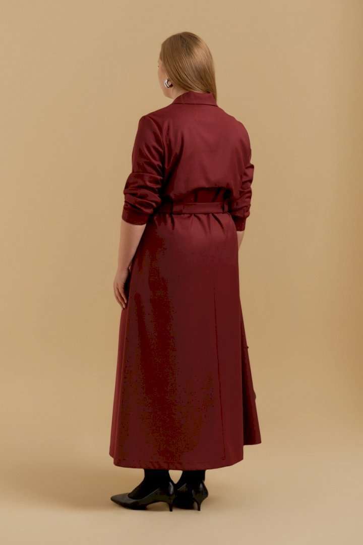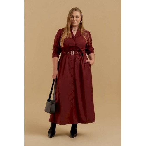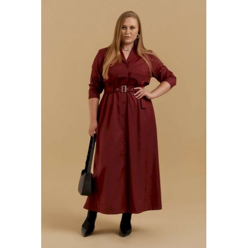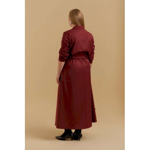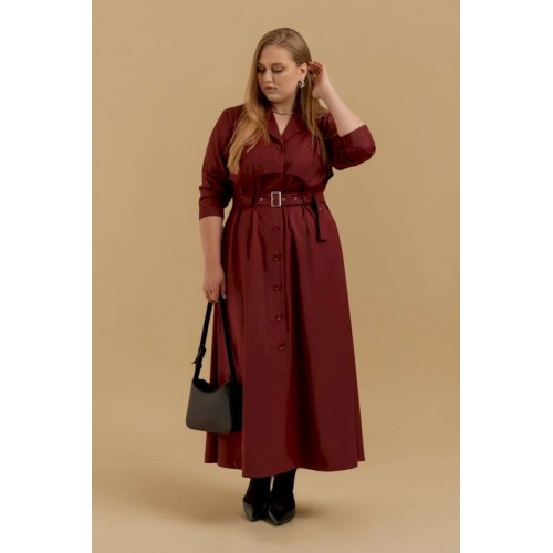 Платье женское А - силуэта из костюмной ткани. Вырез горловины оформлен воротником пиджачного типа с застежкой на петли с пуговицами. Рукава - втачные. В боковых швах выполнены карманы. Спереди и сзади изделие декорировано кокетками сложной архитектурной формы. При помощи пояса из основной ткани возможно создать приталенный силуэт.