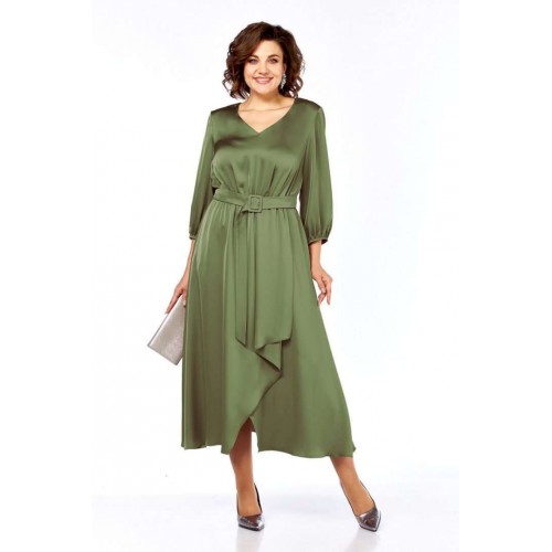 Платье женское, нарядное выполнено из плательной ткани, А-силуэта. Горловина V-образной формы. Платье отрезное по линии талии и присобрано на эластичную тесьму. В нижней части переда обработан запах с фигурной складкой. Рукава втачные, по низу присобраны на эластичную тесьму. Пояс выполнен из основной ткани. Нижняя часть платья на подкладке. Обращаем Ваше внимание, что цвет на экране может отличаться от реального.