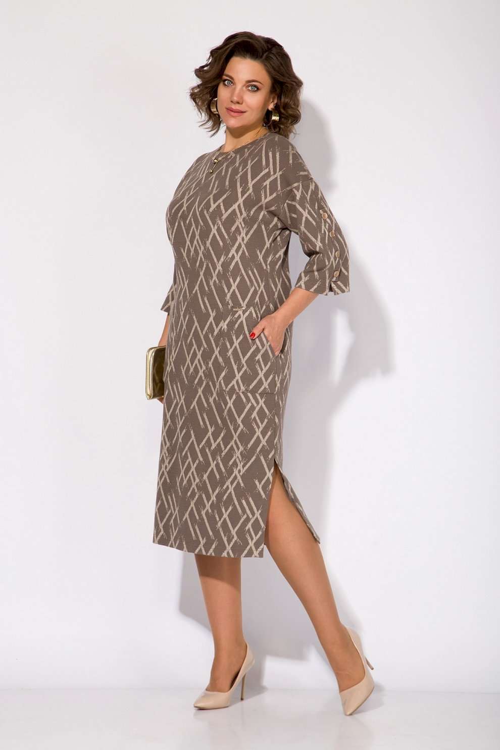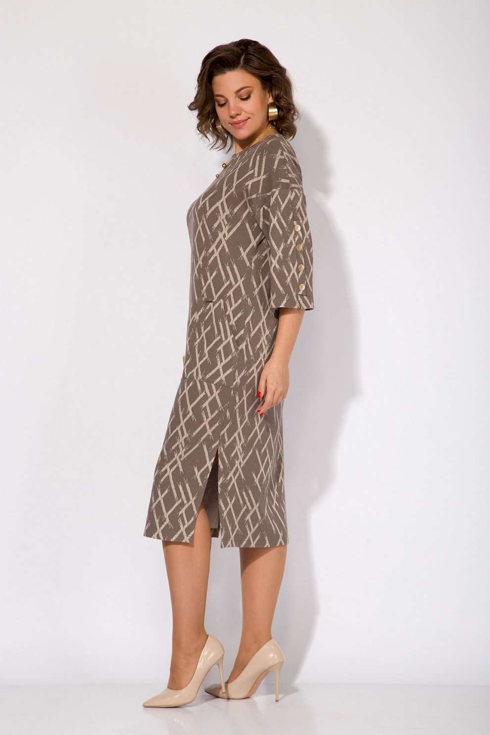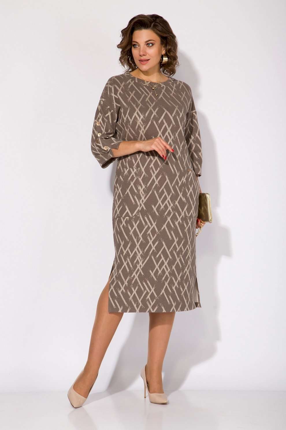 Трикотажное женское платье с накладными карманами — идеальный выбор для тех, кто ценит стиль Old money и комфорт в повседневной жизни. Модель полуприталенного силуэта со спущенной линией плеча. Рукав длиной3/4-ти с имитацией шлицы украшает ряд декоративных пуговиц. Вырез горловины округлый, на мягкой планке. Длина изделия слегка за колено, по бокам предусмотрены разрезы на свободу движения. Стильный и элегантный образ! Это трикотажное платье станет настоящей находкой для модниц, стремящихся подчеркнуть свою индивидуальность. Его универсальный фасон позволяет создавать разнообразные образы, подходящие для разных сезонов. Выбор этого платья — это инвестиция в стиль и комфорт, которые будут радовать вас каждый день. Длина по спинке – 115 см, рукав – 45 см.