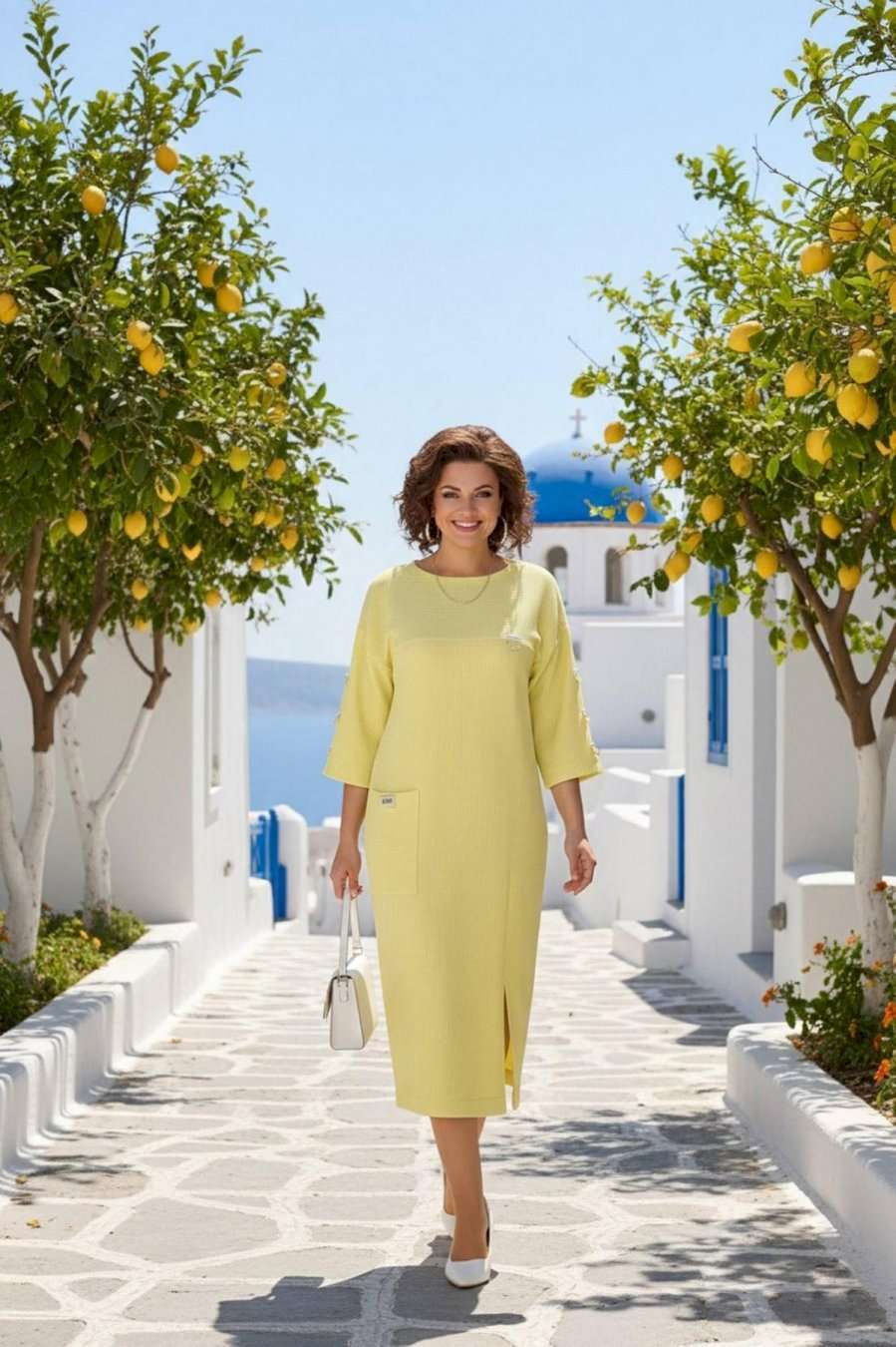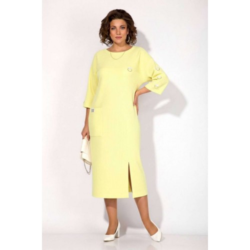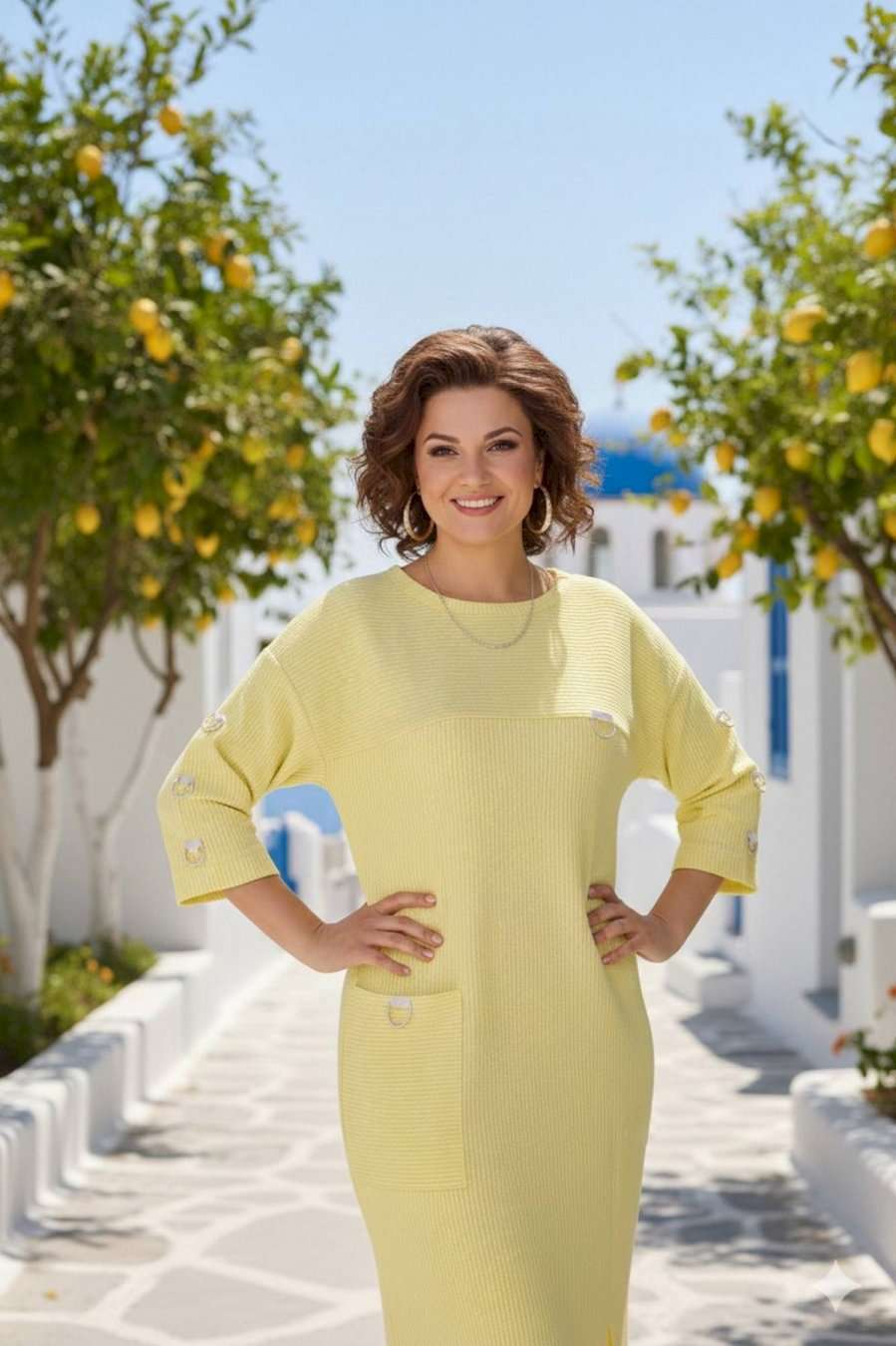 Эффектное платье выполнено из трикотажного штрукса, создано для тех, кто ценит комфорт в повседневной жизни. Модель полуприталенного силуэта со спущенной линией плеча. Рукав длиной3/4-ти украшает ряд декоративных полуколец. Вырез горловины округлый, на мягкой планке. Полочка с отрезной кокеткой и ассиметричным рельефом, переходящим в разрез на свободу движения. Ассиметричный накладной карман украшает декоративная нашивка. Это трикотажное платье станет настоящей находкой для модниц, стремящихся подчеркнуть свою индивидуальность. Его универсальный фасон позволяет создавать разнообразные образы, подходящие для разных сезонов. Выбор этого платья — это инвестиция в стиль и комфорт, которые будут радовать вас каждый день. Длина по спинке – 115 см, рукав – 45 см.