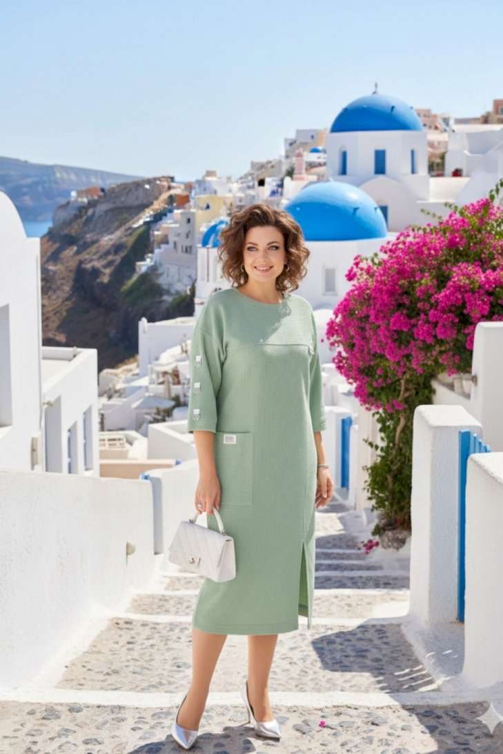 Эффектное платье выполнено из трикотажного штрукса, создано для тех, кто ценит комфорт в повседневной жизни. Модель полуприталенного силуэта со спущенной линией плеча. Рукав длиной3/4-ти украшает ряд декоративных полуколец. Вырез горловины округлый, на мягкой планке. Полочка с отрезной кокеткой и ассиметричным рельефом, переходящим в разрез на свободу движения. Ассиметричный накладной карман украшает декоративная нашивка. Это трикотажное платье станет настоящей находкой для модниц, стремящихся подчеркнуть свою индивидуальность. Его универсальный фасон позволяет создавать разнообразные образы, подходящие для разных сезонов. Выбор этого платья — это инвестиция в стиль и комфорт, которые будут радовать вас каждый день. Длина по спинке – 115 см, рукав – 45 см.