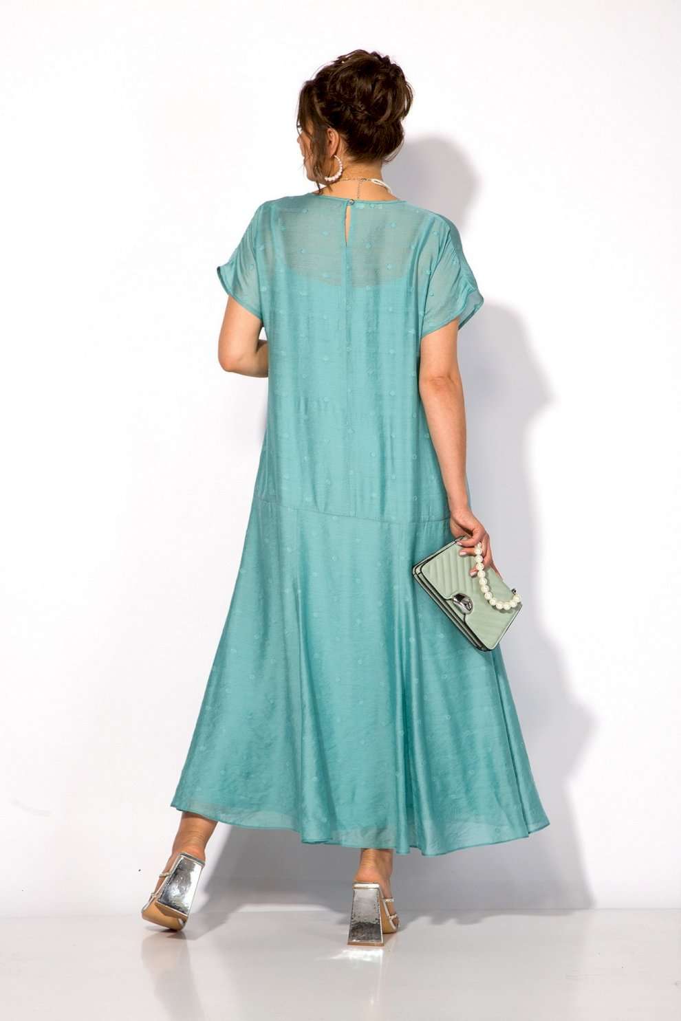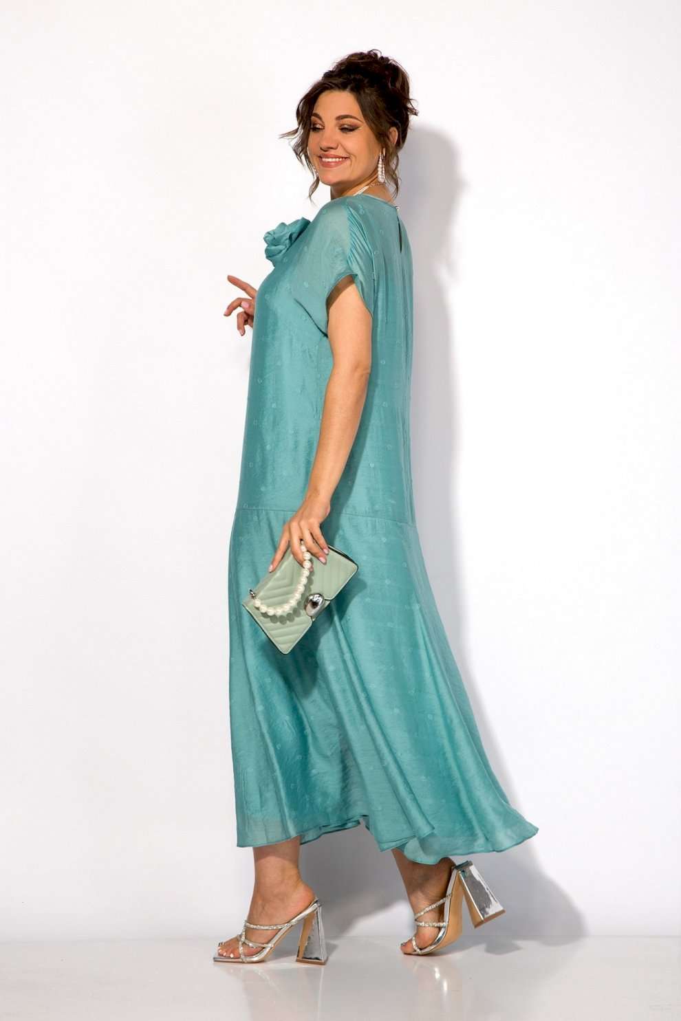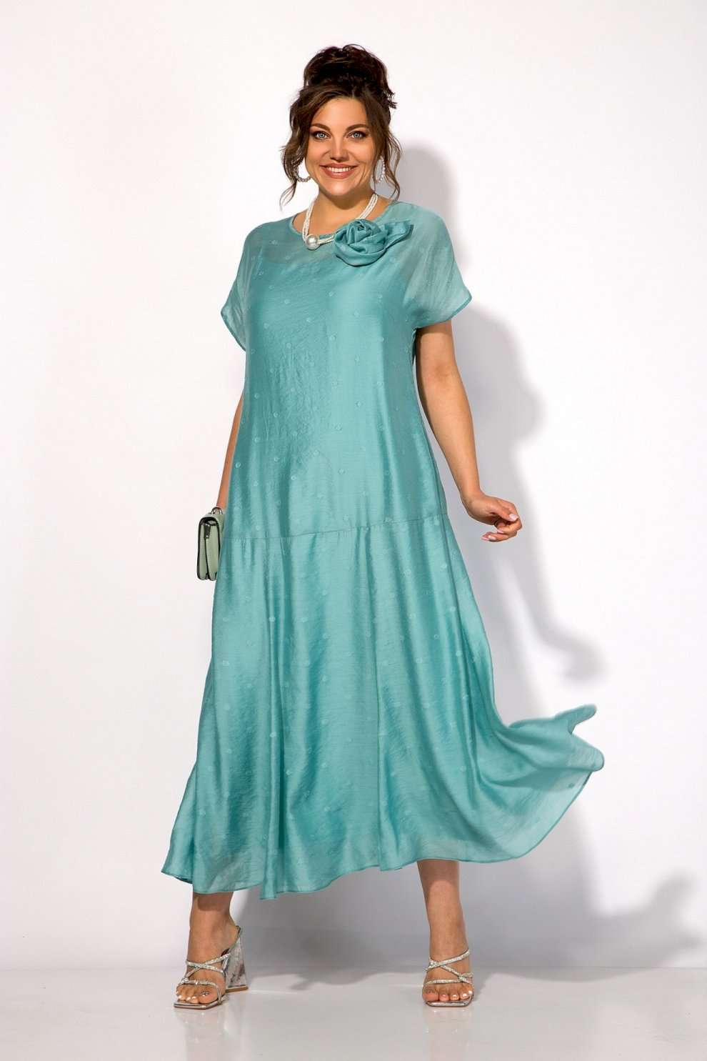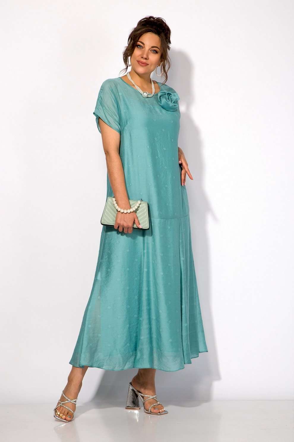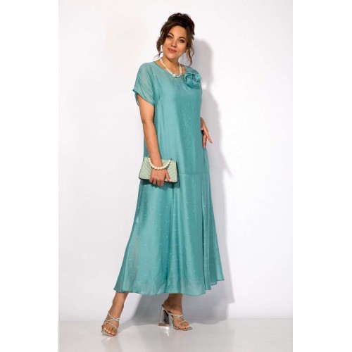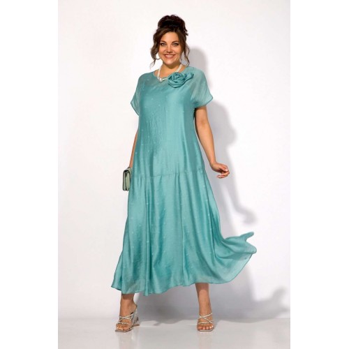 Платье 1524 Liliana-style из коллекции бренда LILIANA – это воплощение женственности и утонченного стиля. Изготовлено из легкой вискозы, что придаёт ему мягкость и комфорт в ношении. Свободный силуэт с округлым вырезом и короткими рукавами создают романтичный образ, а макси-длина подчеркивает изящество. Платье украшено съемной брошью в виде цветка, акцентируя внимание на линии лифа. Модель идеально подходит для торжественных мероприятий, благодаря универсальному праздничному стилю и нежному бирюзовому цвету. Длина изделия составляет 145 см, что делает его идеальным выбором как для дневных выходов, так и для вечеринок.