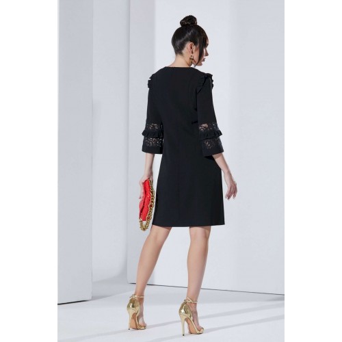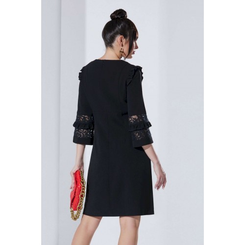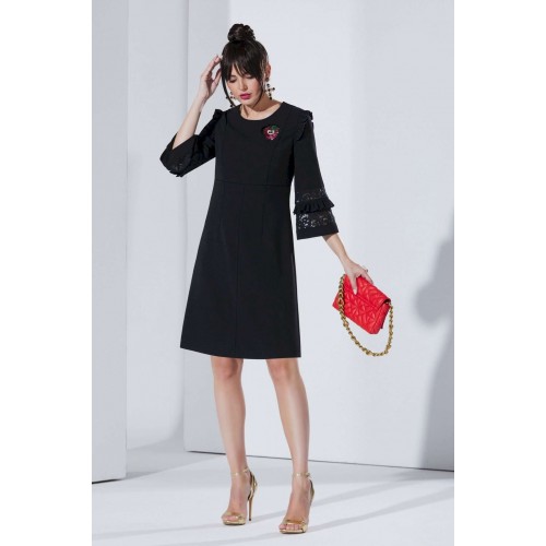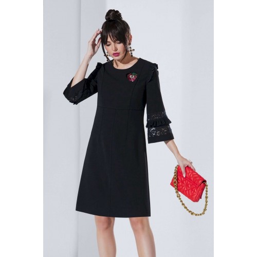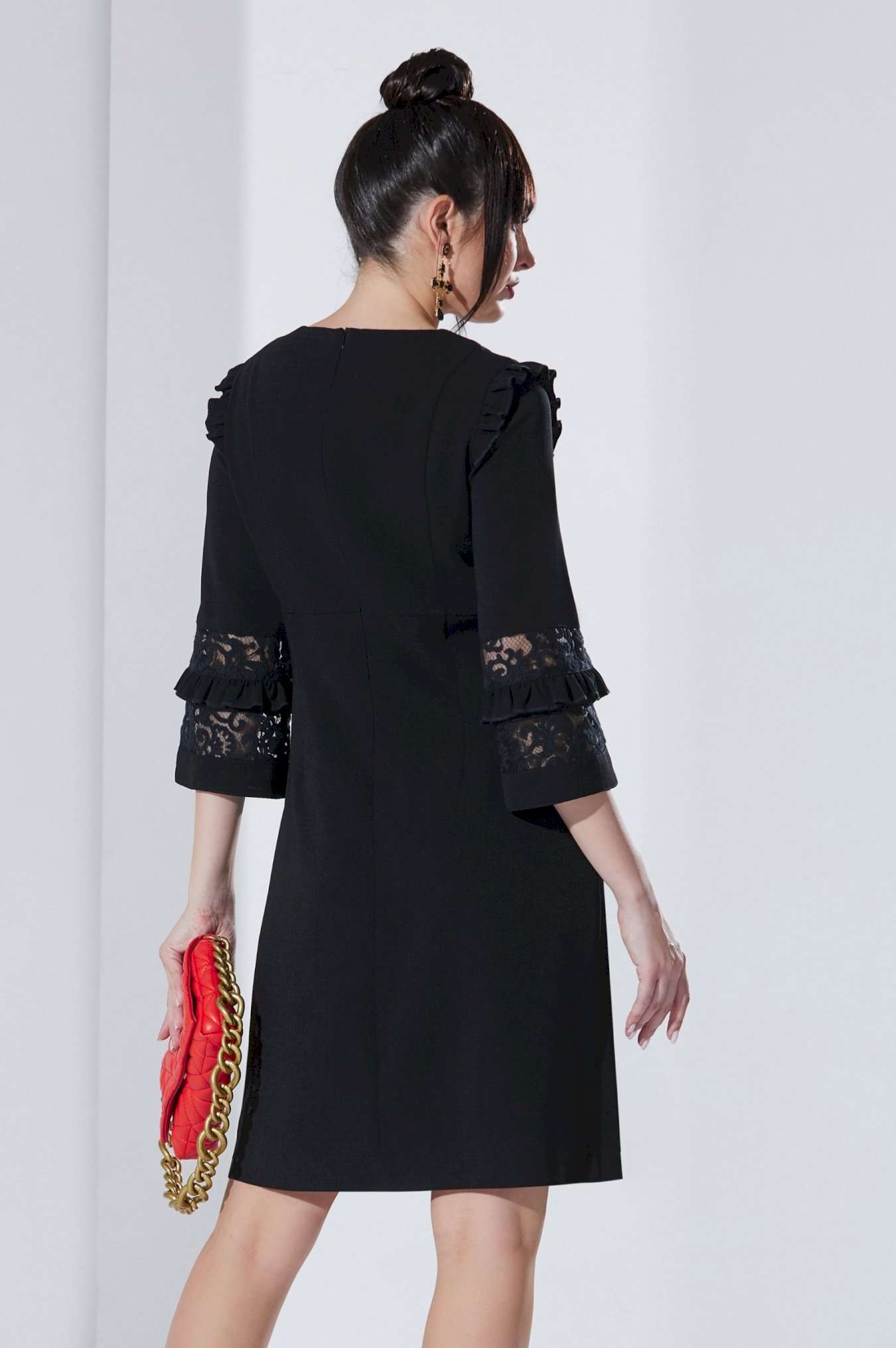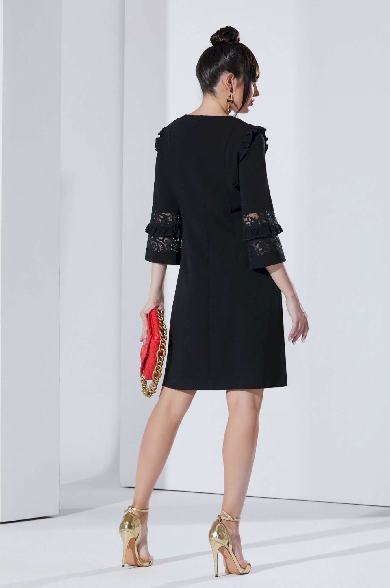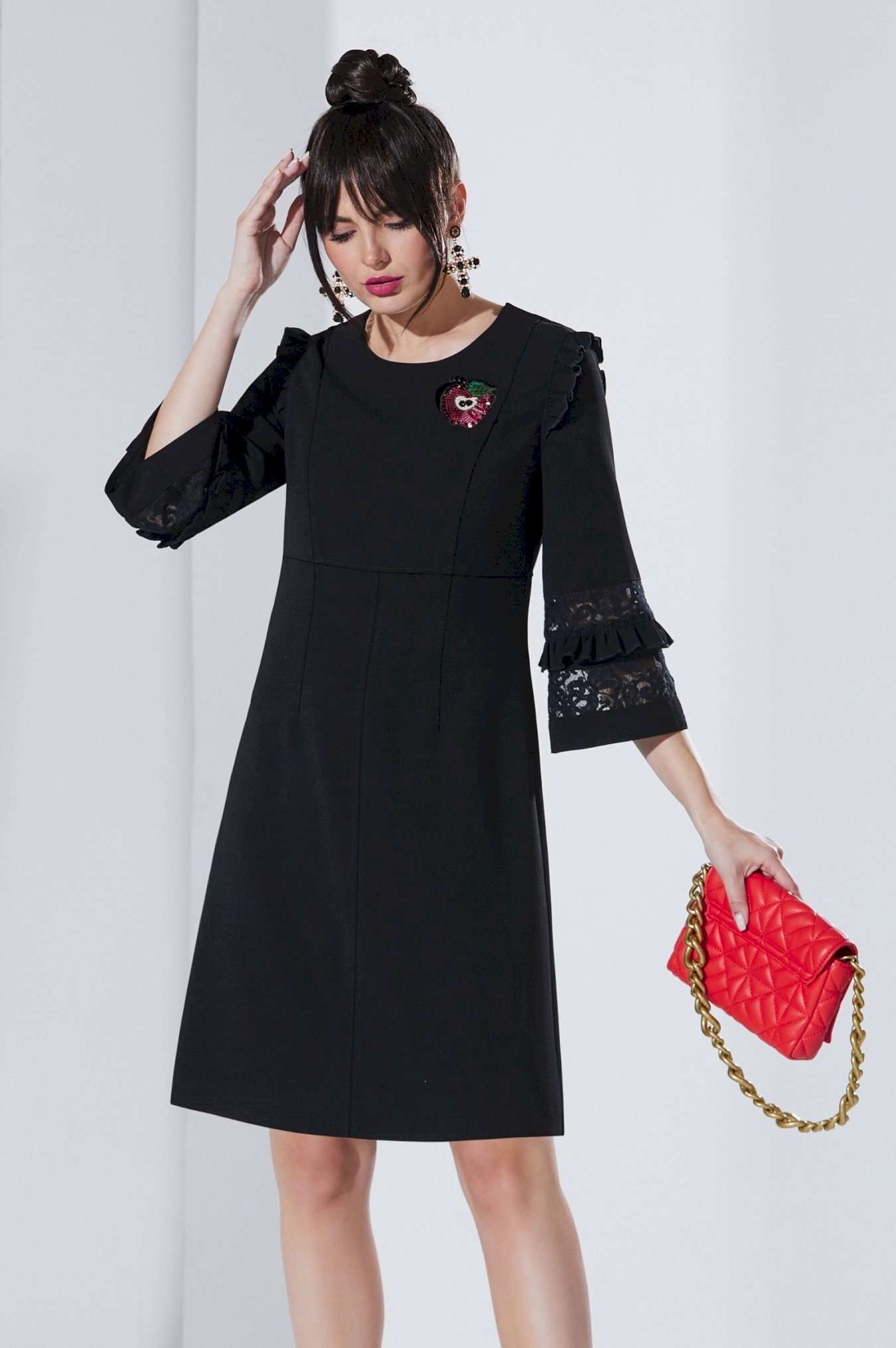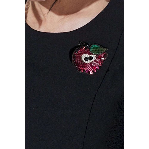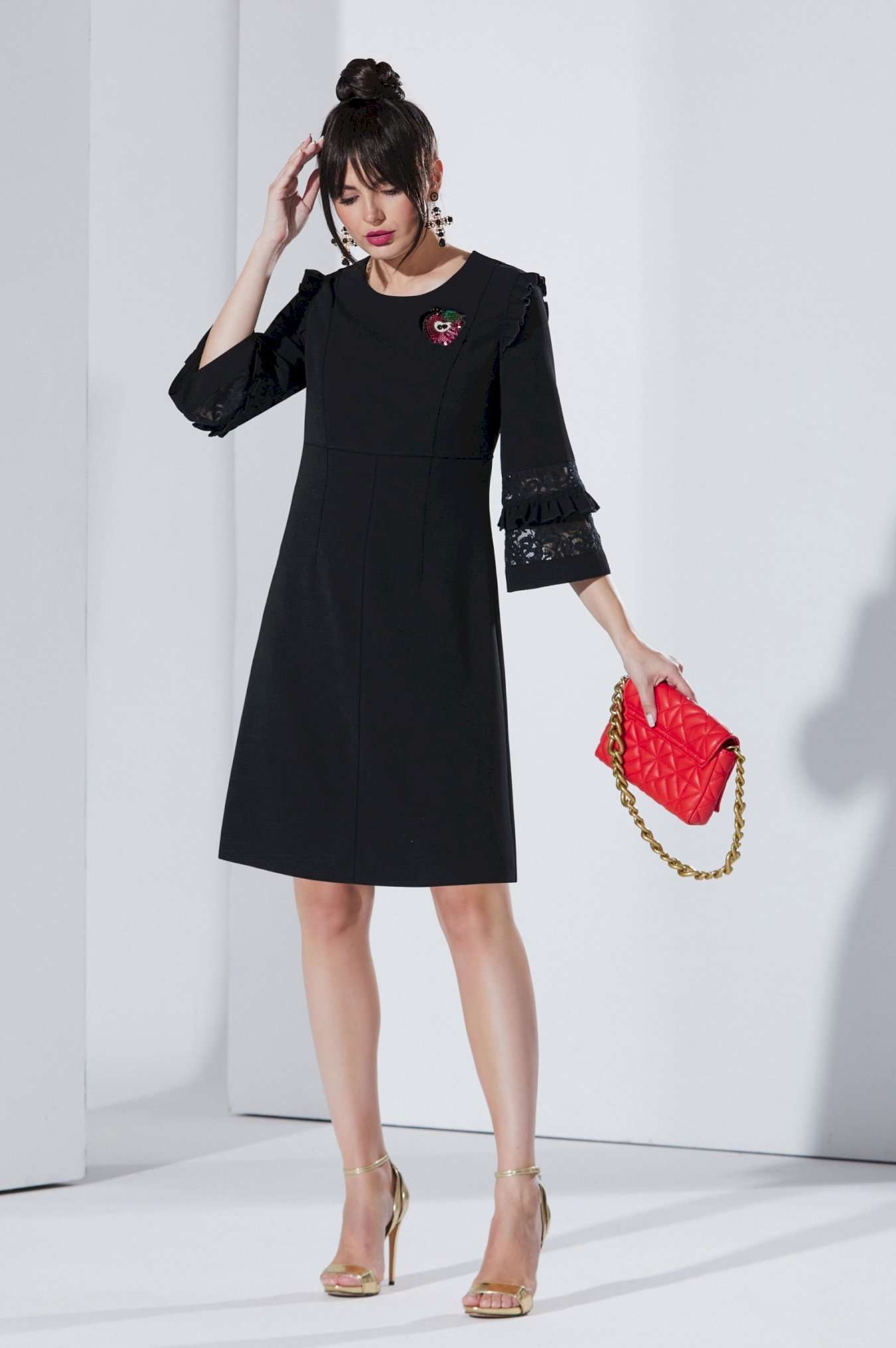 Платье с округлым вырезом горловины, отрезное выше линии талии. Брошь входит в комплект. Перед со средним швом от отрезной детали и двумя рельефами до неё. Спинка с потайной молнией в среднем шве и двумя рельефами до отрезной детали. Рукава втачные с 4-ям отрезными деталями по низу. По окату рукава вставлен рюш из основной ткани. Изделие на подкладке от отрезной по талии. Дизайн БРОШИ может быть видоизменен !