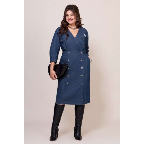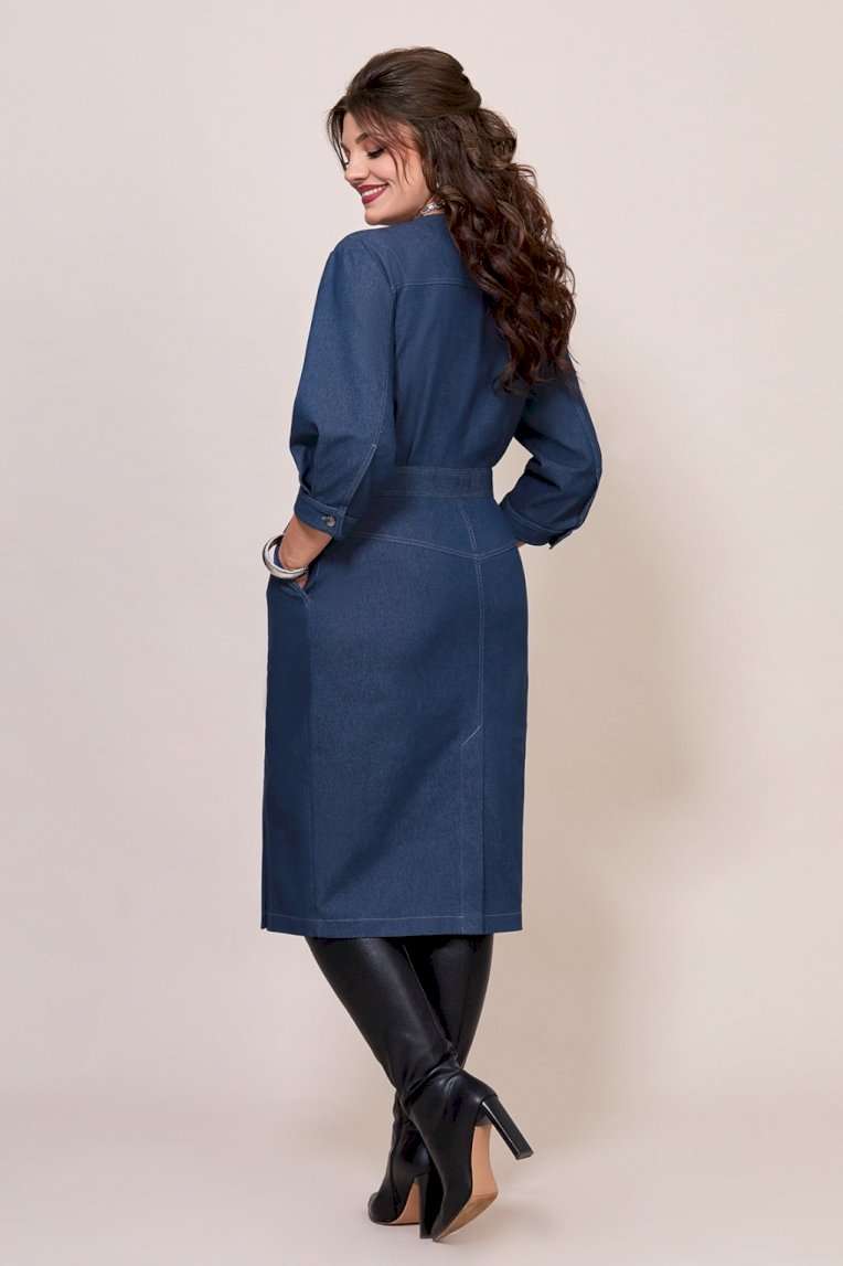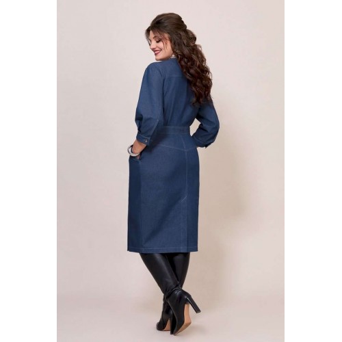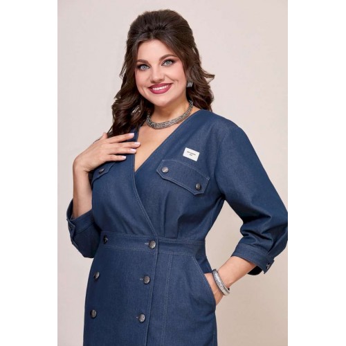 Стильное, женское платье полу-прилегающего силуэта, выполнено из джинса. Лиф платья отрезной по линии талии, горловина V-образной формы, на обтачке, также на полочке обработаны клапаны. Юбка платья прямого покроя, вертикальными подрезами, также на юбке обработана двубортная застежка на петли-пуговицы. Рукав втачной, оптимальной длины, по низу на манжете, с застежкой на пуговицу. Спинка отрезная по линии талии, с втачным поясом, лиф с отрезной кокеткой, юбка также с кокеткой и средним швом. Стильное платье из джинса всегда будет актуальным в любое время года. Длина 110 см. в 52р. Ширина груди- 56см, Ширина талии -47см, Ширина бедер- 59см, длина рукава- 46см, ширина рукава 22см