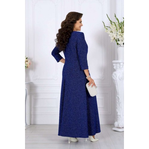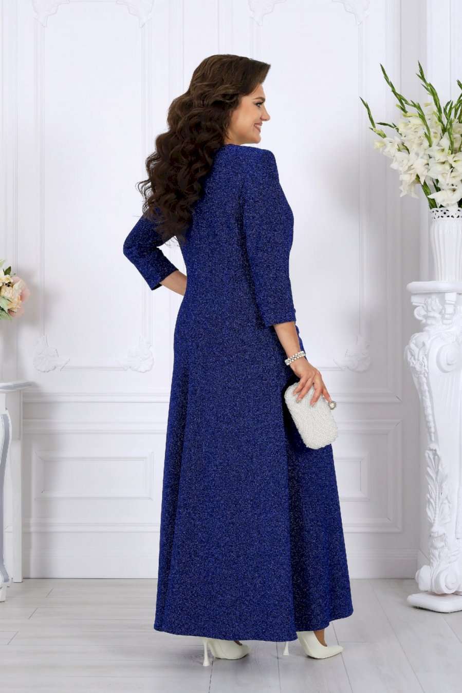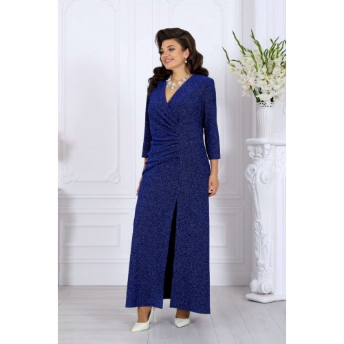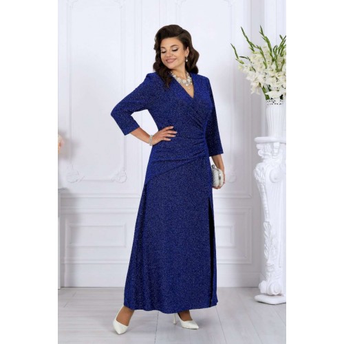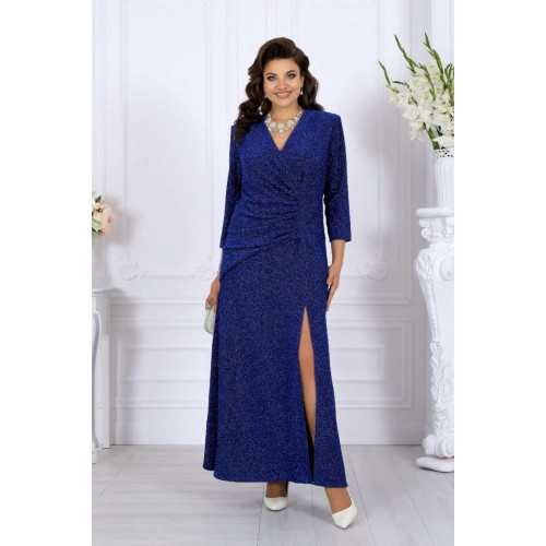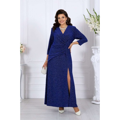 Элегантное вечернее платье из люрекса — создано для особенных событий. Изысканное длинное платье, которое подчеркивает женственность и утонченность. Выполнено из благородного трикотажного полотна с мерцающим люрексом — ткань мягко драпируется, не сковывает движения и эффектно играет при каждом шаге. Асимметричный перед с запахом и деликатными драпировками визуально стройнит и формирует правильный силуэт для женщин с формами. Глубокий разрез добавляет образу легкой смелости, оставаясь элегантным и уместным на торжественных мероприятиях. Платье женское, расширенное к низу, выполнено из трикотажного полотна с фактурной лицевой стороной «люрекс». Модель на трикотажной подкладке, с плечевыми накладками. Перед платья асимметричный, состоит из двух деталей, скрепленных на запах. На левой детали переда обработан рельефный шов с разрезом по низу. Правая деталь переда задрапирована сборкой и входит в рельеф на участке между двумя горизонтальными подрезами боковой части переда. На спинке обработаны талиевые вытачки и средний шов с застежкой на потайную тесьму-«молнию» (50 см). Рукав трехчетвертной. Длина платья – 137 см. Длина рукава – 47 см