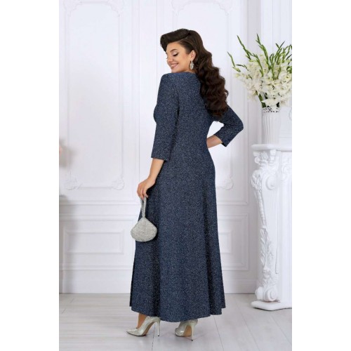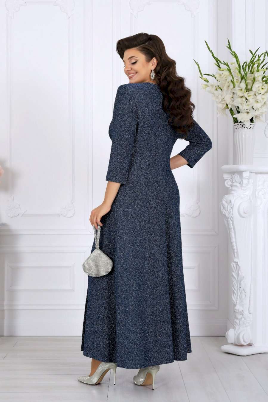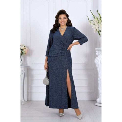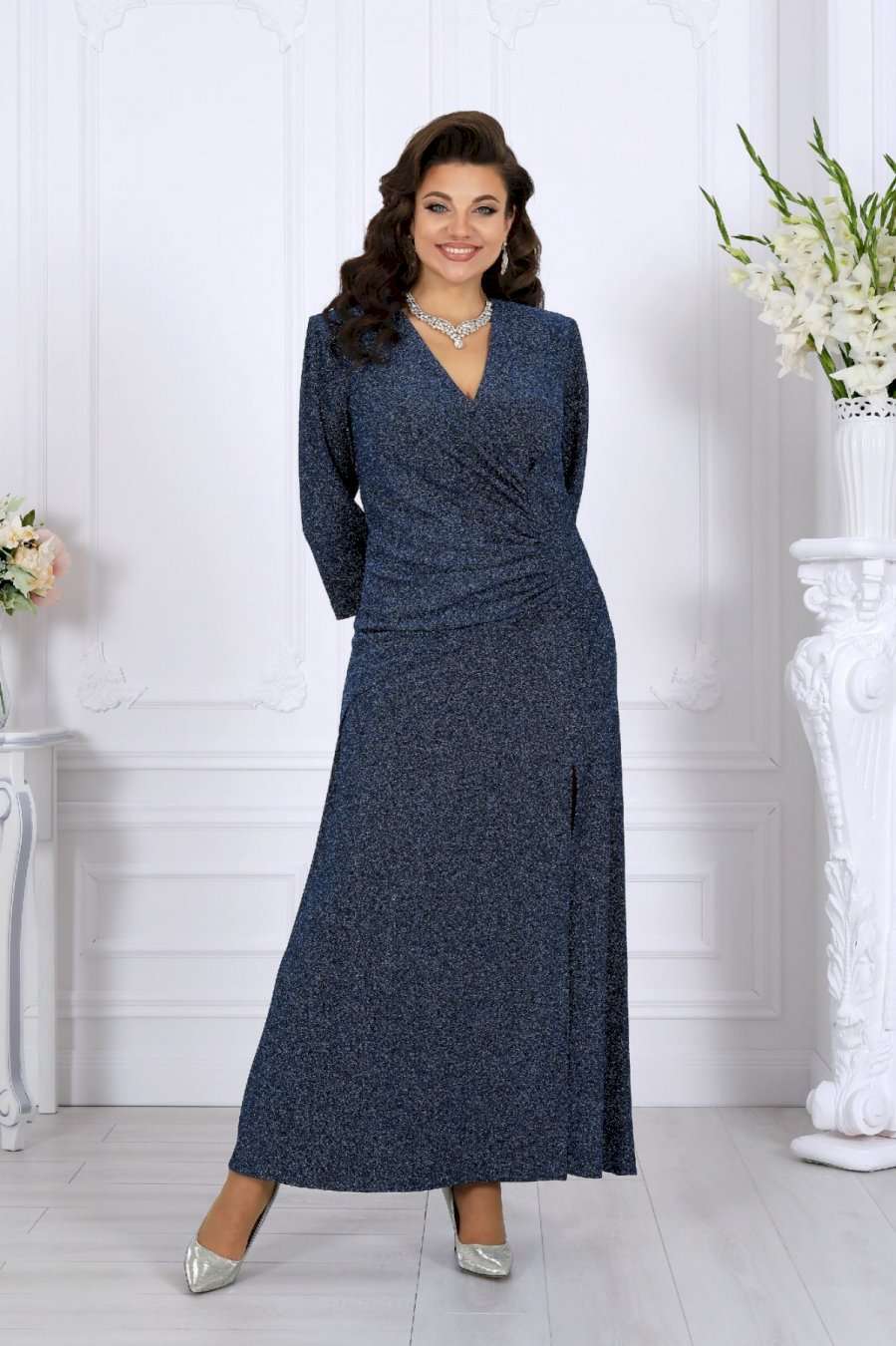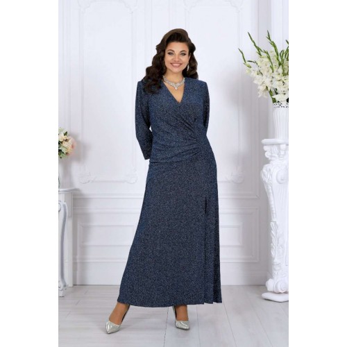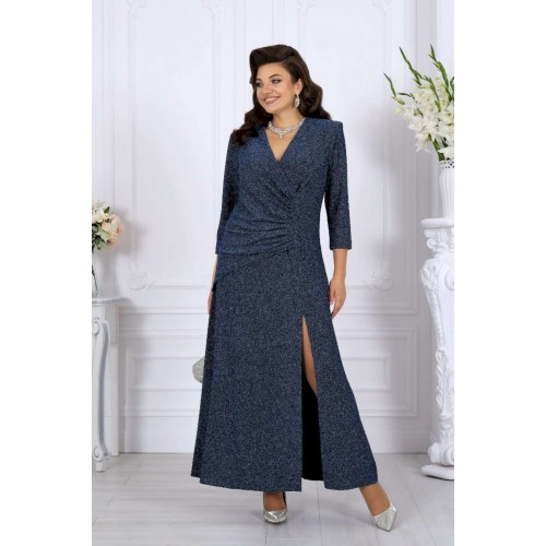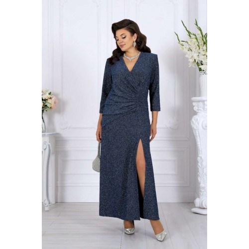 Элегантное вечернее платье из люрекса — создано для особенных событий. Изысканное длинное платье, которое подчеркивает женственность и утонченность. Выполнено из благородного трикотажного полотна с мерцающим люрексом — ткань мягко драпируется, не сковывает движения и эффектно играет при каждом шаге. Асимметричный перед с запахом и деликатными драпировками визуально стройнит и формирует правильный силуэт для женщин с формами. Глубокий разрез добавляет образу легкой смелости, оставаясь элегантным и уместным на торжественных мероприятиях. Платье женское, расширенное к низу, выполнено из трикотажного полотна с фактурной лицевой стороной «люрекс». Модель на трикотажной подкладке, с плечевыми накладками. Перед платья асимметричный, состоит из двух деталей, скрепленных на запах. На левой детали переда обработан рельефный шов с разрезом по низу. Правая деталь переда задрапирована сборкой и входит в рельеф на участке между двумя горизонтальными подрезами боковой части переда. На спинке обработаны талиевые вытачки и средний шов с застежкой на потайную тесьму-«молнию» (50 см). Рукав трехчетвертной. Длина платья – 137 см. Длина рукава – 47 см