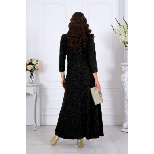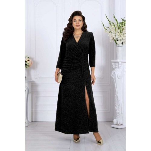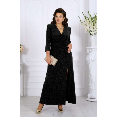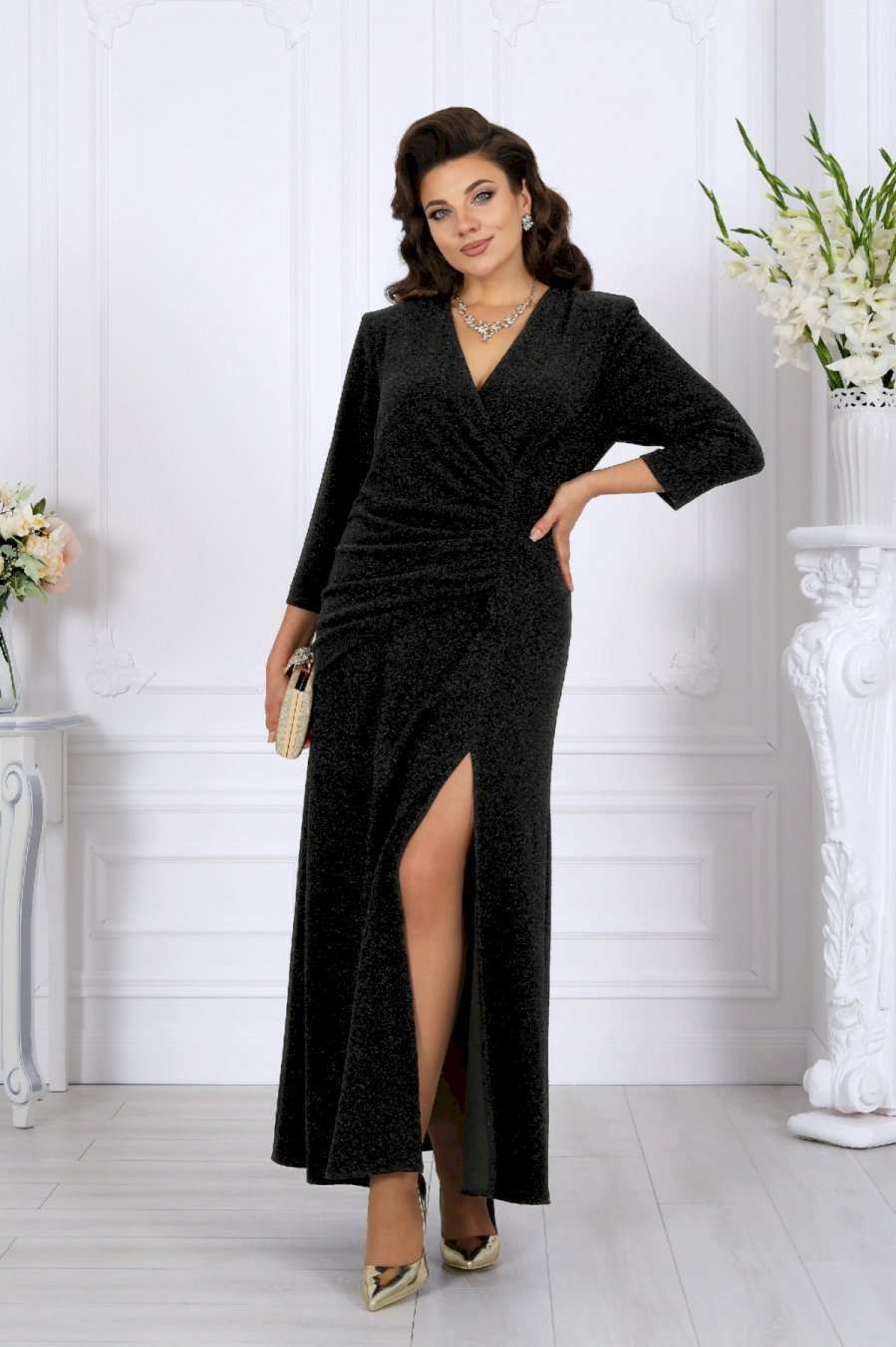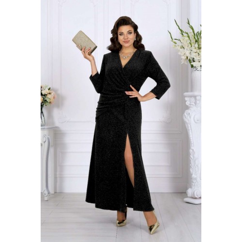 Элегантное вечернее платье из люрекса — создано для особенных событий. Изысканное длинное платье, которое подчеркивает женственность и утонченность. Выполнено из благородного трикотажного полотна с мерцающим люрексом — ткань мягко драпируется, не сковывает движения и эффектно играет при каждом шаге. Асимметричный перед с запахом и деликатными драпировками визуально стройнит и формирует правильный силуэт для женщин с формами. Глубокий разрез добавляет образу легкой смелости, оставаясь элегантным и уместным на торжественных мероприятиях. Платье женское, расширенное к низу, выполнено из трикотажного полотна с фактурной лицевой стороной «люрекс». Модель на трикотажной подкладке, с плечевыми накладками. Перед платья асимметричный, состоит из двух деталей, скрепленных на запах. На левой детали переда обработан рельефный шов с разрезом по низу. Правая деталь переда задрапирована сборкой и входит в рельеф на участке между двумя горизонтальными подрезами боковой части переда. На спинке обработаны талиевые вытачки и средний шов с застежкой на потайную тесьму-«молнию» (50 см). Рукав трехчетвертной. Длина платья – 137 см. Длина рукава – 47 см