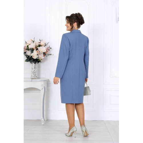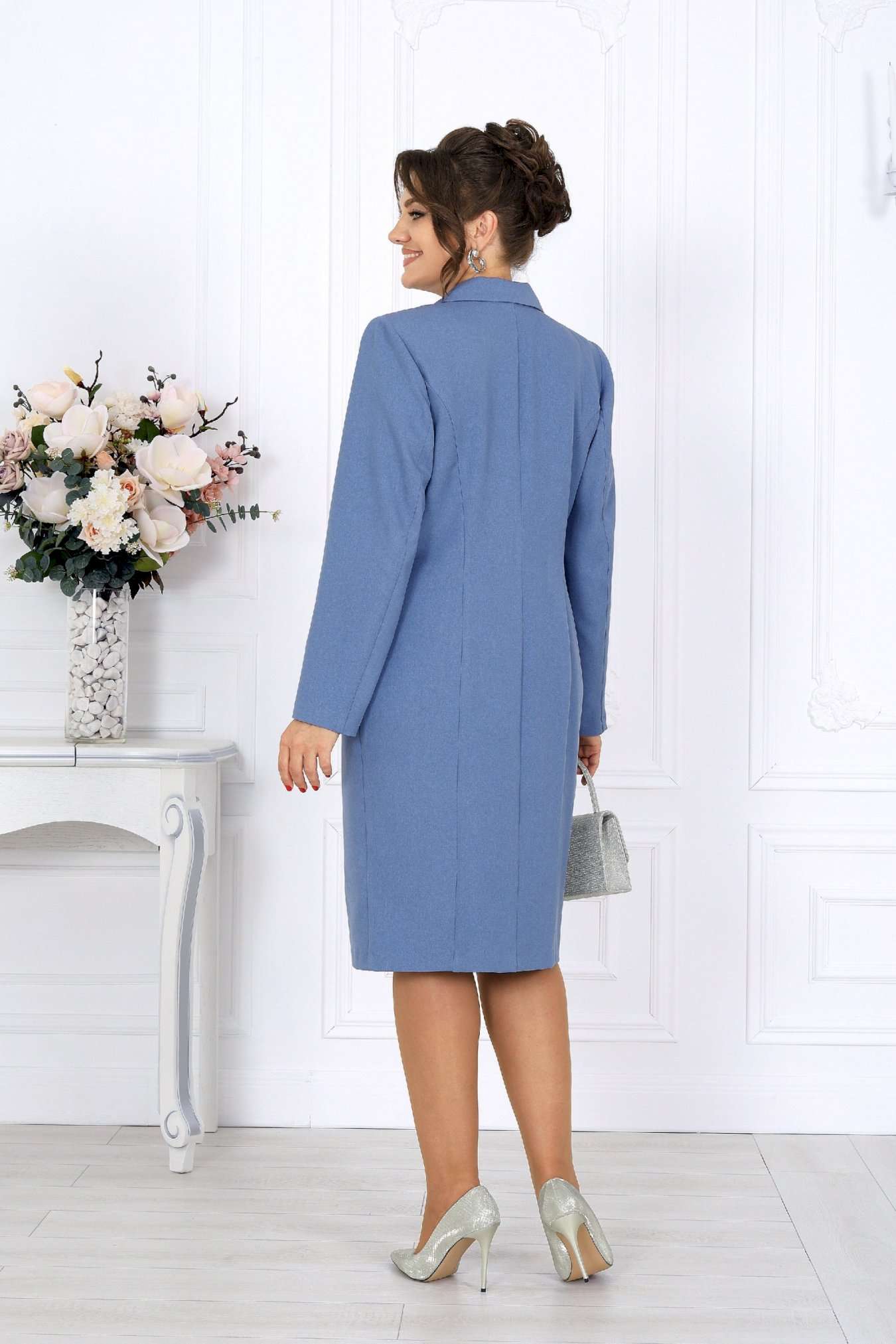 Модель выполнена из качественной костюмной поливискозы и дополнена подкладкой, что обеспечивает комфорт и идеальную посадку. Полуприлегающий силуэт красиво подчеркивает фигуру, а оригинальный асимметричный крой делает образ современным и выразительным. Особое внимание привлекает правая часть переда, стилизованная под двубортный жакет с декоративными пуговицами и аккуратными прорезными карманами с клапаном. Левая часть завершена кокетливым разрезом, добавляющим образу легкой смелости. Длинные втачные рукава и воротник пиджачного типа придают модели сдержанную классику. Такое платье универсально: оно одинаково уместно в офисе, на деловой встрече, романтическом ужине или праздничном вечере. Его легко адаптировать под повседневный образ и под торжественный выход — достаточно подобрать аксессуары. Платье женское, полуприлегающего силуэта, выполнено из костюмной поливискозы. Модель на подкладке, с плечевыми накладками и застежкой в боковом шве на потайную тесьму-«молнию». Перед ассиметричный: правая сторона оформлена в виде двубортного жакета с имитацией застежки на декоративные пуговицы. Спереди обработаны рельефные швы, направленные от пройм и прорезные карманы с клапаном; на левой части переда рельеф заканчивается разрезом. Спинка со средним и рельефными швами, направленным от пройм. Воротник пиджачного типа. Рукав длинный, втачной. Длина платья - 104 см; длина рукава - 61 см.