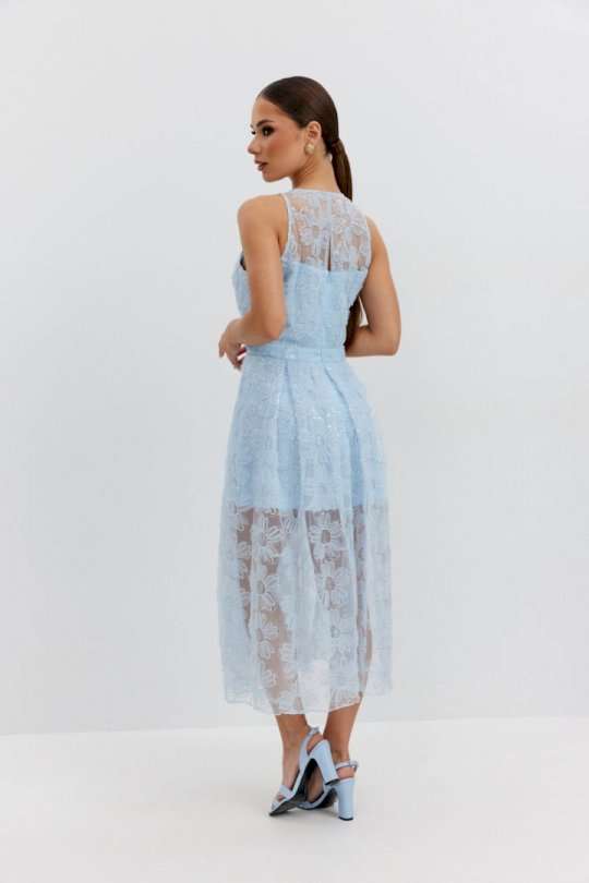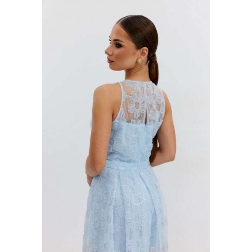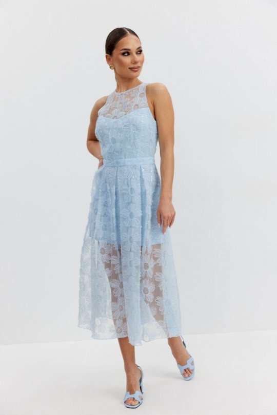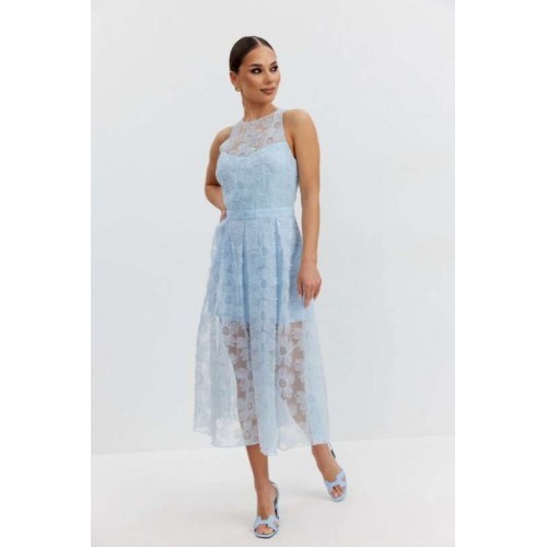 Платье женское полуприлегающего силуэта, отрезное по линии талии, с втачным поясом, юбка со складками, на подкладке. Лиф платья с нагрудными вытачками, на частичной подкладке, проймы и горловина обработаны бейками. Горловина круглой формы. Застежка на потайную молнию и крючок в среднем шве. 44 р-р: ОГ - 92 см., ОТ - 78 см., ОБ - 104 см. 46 р-р: ОГ - 96 см., ОТ - 82 см., ОБ - 108 см. 48 р-р: ОГ - 100 см., ОТ - 86 см., ОБ - 112 см. 50 р-р: ОГ - 104 см., ОТ - 90 см., ОБ - 116 см. 52 р-р: ОГ - 108 см., ОТ - 94 см., ОБ - 120 см.