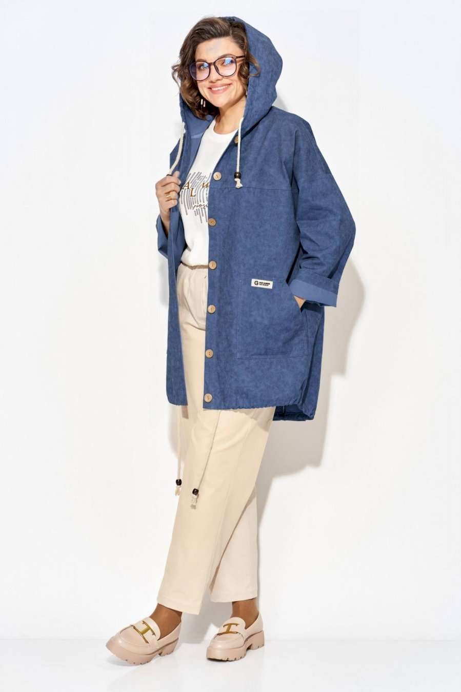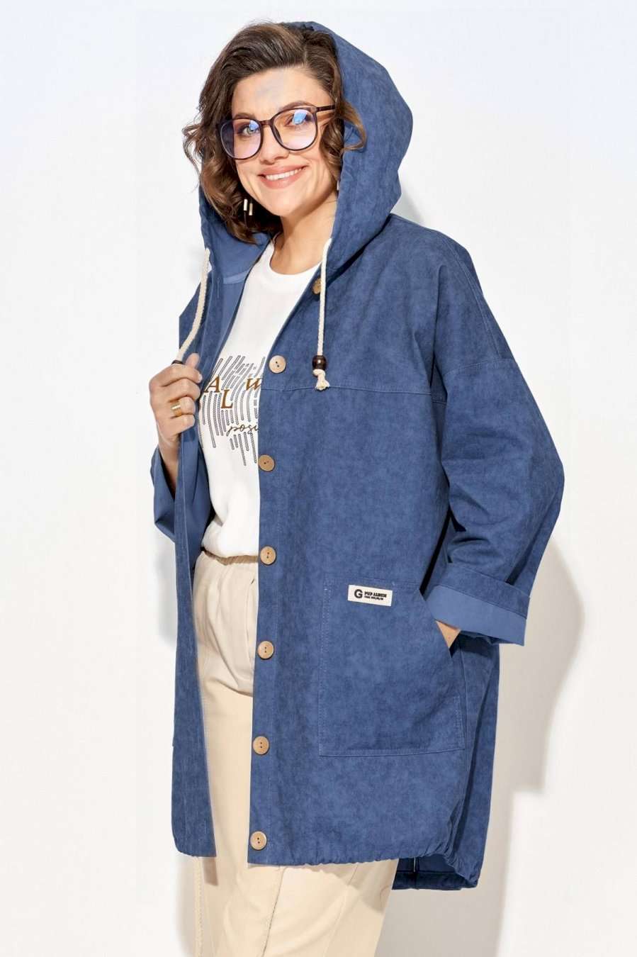 Женская джинсовая парка-ветровка, выполнена из 100% хлопка с эффектом водоотталкивающей пропитки. Удлиненная джин совка силуэта оверсайз очень практична и удобна, смотрится необычно и элегантно. Модель с объемным капюшоном является очень популярной в предстоящем сезоне. Застежка центральная на петли и пуговицы. Рукав длинный на спущенном плечевом поясе обеспечивает идеальную посадку по фигуре. По полочке расположена кокетка и накладные карманы с отделочными строчками. Спинка с центральным швом, переходящим в разрез. Низ изделия фигурный с утяжкой на шнуровку с наконечниками. Хлопковая куртка не стесняет движений, обеспечивает максимальный комфорт, идеальный вариант для повседневных прогулок, спортивных мероприятий, офиса, путешествий, для работы в саду и на даче. За счет свободного кроя подходит беременным девушкам. Парка женская выполнена из джинсовой ткани деним, материал является прочным, качественным и долговечным. Длина по переду – 85, по спинке – 90 см. Рукав – около 63 см.