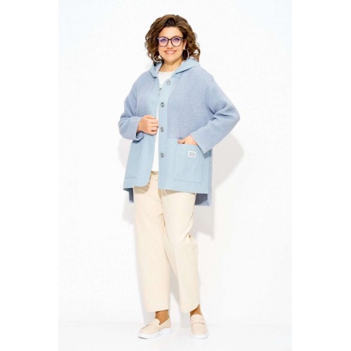 Женский джинсовый жакет- ветровка больших размеров с капюшоном — это стильный и универсальный элемент гардероба, который идеально подходит для создания модных образов в любое время года. Комбинированный джинсовый жакет-ветровка с капюшоном, выполнен из 100% хлопка с добавлением трикотажа с меховым эффектом «Тэдди». Модель свободного силуэта, с длинным рукавом на спущенном плече. Застежка центральная, на петли и пуговицы на декоративную планку. По полочке расположены накладные карманы. Удобный объемный капюшон защитит вас от ветра и холода внепогоду. Одним из ключевых преимуществ этого жакета из денима является её универсальность; легко сочетается с различными предметами одежды: носите её с платьями, топами, свитерами или футболками, создавая неповторимые луки. Эта утепленная джинсовка-ветровка оверсайз с карманами сочетает в себе классический дизайн и современные тренды, предлагая комфортную посадку и практичность! Длина по спинке-80см, по переду-60 см, рукав – 63 см.