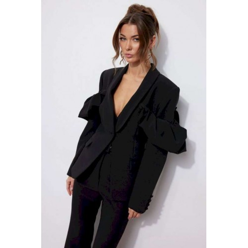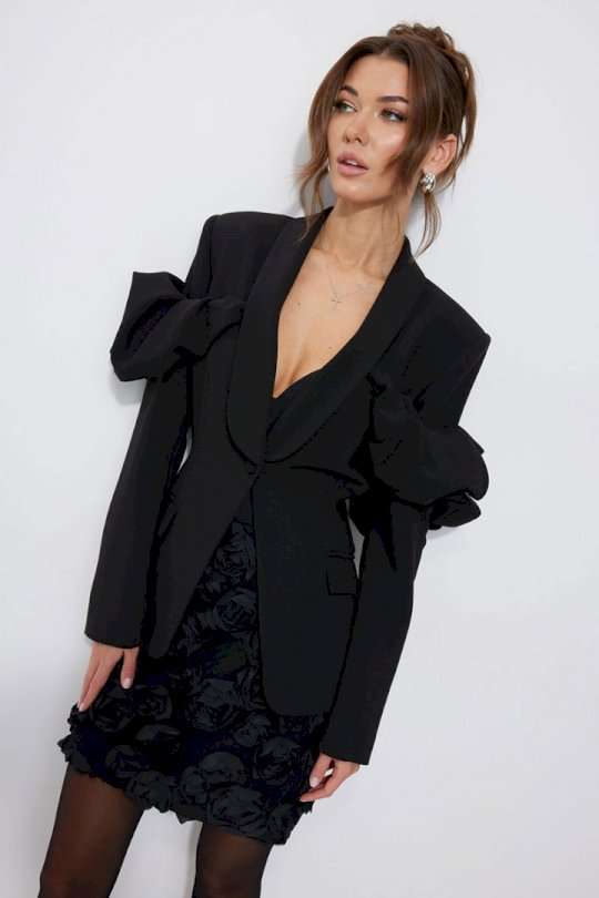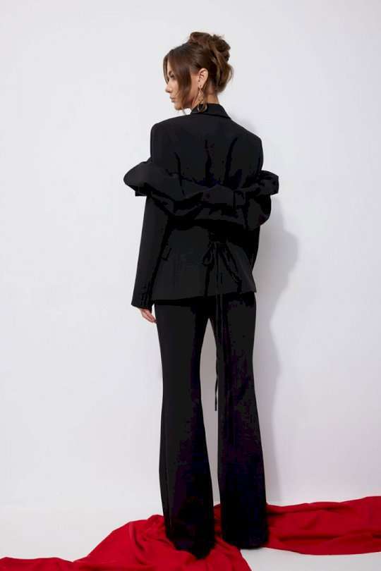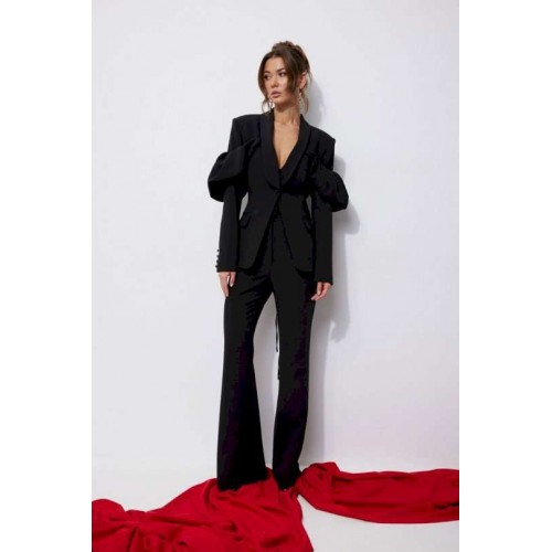 Жакет полуприлегающего силуэта из костюмной ткани. Жакет с V- образным вырезом и воротником, с застежкой по центру на петлю и пуговицу. Рукав втачной двухшовный, по низу декоративная шлица с пуговицами. По переду рельефы, талиевые вытачки и функциональные карманы с клапанами. На спинке декоративный элемент для регулирования степени прилегания изделия. В комплект входит съемная деталь. Обращаем ваше внимание, что фурнитура может отличаться от фото. Длина жакета в 44-48р 69см, в 50-54р 71см. Длина рукава 63 см.
