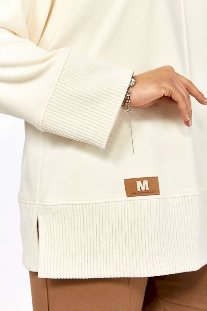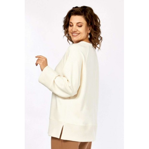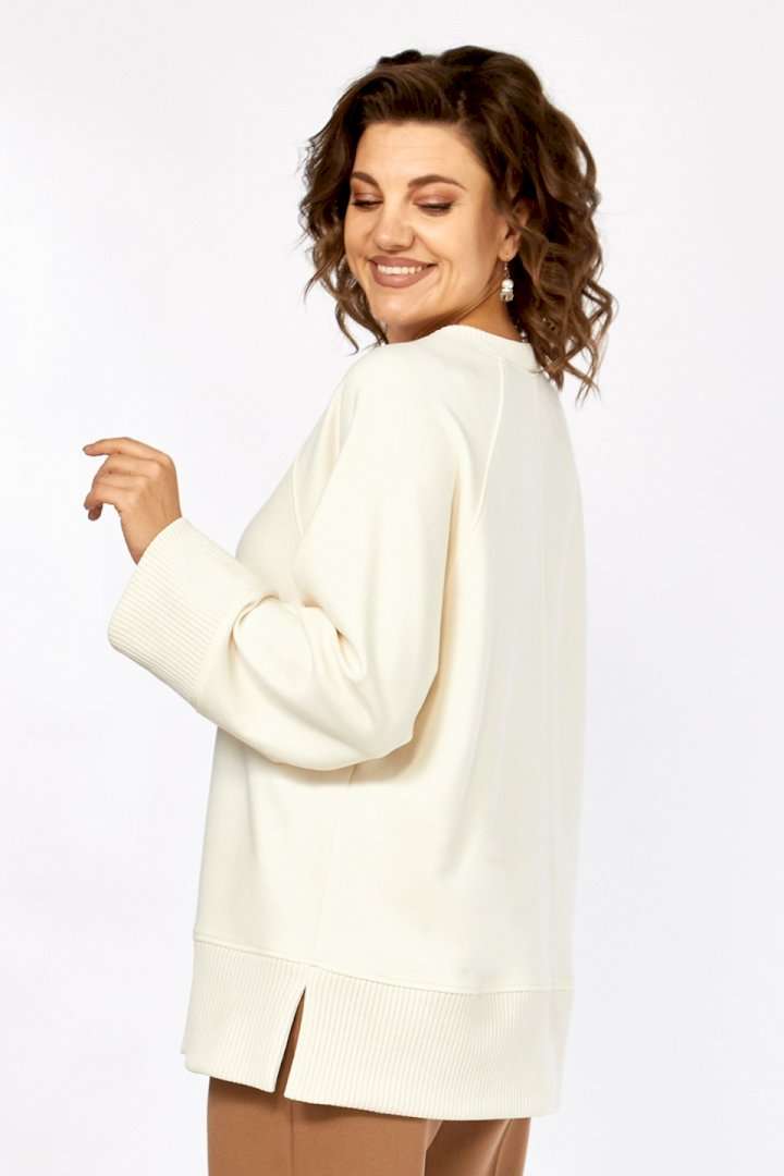 Джемпер женский, свободного кроя, изготовлен путем комбинирования трикотажного полотна. Горловина круглой формы. Рукава — реглан. В боковых швах обработаны разрезы внизу. Горловина, низ изделия и низ рукавов изготовлены из отделочного трикотажного полотна. Отделка нашивка по переду. Обращаем Ваше внимание, что цвет на экране может отличаться от реального.