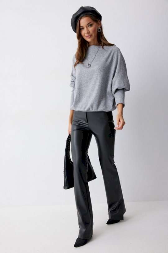 Джемпер прямого силуэта с притачным поясом по низу из трикотажного полотна. Горловина округлая с притачной планкой. Джемпер со спущенным плечом, рукав втачной с притачным манжетом по низу. На спинке расположена дизайнерская вышивка. В комплект входит съёмное украшение. Обращаем ваше внимание, что фурнитура может незначительно отличаться от фото. Подходит на рост 164-170 см. Длина джемпера (44-48р - 59см)(50-54р - 67см). Длина рукава от горловины 77см.