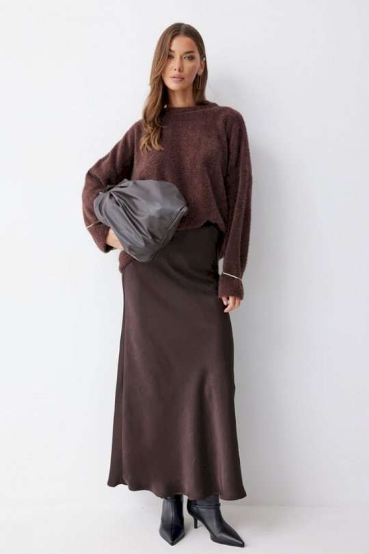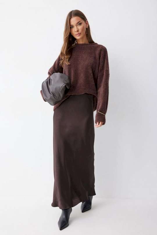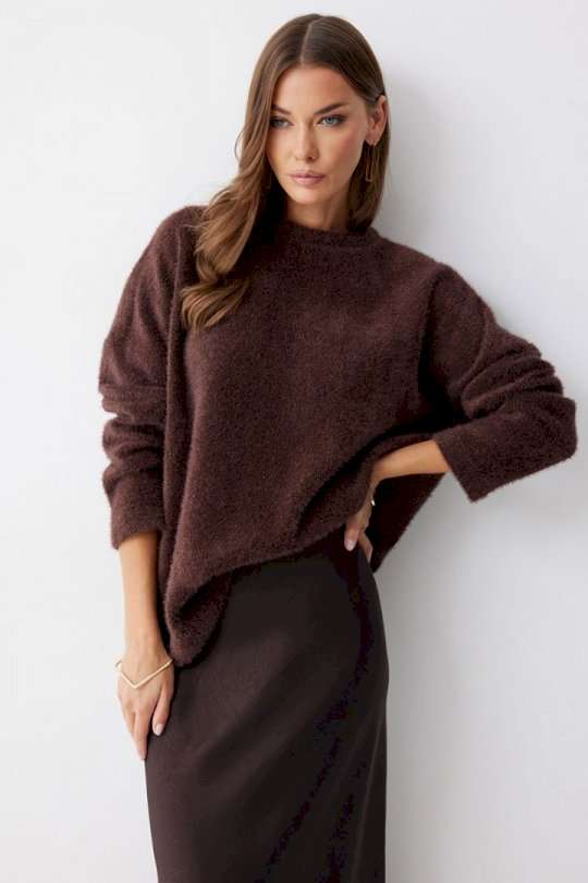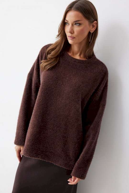 Джемпер прямого силуэта из трикотажного полотна. Горловина округлая. Рукав со спущенной линией плеча. Подходит на рост 164-170 см. Длина (44-48р – 67см)(50-54р - 69см)(56-60р - 71см). Длина джемпера от горловины 74см.