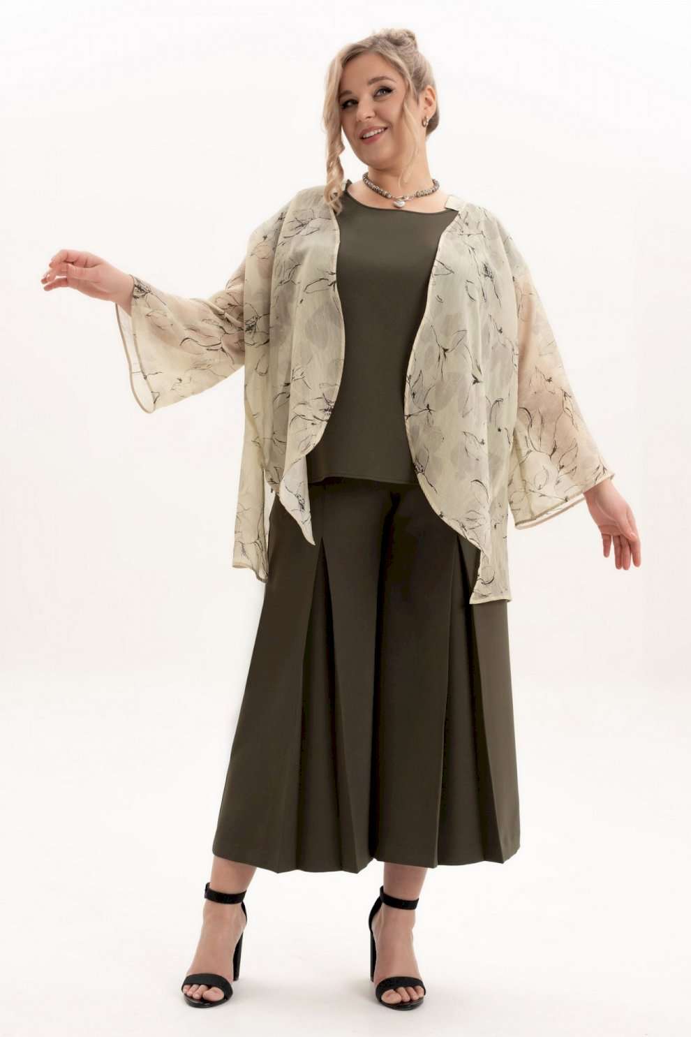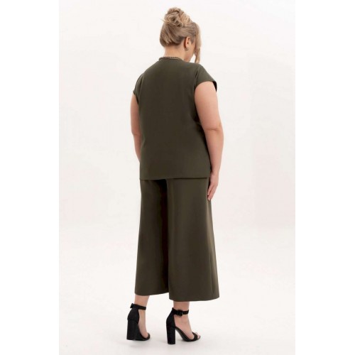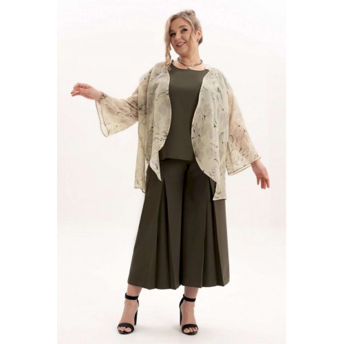 Костюм брючный 4123 Algranda (Новелла Шарм) — это универсальная часть гардероба, включающая в себя брюки кюлоты, блузу и шифоновый кардиган. Коллекция бренда Algranda предлагает комфорт и стиль в одном комплекте. Брюки выполнены из костюмной ткани с хорошим стрейч-эффектом, что обеспечивает удобную посадку. Укороченные кюлоты в стиле палаццо дополнены молнией и боковыми карманами, создавая практичность и элегантность. Кардиган из шифона свободного силуэта имеет воротник стойку и съёмный пояс, идеально подходящий для прохладных летних вечер. Блуза с облегающей линией плеча и круглой горловиной делает комплект элегантным. Этот комплект легко адаптируется к любому сезону, от весны до осени, и станет незаменимым для ежедневных выходов, будь то офис или прогулка. Цветовая палитра включает нейтральные оттенки, позволяя легко сочетать костюм с другими аксессуарами.