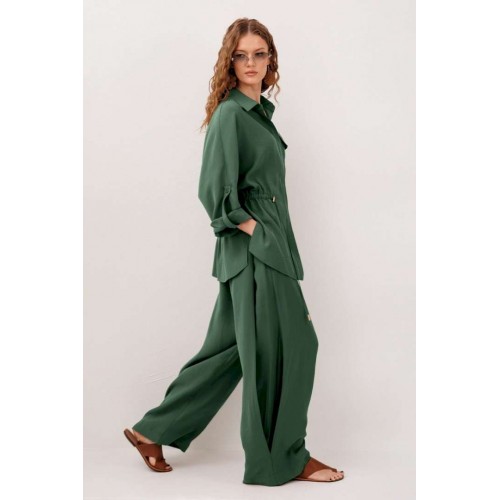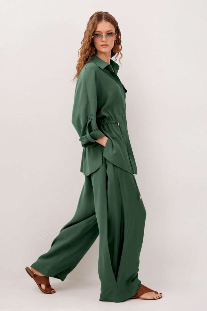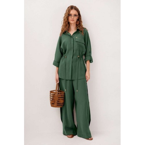 Костюм брючный 3336 изумруд BUTER — это стильное и практичное решение для любого случая. Коллекция бренда BUTER воплощает сочетание комфорта и элегантности. Изготовлен из мягкой и дышащей ткани, состоящей на 89% из вискозы и 11% полиэстера, костюм обеспечивает комфорт даже в течение длительного времени. Блузка прямого силуэта с длинными рукавами и рубашечным воротником, дополненная потайной застежкой на пуговицы и карманом с клапаном, придает образу аккуратность. Кулиса на спинке и полочке позволяет создавать разнообразные образы. Брюки заужены к низу и имеют застежку на крючок, скрытую пуговицу и гульфик, что делает их универсальными для любого повода. Декоративные складки в сочетании с насыщенным изумрудным цветом подчеркивают современный стиль комплекта. Этот костюм идеально подходит для осенне-весеннего сезона и станет отличным выбором для прогулок или офисных встреч.