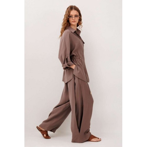Костюм брючный 3336 изумруд BUTER — это стильное и практичное решение для любого случая. Коллекция бренда BUTER воплощает сочетание комфорта и элегантности. Изготовлен из мягкой и дышащей ткани, состоящей на 89% из вискозы и 11% полиэстера, костюм обеспечивает комфорт даже в течение длительного времени. Блузка прямого силуэта с длинными рукавами и рубашечным воротником, дополненная потайной застежкой на пуговицы и карманом с клапаном, придает образу аккуратность. Кулиса на спинке и полочке позволяет создавать разнообразные образы. Брюки заужены к низу и имеют застежку на крючок, скрытую пуговицу и гульфик, что делает их универсальными для любого повода. Декоративные складки в сочетании с насыщенным изумрудным цветом подчеркивают современный стиль комплекта. Этот костюм идеально подходит для осенне-весеннего сезона и станет отличным выбором для прогулок или офисных встреч.