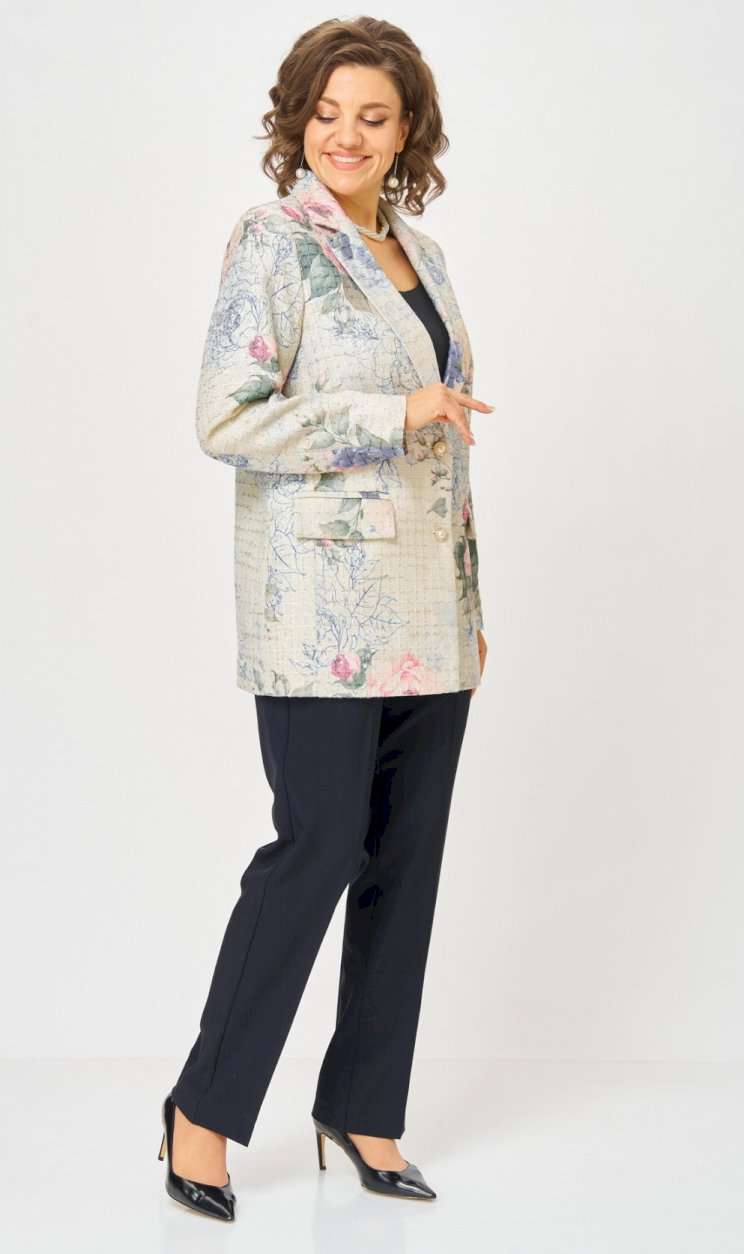 БелЭльСтиль 762-324/596-279 молочный+синий Костюм брючный
