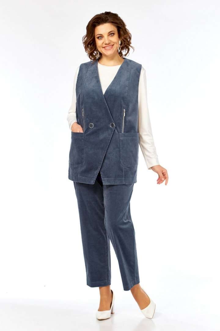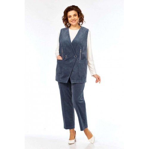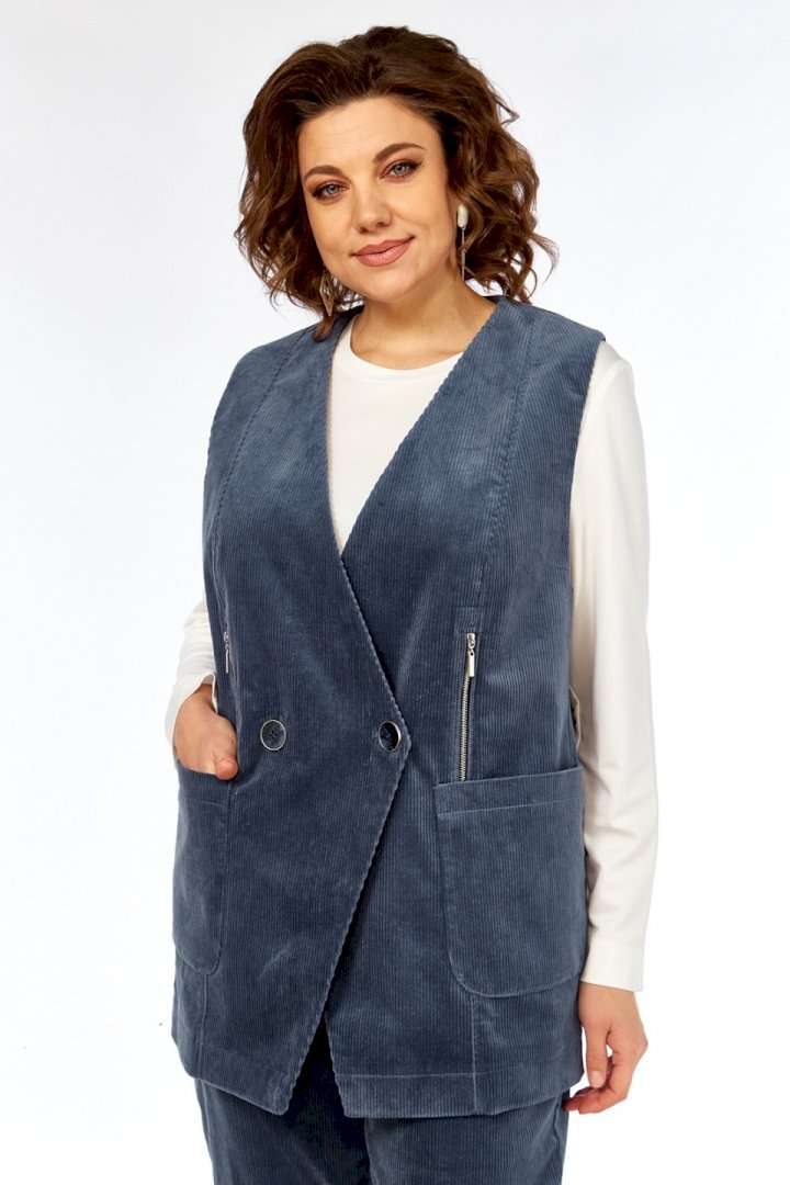 Костюм брючный 3463 Jurimex — это идеальный выбор для стильного образа. Коллекция бренда Jurimex выполнена из высококачественного хлопкового вельвета и вискозного трикотажа, что обеспечивает комфорт и долговечность. Жилет прямого силуэта с двубортной застежкой на петлю и пуговицу дополнен накладными карманами и декоративными элементами с молниями. Брюки свободного кроя с эластичной тесьмой и карманами добавляют функциональности. Лонгслив гладкий с удобной бейкой на горловине. Костюм подходит для осенне-зимнего сезона, прекрасно сочетается с деловым или повседневным гардеробом. Цветовая палитра — серо-голубой, которая легко впишется в любой стиль.