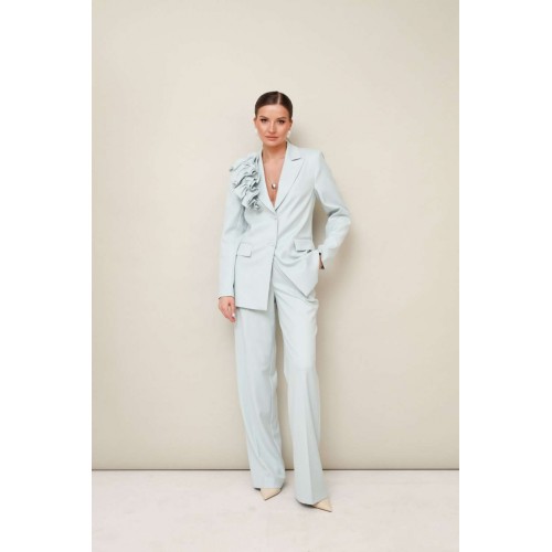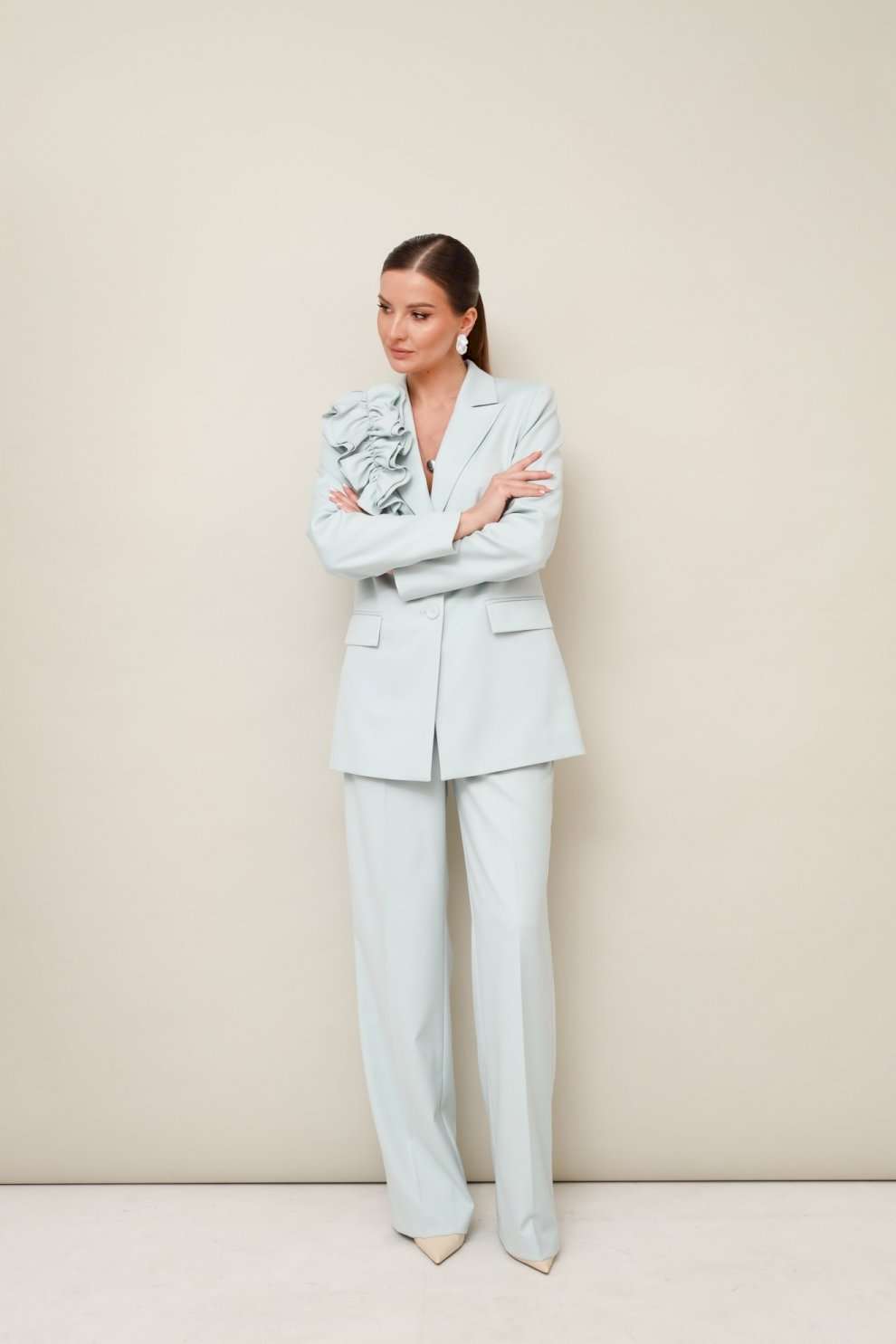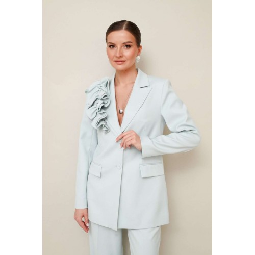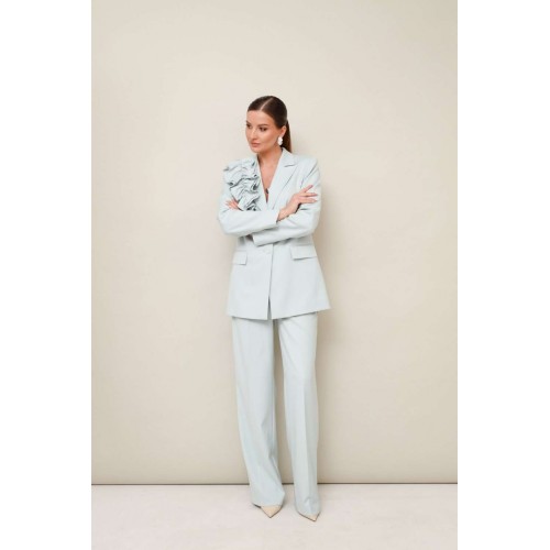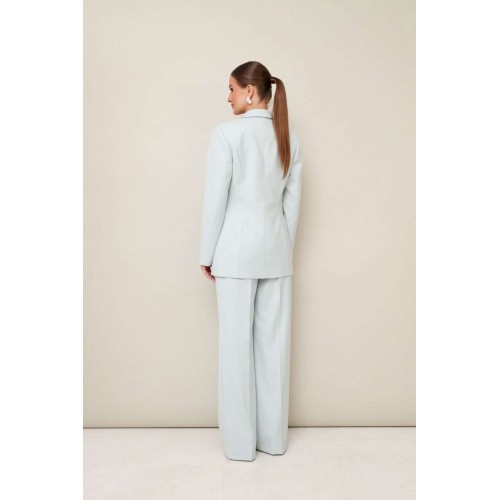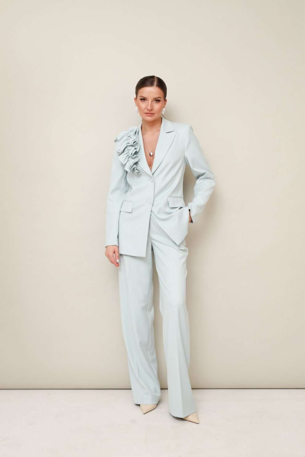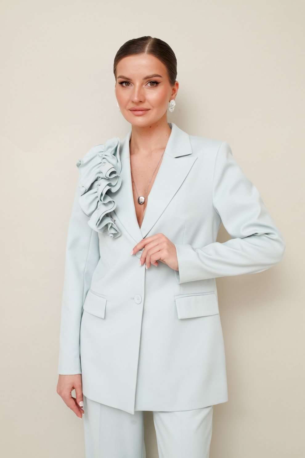 Костюм брючный 11-307-9 Pur Pur сочетает в себе элегантность и практичность. Коллекция бренда Pur Pur предлагает стильный костюм из костюмной ткани, состоящий из жакета и брюк. Жакет полуприлегающего силуэта снабжен центральной застежкой на петли с обтяжными пуговицами и отложными лацканами, а также прорезными карманами с клапанами, позволяющими создать элегантный образ. Брюки прямого кроя с заутюженными стрелками и наклонными карманами дополняют ансамбль. Притачной пояс с застежкой на пуговицу дополнен эластичной вставкой для комфортного ношения. Съемная брошь из основной ткани добавляет изюминку к наряду. Материал из полиэстера, вискозы и спандекса обеспечивает комфорт и легкость. Подкладка жакета гарантирует теплый сезонный комфорт и стильный вид. Современный синий цвет добавляет свежесть и универсальность, подходящую для офисного стиля и прогулок.