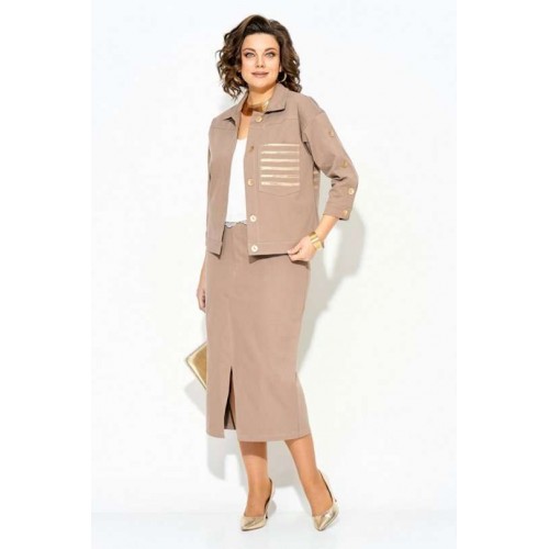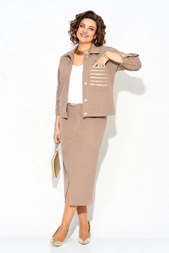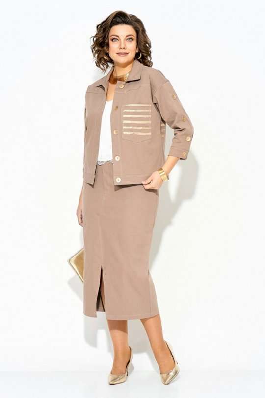 Представляем Вам стильный женский костюм из хлопкового денима (Джинс), состоящий из зауженной юбки и свободного жакета! Жакет свободного силуэта, выполнен их хлопка под Джинс. Воротник отложной; застежка центральная на петли и пуговицы. Рукав со спущенным плечевым поясом, длиной ¾-ти на притачной манжете. По центру рукава расположена декоративная застежка на петли и пуговицы. Перед с кокеткой, с ассиметричным накладным карманом. Спинка повторяет дизайн полочки. По спинке расположена ассиметричная печать в виде полоски! В комплекте юбка-карандаш зауженная к низу, длиной за колено. Модель с пикантным разрезом по переду. Застежка на металлическую молнию с обработанным гульфиком. Пояс притачной, в боковых участках вставлена резинка. По спинке расположены накладные карманы. Юбка без подкладки выполнена из джинсовой ткани. Модель подойдет для любой женщины в любом возрасте и размере. Длина жакета 60 см. Длина рукава 50 см. Длина юбки 80 см.