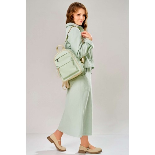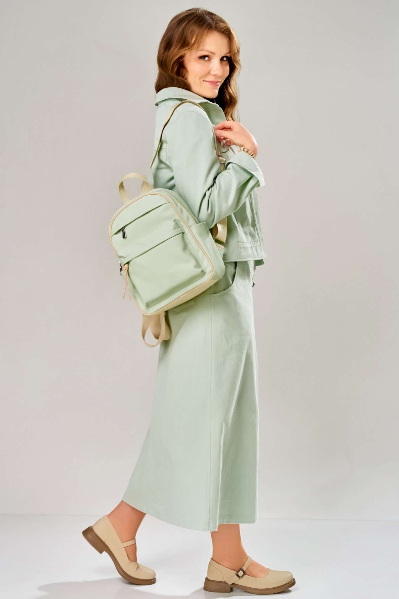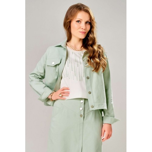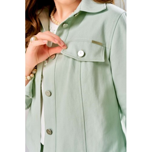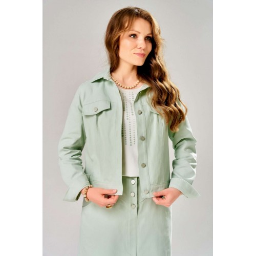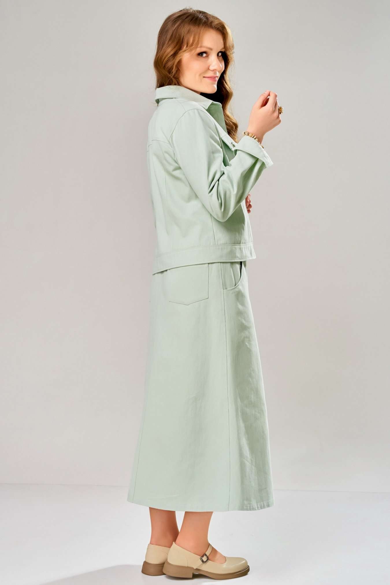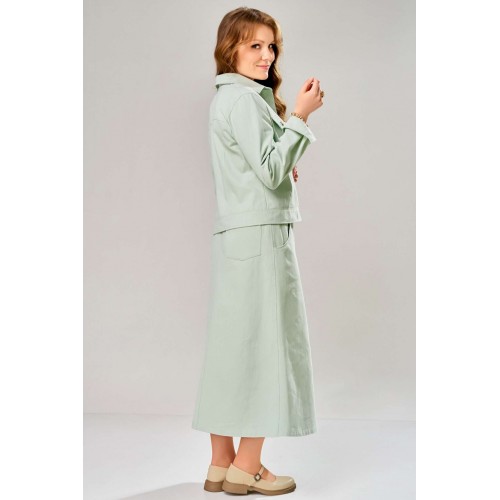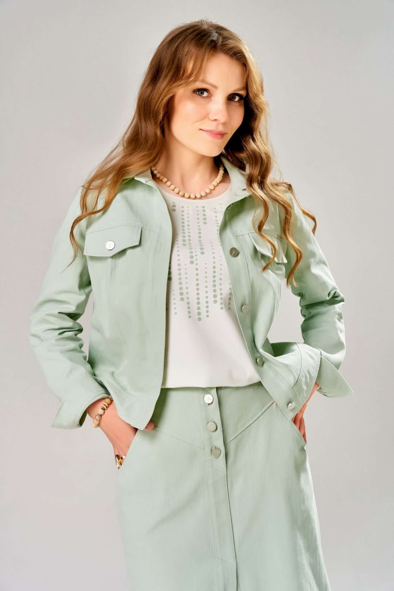 Комплект тройка \"\"Дамира\"\" состоит из бомбера, юбки и джемпера. Бомбер полуприлегающего силуэта выполнен из нежной хлопковой итальянской джинсовой ткани, бомбер без подкладки. Застежка в бомбере однобортная на петли и пуговицы, планка по борту отрезная, отсроченная отделочными строчками. По полочке - кокетка и рельефы. В шов в притачивание кокетки вставлены клапаны, с застежкой на петлю и пуговицу. По спинке - кокетка и рельефы. Рукава в бомбере втачные двухшовные, по низу рукава - манжет с застежкой на петли и пуговицы. Воротник отложной рубашечного типа со стойкой, по низу бомбера отрезной пояс, отсроченный отделочной строчкой. На кокетке полочки, с левой стороны декоративная нашивка. Юбка, слегка расширенная к низу, выполнена из нежной итальянской джинсовой ткани, без подкладки. По переднему полотнищу юбки застежка на петли и пуговицы. По среднему шву юбки идет сквозная планка. По полочке кокетка и рельефные карманы. На заднем полотнище юбки - кокетка и накладные карманы. Верх юбки обработан притачным поясом, низ изделия обработан швом в подгибку с закрытым срезом. Джемпер в комплекте \"\"ДАМИРА\"\" прилегающего силуэта. Горловина обработана притачной планкой. Рукав втачной одношовный. Низ джемпера и рукава обработан распошивалкой. Это новый городской стиль, качественные материалы и изыск! НАТУРАЛЬНАЯ ИТАЛЬЯНСКАЯ ДЖИНСОВАЯ ТКАНЬ, ОЧЕНЬ ПРАКТИЧНАЯ И УДОБНАЯ В НОСКЕ!