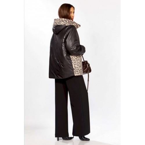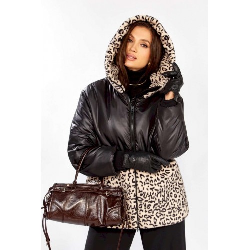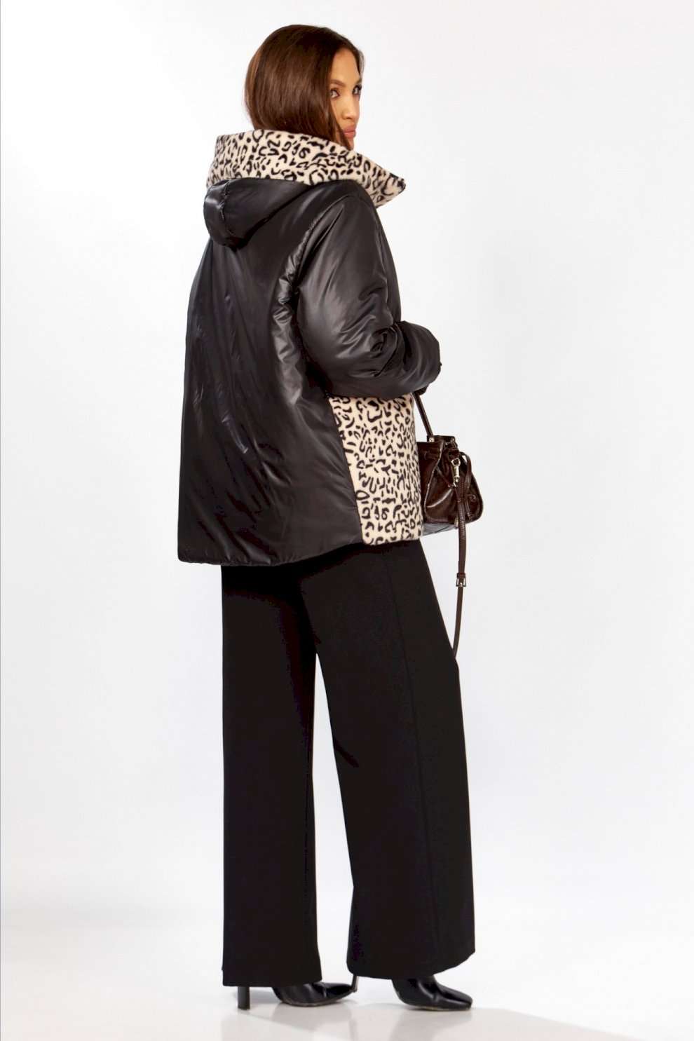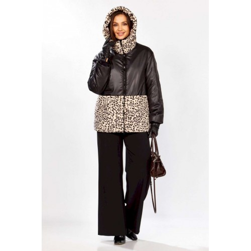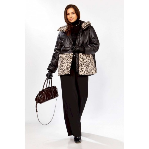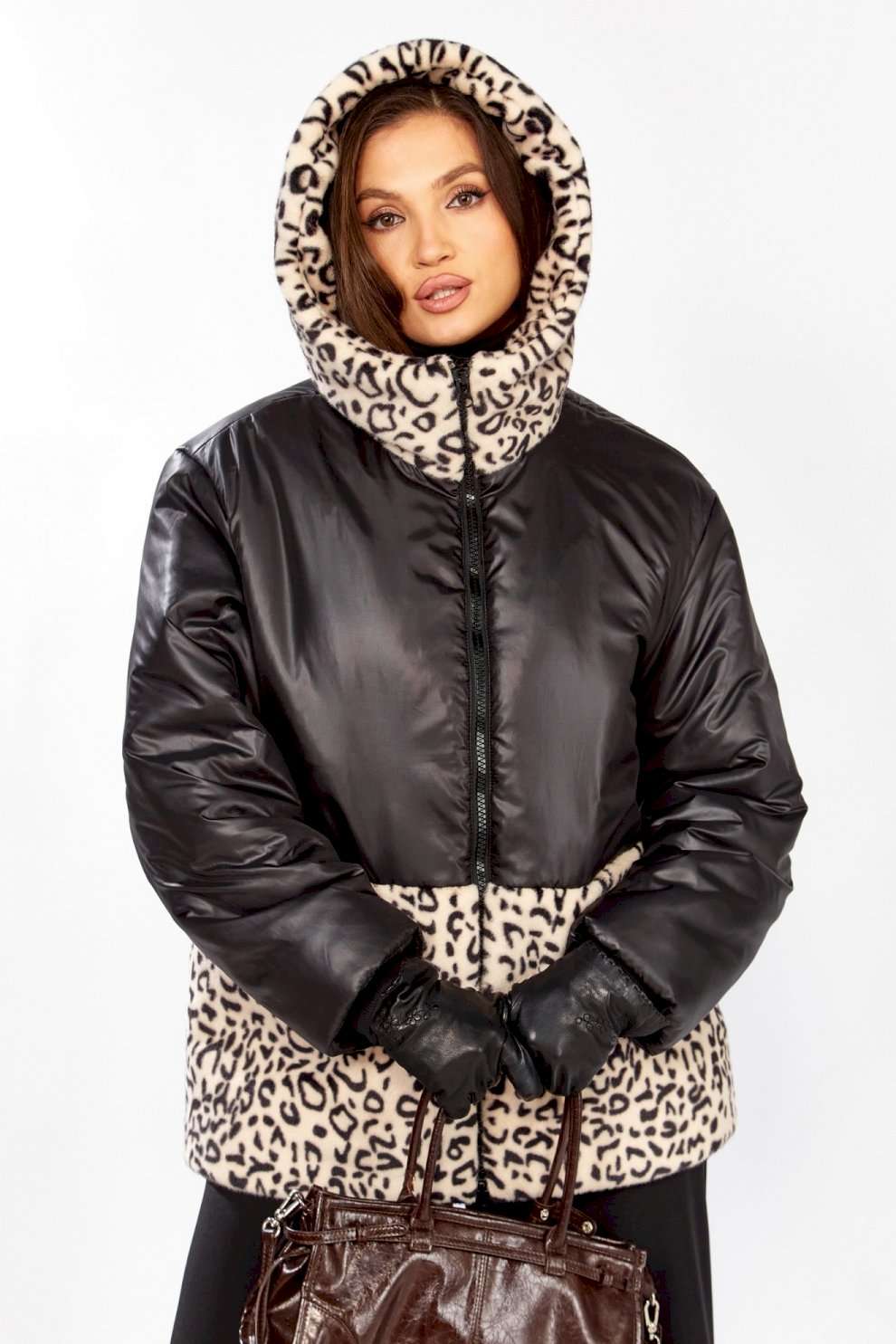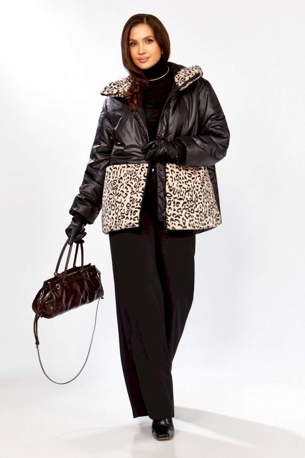 Зимняя куртка прямого силуэта с капюшоном и застежкой -молния ,в которой сочетаются уют стиль и функциональность модель выполнена на тёплом утеплителе комфортен 200 г /м2 обеспечивающим надёжную защиту от холода без излишнего объема, ветрозащитная подкладка создает барьер от пронизывающего ветра сохраняя тепло даже в морозные дни дизайн куртки сочетает лаконичный чёрный верх с эффектной меховой отделкой леопардового рисунка она мягко обрамляет низ изделия и капюшон добавляя образу выразительности и шарма , карманы аккуратно спрятаны в швах сохраняют чистоту линий и удобства, это куртка для тех кто любит комфорт и тепло но не готов отказаться от модного акцента и женственности в зимнем гардеробе. Температурный режим от -5 до -15 Длина куртки по спинке-77см, длина рукава от горл.-76см.