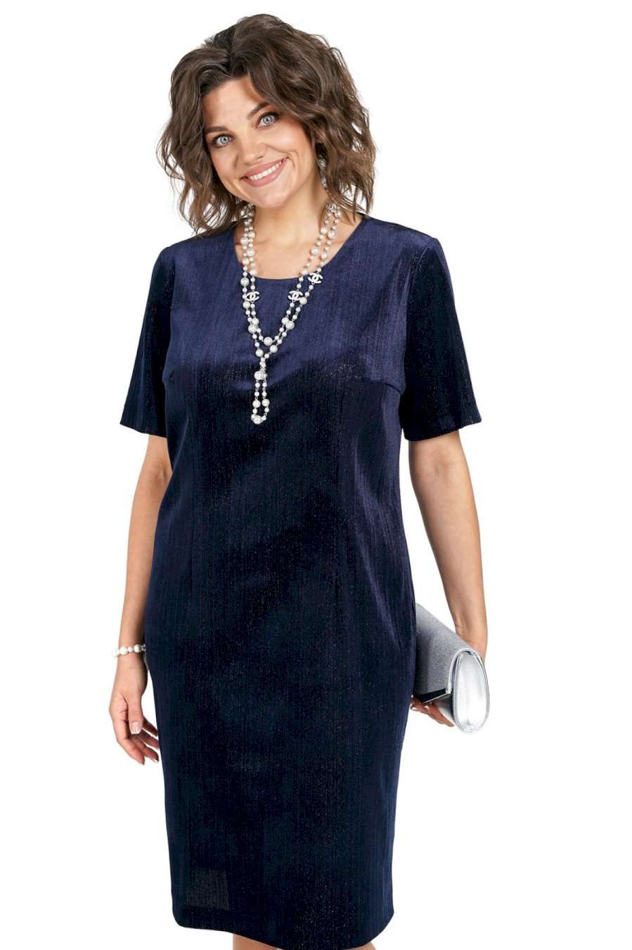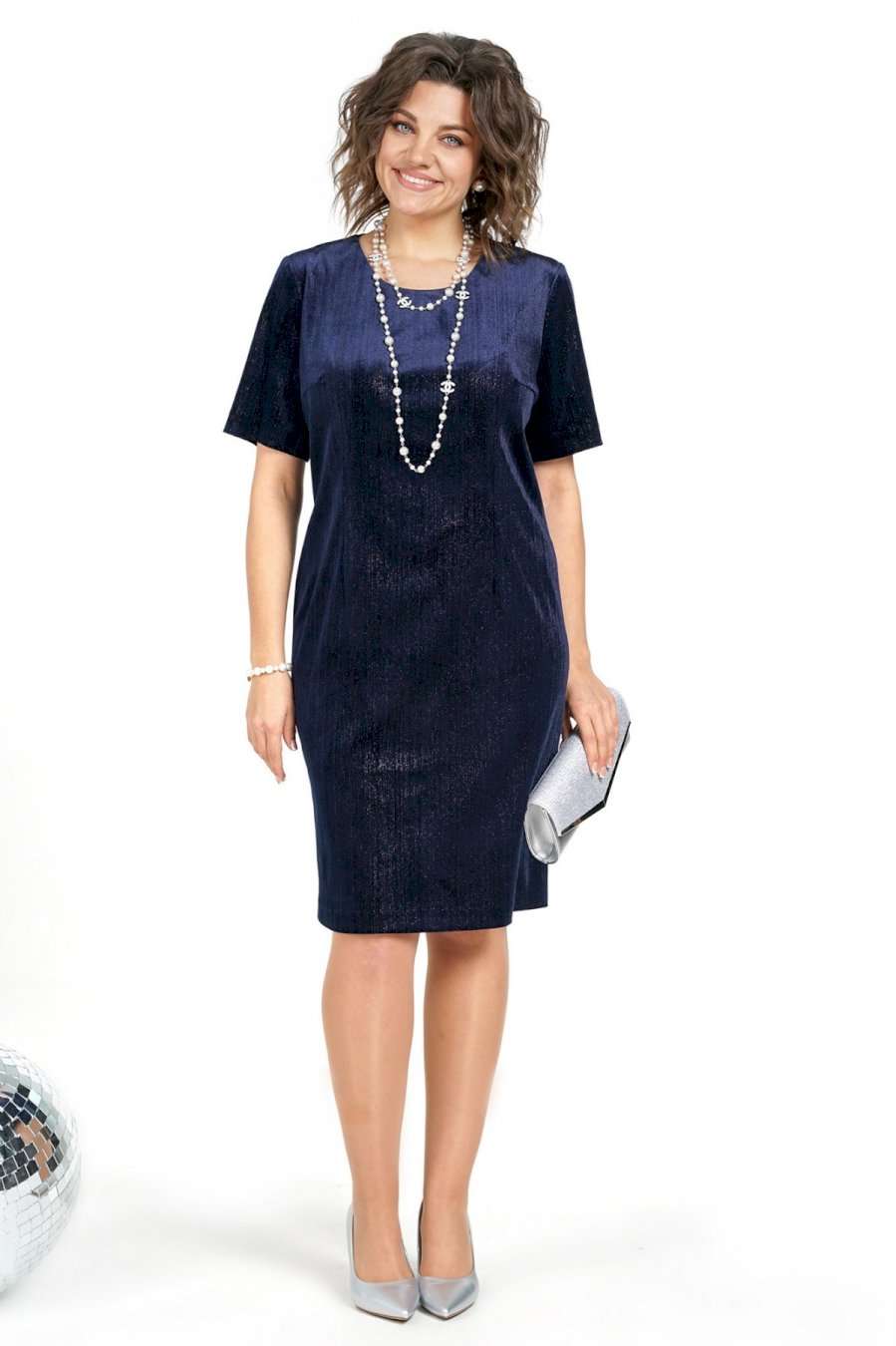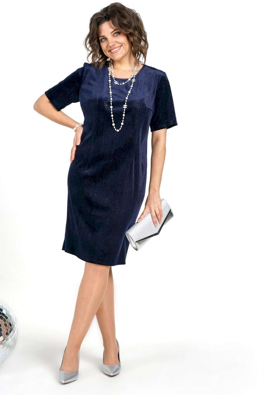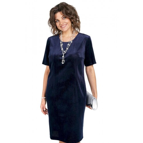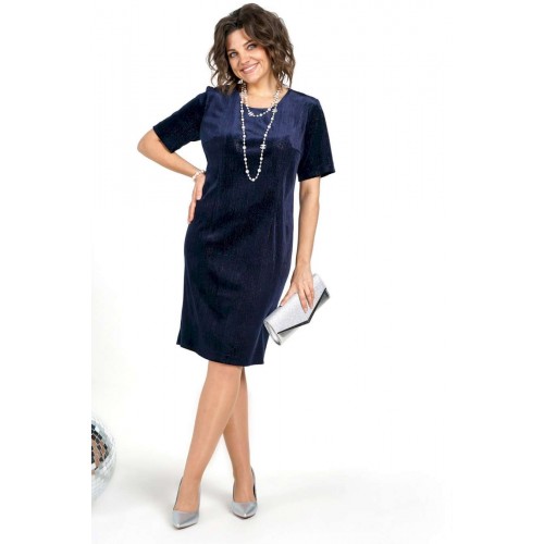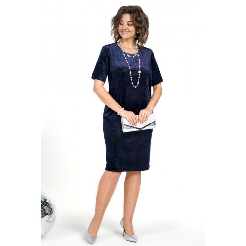 Платье полуприлегающего силуэта, с застёжкой на потайную молнию в среднем шве спинки. Перед с нагрудными и талевыми выточками. Спинка с талевыми выточками, понизу щлица. Рукава втачные, одношовные, короткие. Ткань «велюр» с люрексовой ниткой на трикотажной основе.