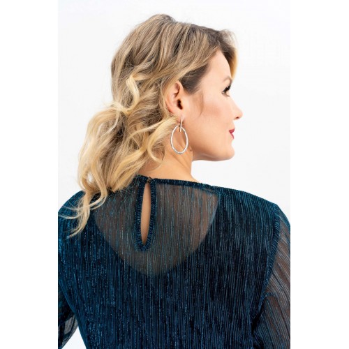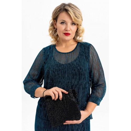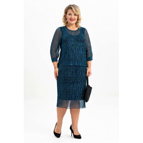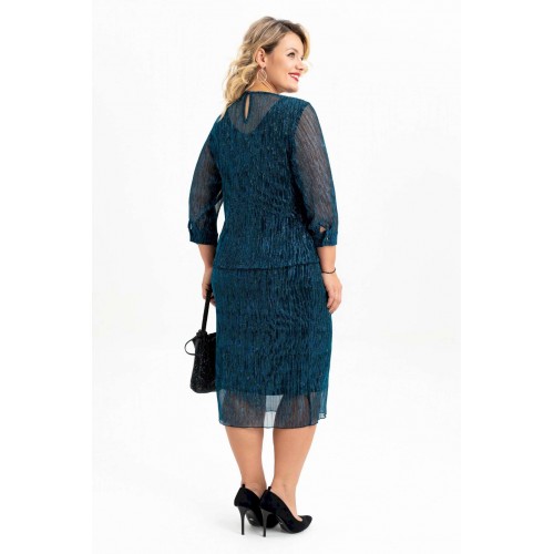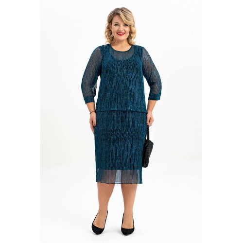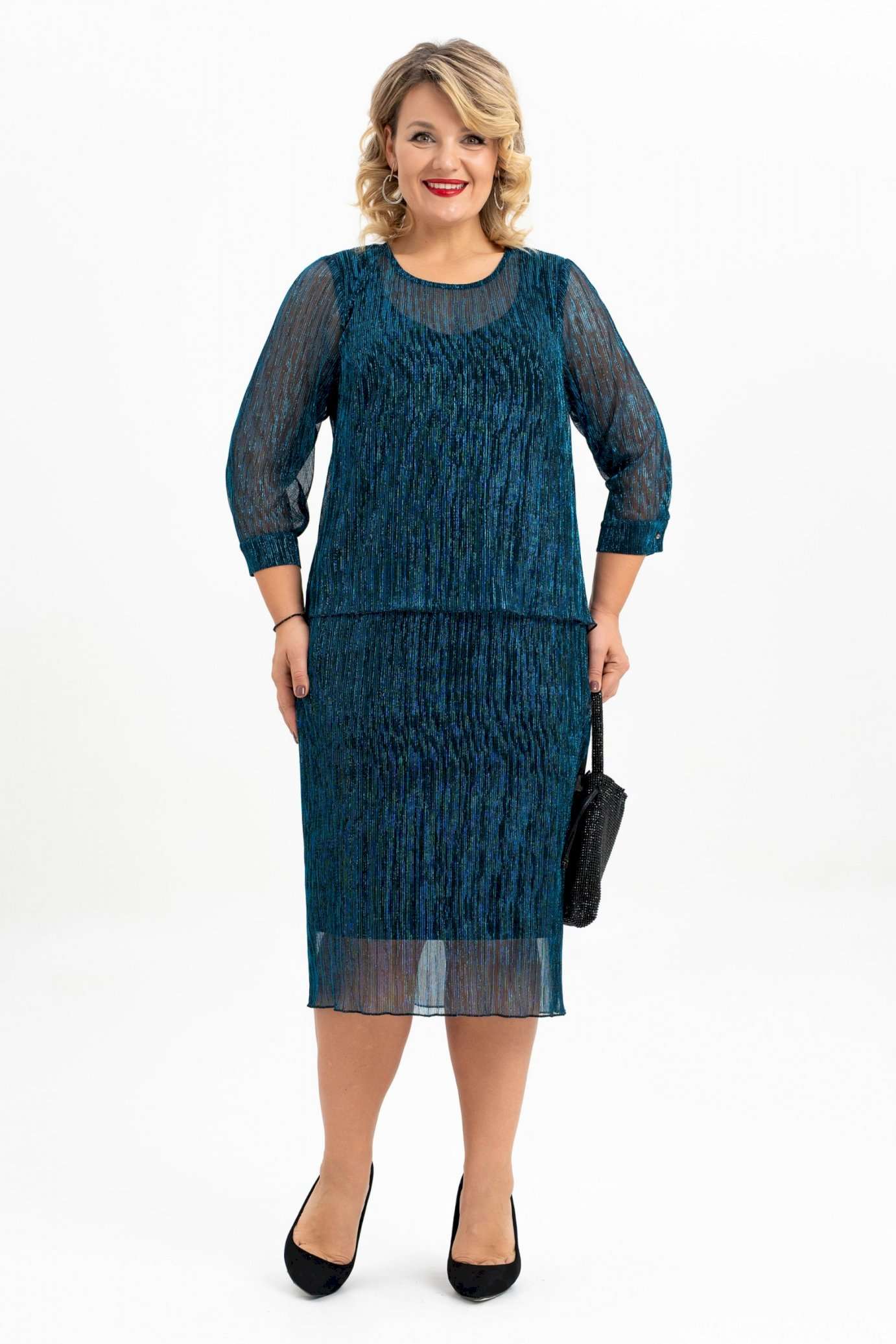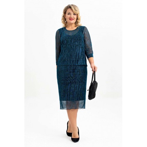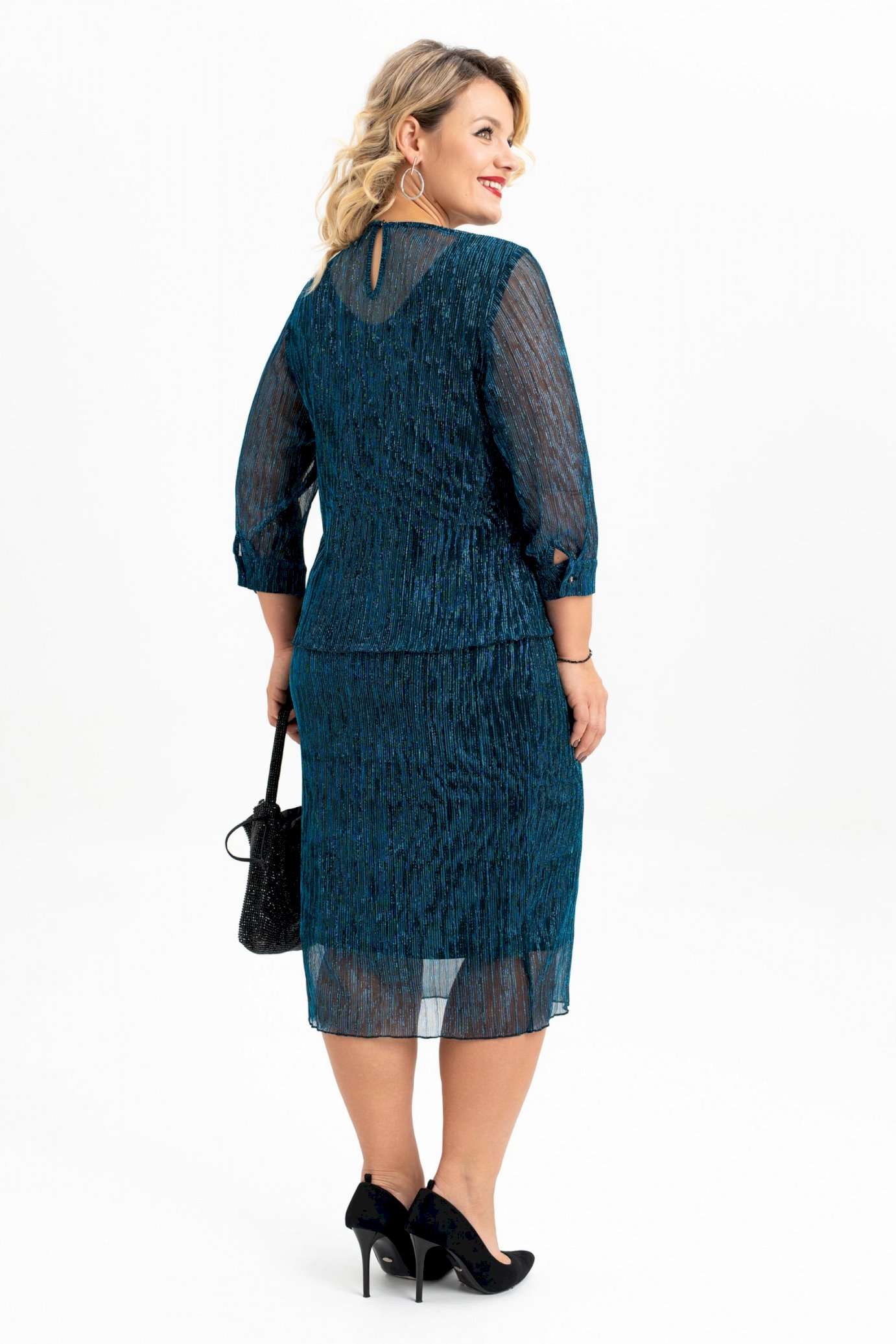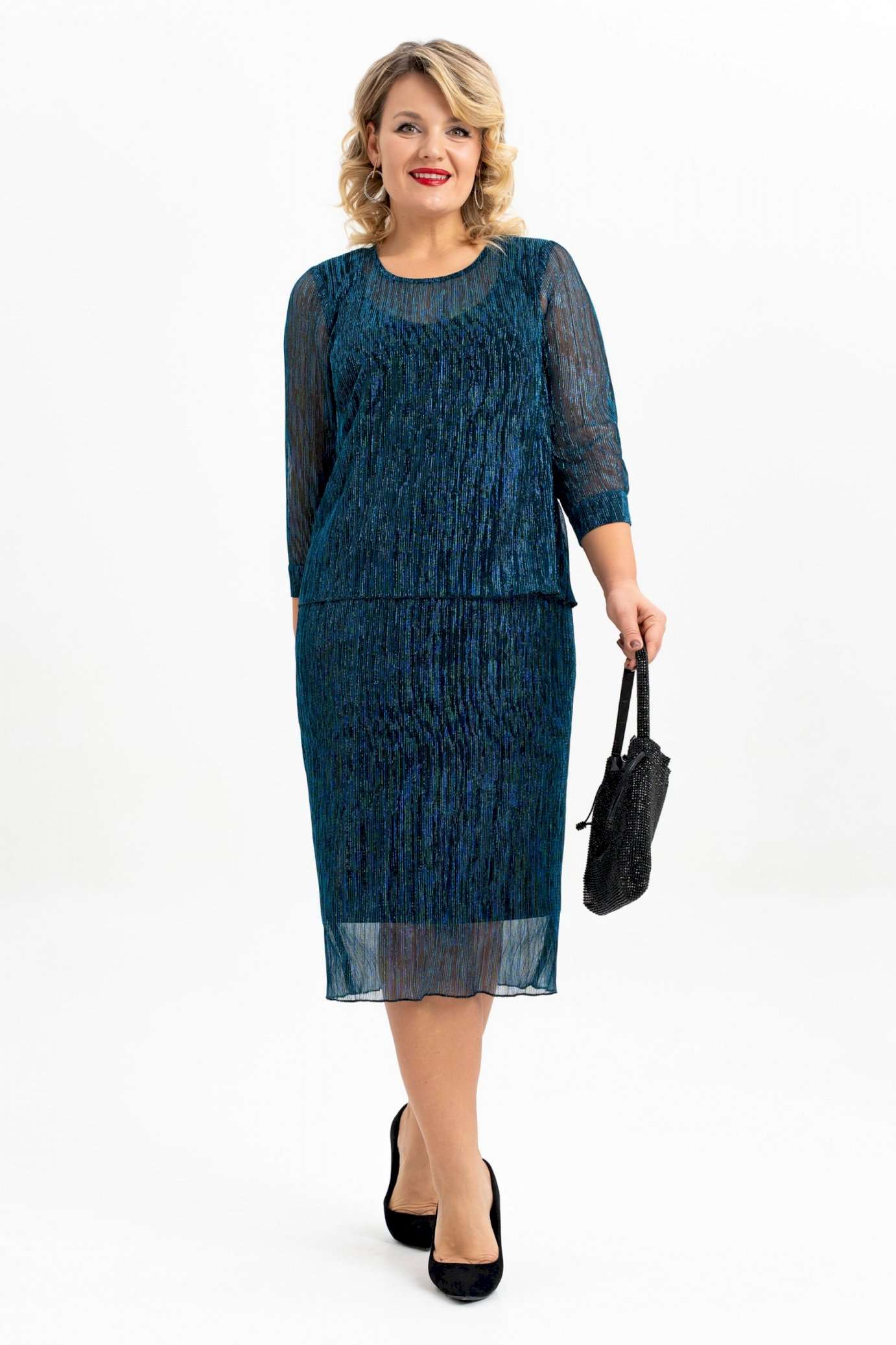 Элегантное плиссированное платье – стильный must-have для вашего праздничного гардероба! Полуприталенный силуэт и длина ниже колена делают это платье универсальным и практичным. Благодаря отлетным деталям переда и спинки, оно выглядит как изысканный костюм, сохраняя при этом легкость и комфорт. Мягкая плиссированная ткань и подкладка \"масло\" не сковывают движений, обеспечивая удобство в течение всего дня. Декоративная капелька на пуговицу по среднему шву спинки. Втачные рукава с элегантными манжетами на две декортивные пуговицы. Идеально подходит для торжественных мероприятий. Это платье будет великолепно смотреться в нарядном или молодежном стиле, дополняя Ваш образ в любое время года и любом мероприятии- день рождения, Новый год, свадьба и многие другие.