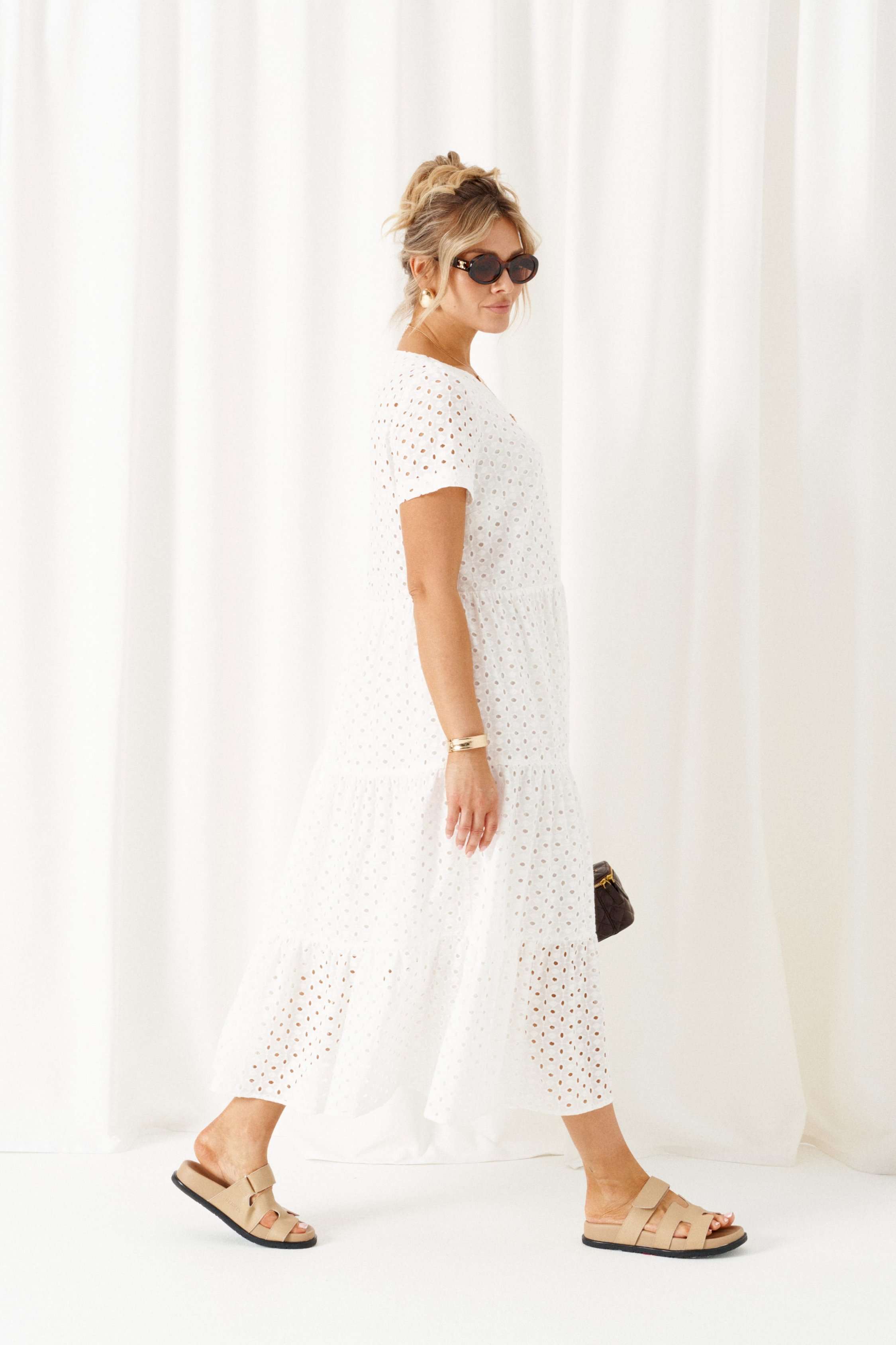 Легкое, струящееся платье из хлопка – идеальный выбор для лета! Универсального фасона, подходящее для любого мероприятия, длинное платье свободного силуэта из хлопка станет любимым в гардеробе! Даже в самый жаркий день вы будете чувствовать уверенно и комфортно. Платье позволяет скрыть особенности фигуры, на которые не хочется акцентировать внимание. В городских буднях, а также на отдыхе просто не обойтись без модели из хлопковой ткани! Платье длинной в пол, на хлопковой подкладке, отрезное по линии талии. Верхняя часть переда цельнокроеная с двумя нагрудными вытачками от бокового шва. Спинка цельнокроеная с двумя вытачками на талии. Низ платья объемный, широкий состоит из трех воланов одинаковой ширины. Рукав короткий, одношовный, втачной. Горловина округлая. Длина изделия по спинке ~ 128 см. Длина рукава ~ 24 см.