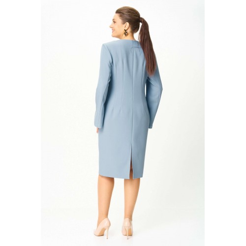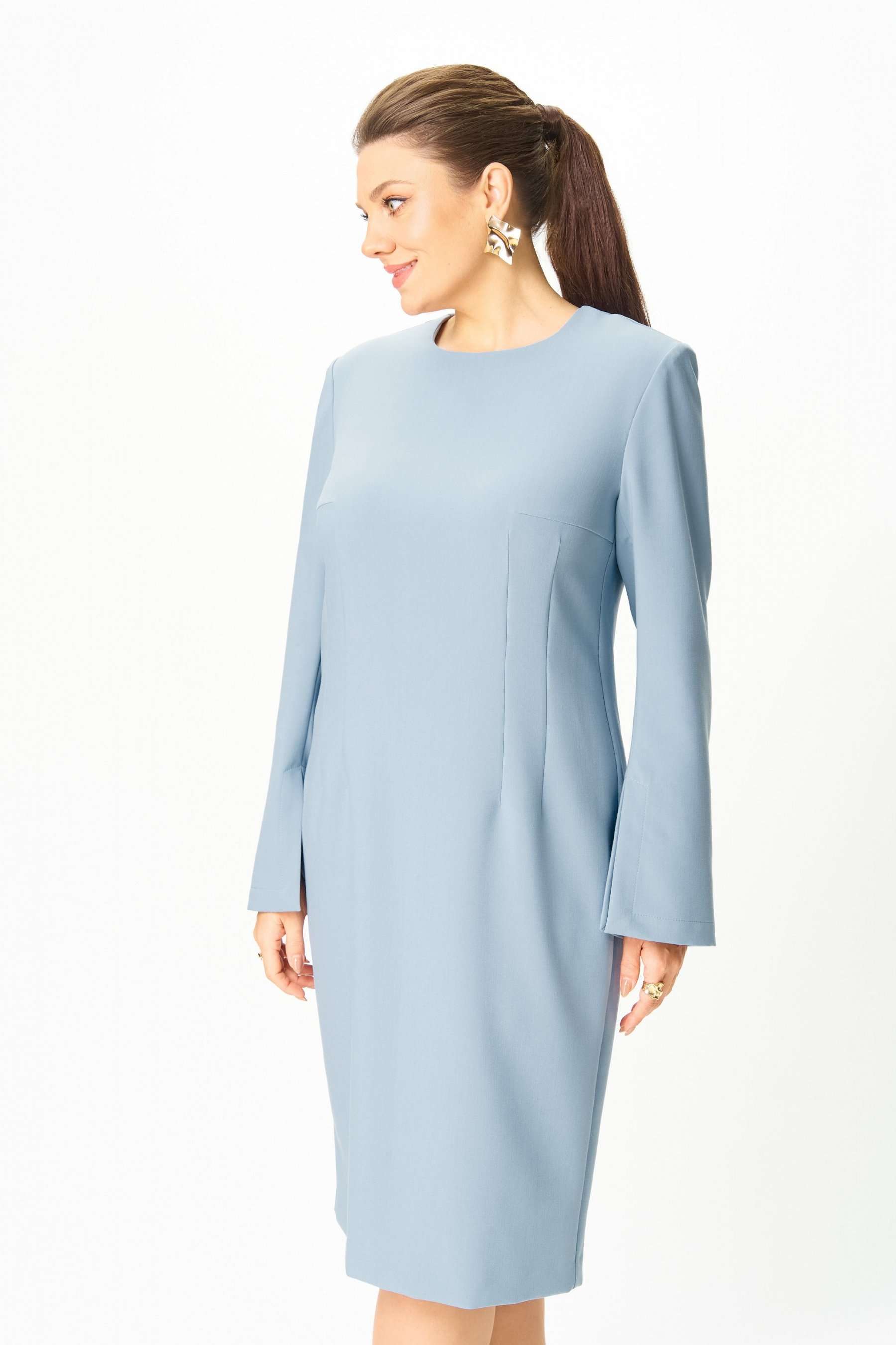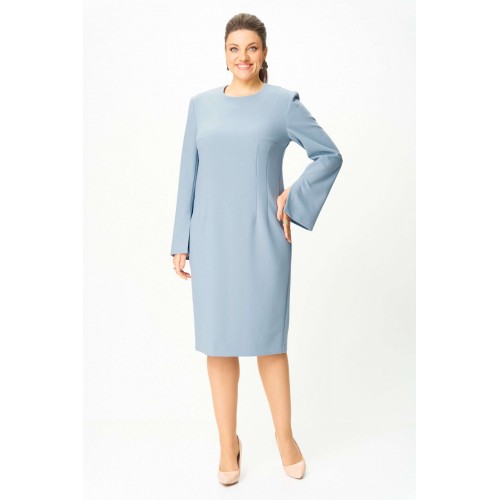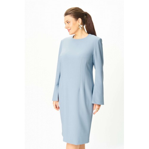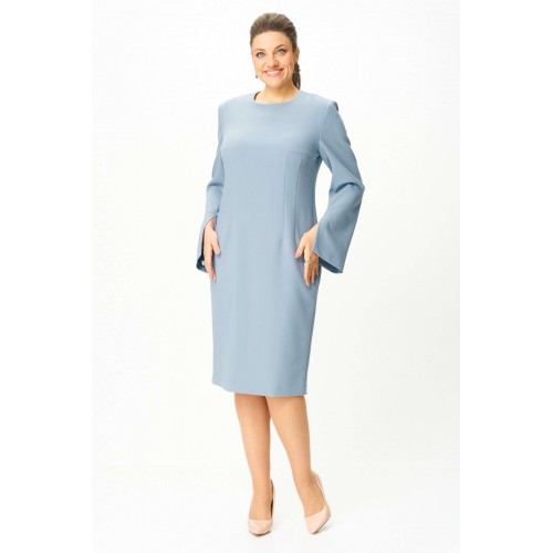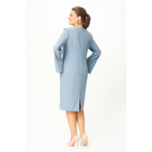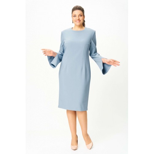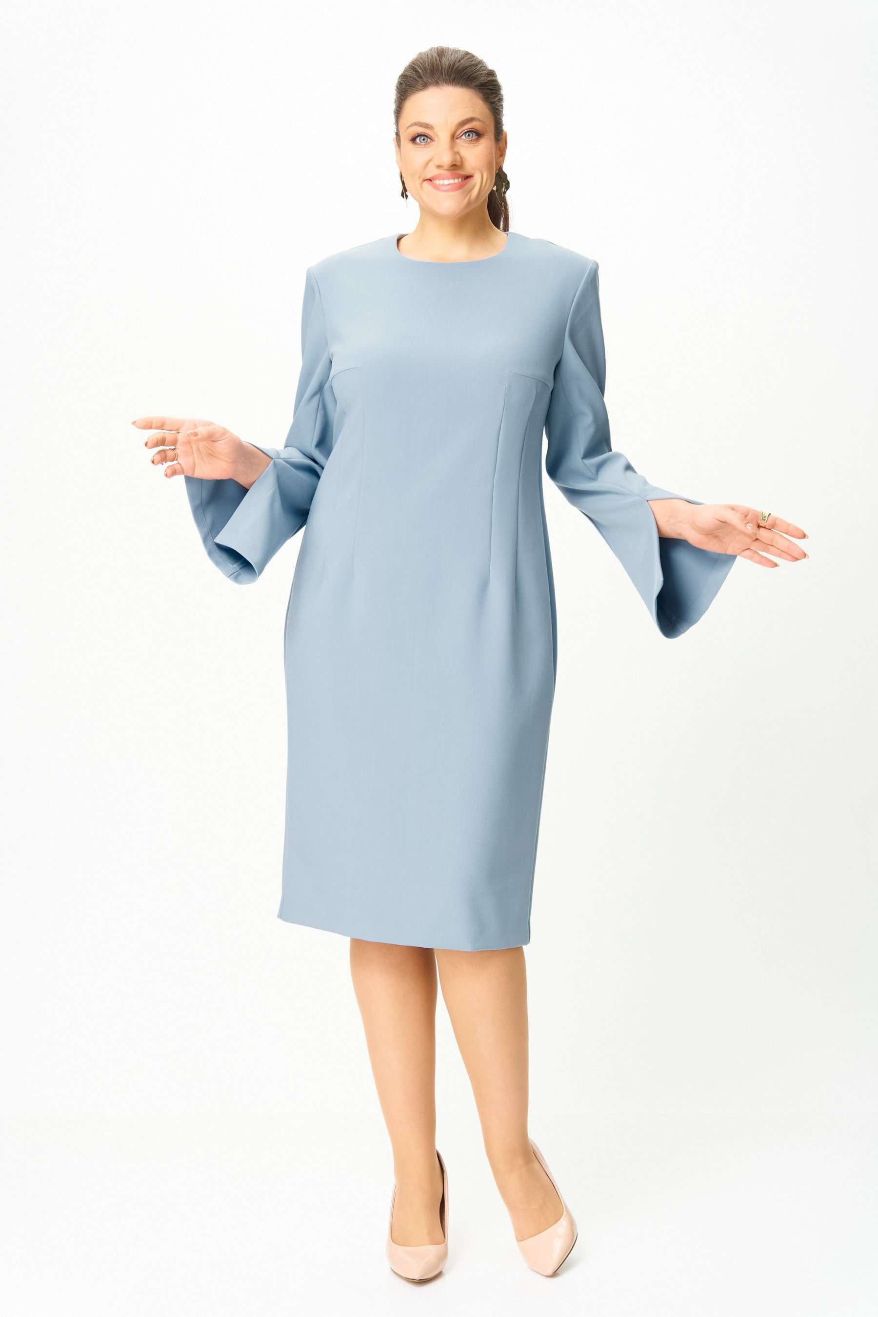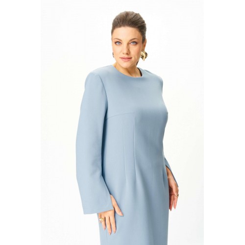 Элегантное женское платье, прилегающего силуэта: по переду и спинке вытачки по талии. Горловина круглая. Застежка на молнию в центральном шве спинки. Рукава втачные, двухшовные, расширенные к низу, в переднем шве, по низу, разрез. Платье без подкладки. Длина платья – 106 см. Длина рукава – 62 см.