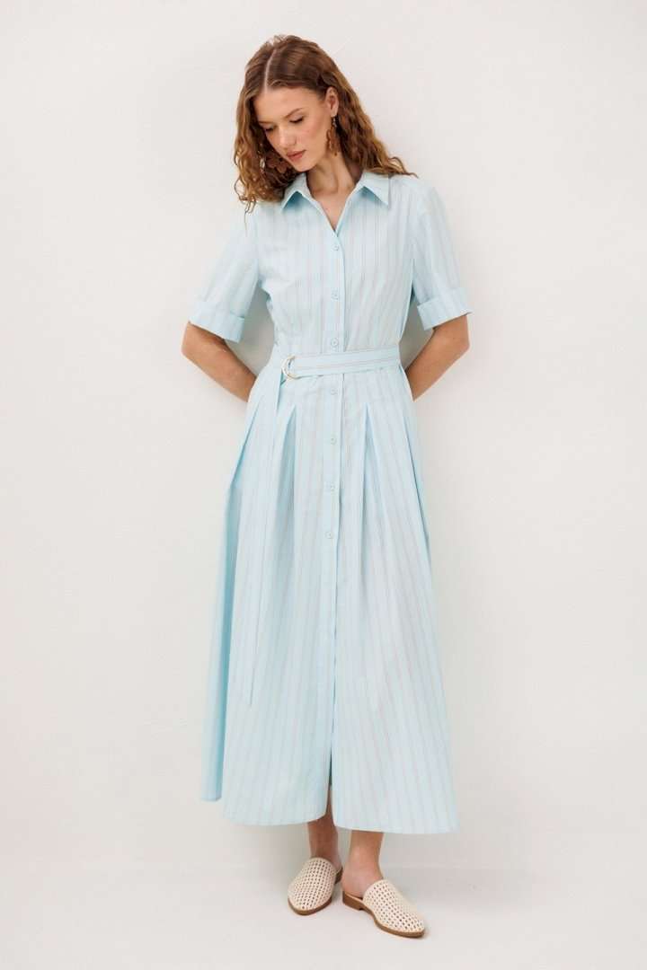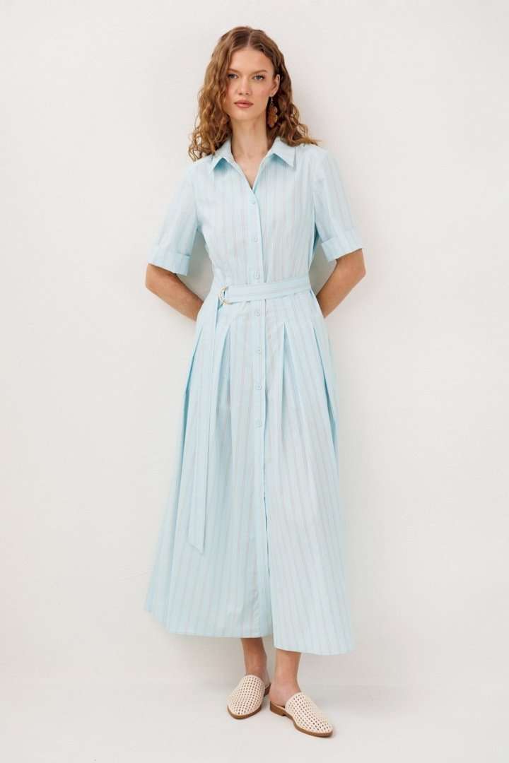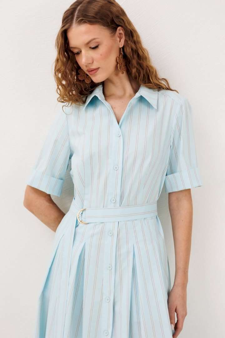 Платье 3341 красный BUTER сочетает в себе утончённость и комфорт. Коллекция бренда BUTER предлагает это изысканное длинное платье, изготовленное из хлопка с добавлением полиэстера и эластана, обеспечивающее лёгкость и дышащие свойства ткани. Приталенный фасон с талиевой вытачкой и юбкой со встречными складками подчёркивает женственность и изящество. Короткие рукава до локтя и рубашечный воротник придают платья классическому стилю. Платье снабжено центральной застежкой на пуговицы и карманами в боковых швах, что делает его удобным для повседневной носки. Яркий красный цвет и отрезная линия талии с поясом на полукольцах добавляют нотку элегантности. Идеально подходит для тёплого сезона и носки на каждый день.