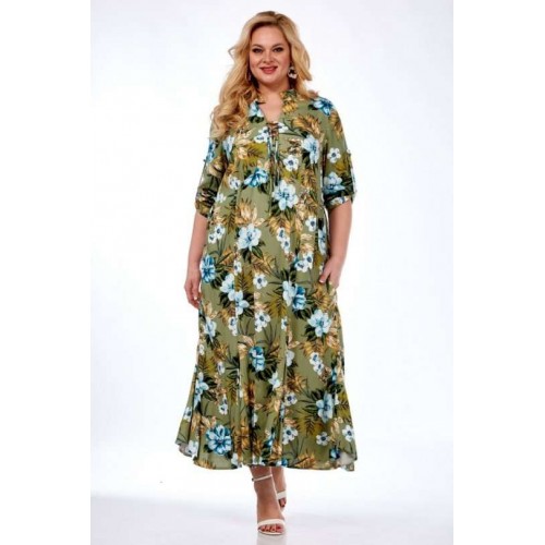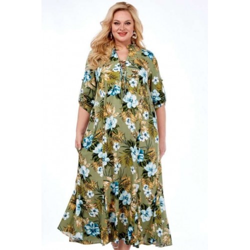 Длинное платье от Celentano из натурального вискозного полотна. Мягкая легкая ткань с интересным принтом для яркого лета! По полочке подрез ниже линии груди на сборке. Горловина с воротником-стойкой, вырез фигурный с завязками. В боковых швах расположены функциональные карманы. Спинка цельнокроеная. Рукав втачной одношовный с патой, застегивающейся на пуговицу. По низу изделия вставлены клинья. Ткань вискоза 100%, не тянется. Длина изделия 125 см. Длина рукава 48 см. Рост модели в маленьком размере 175 см, в большом 170 см.