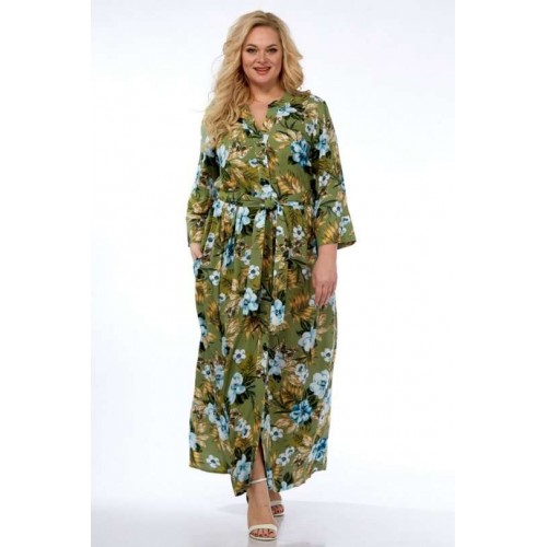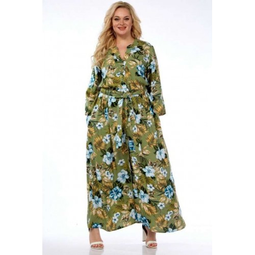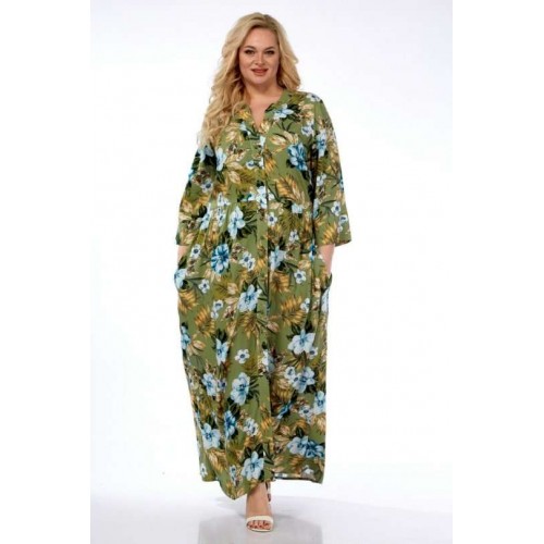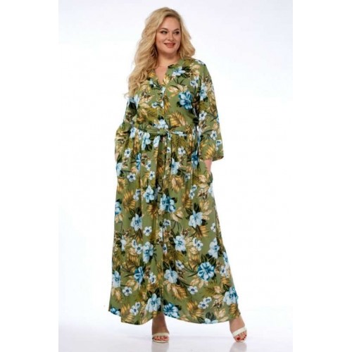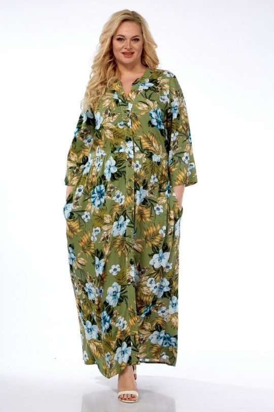 Платье от Celentano из вискозного полотна длинной макси. Спинка и полочка отрезные чуть ниже талии, в боковых швах внутренние функциональные карманы, застежка центральная на петли и пуговицы. Нижняя часть спинки и полочки чуть собрана. Рукав одношовный, низ обработан широкой манжетой с возможностью подворота. Платье выполнено из мягкой штапельной ткани устойчивой окраски. Рекомендуется вертикальная сушка. Длина по спинке 145 см, длина рукава с учётом манжеты 49 см, длина отрезной спинки 43 см, длина отрезной полочки 49 см. Рост модели 170 см.