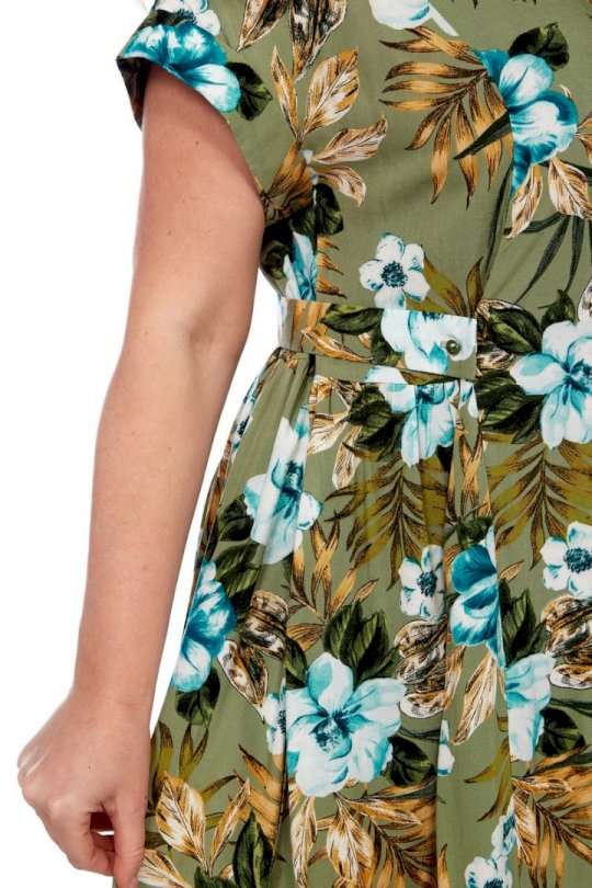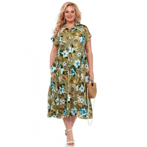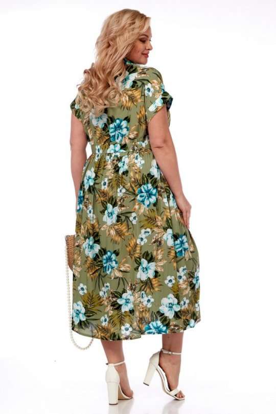 Летнее платье от Celentano длиной миди из натурального вискозного полотна. Спинка и полочка разрезные по талии, лиф платья присобран. Сзади по талии платье декорировано съемным хлястиком. Застежка центральная на петли и пуговицы. Воротник отложной рубашечного типа. Рукав спущенный, с манжетой. В боковых швах выполнены функциональные карманы. Платье выполнено из мягкой штапельной ткани устойчивой окраски. Рекомендуется вертикальная сушка. Длина изделия по спинке 121 см. Рост модели 170 см.
