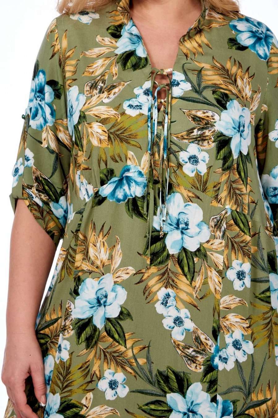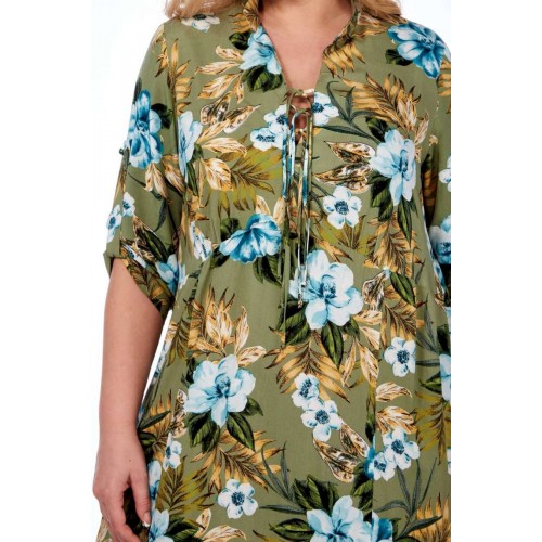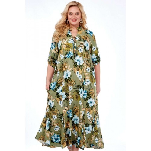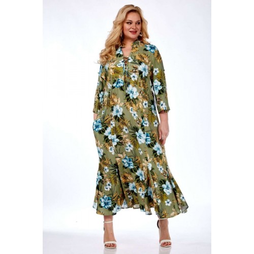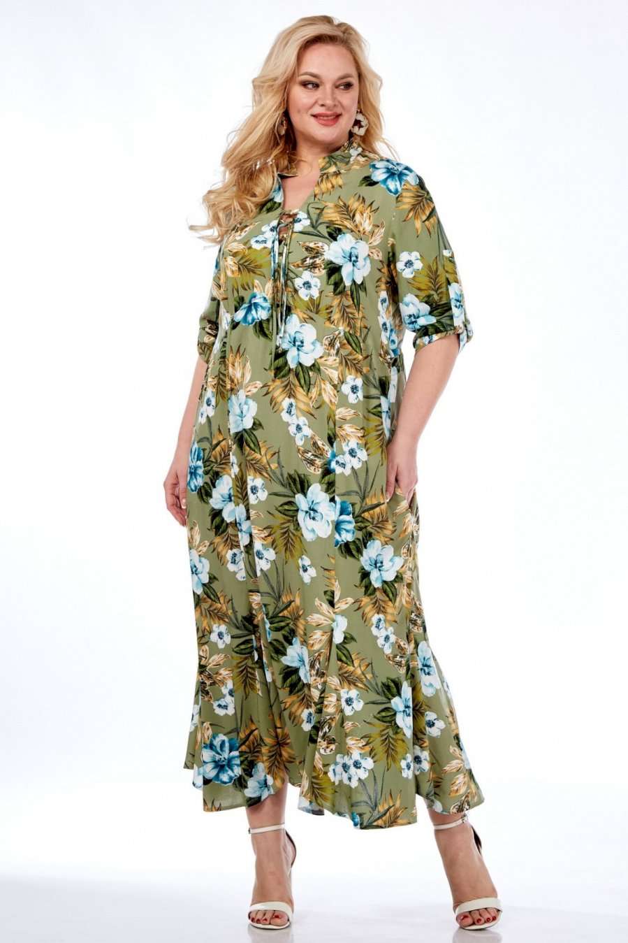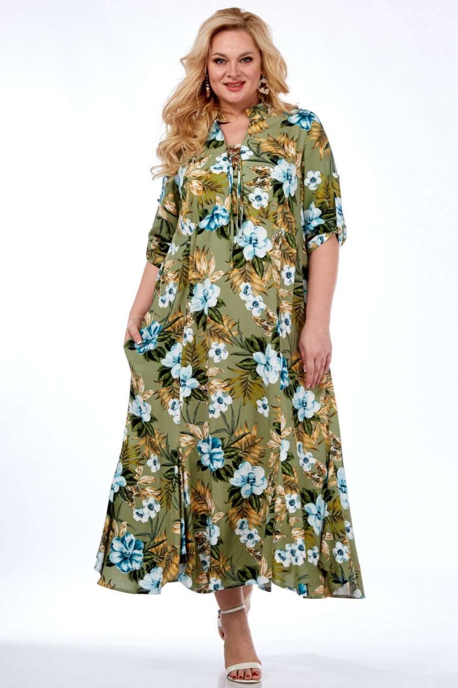 Длинное платье от Celentano из натурального вискозного полотна. Мягкая легкая ткань с интересным принтом для теплой весны и яркого лета! По полочке подрез ниже линии груди на сборке. Горловина с воротником-стойкой, вырез фигурный с завязками. В боковых швах расположены функциональные карманы. Спинка цельнокроеная. Рукав втачной одношовный с патой, застегивающейся на пуговицу. По низу изделия вставлены клинья. Ткань вискоза 100%, не тянется. Длина изделия 125 см. Длина рукава 48 см. Рост модели 170 см.