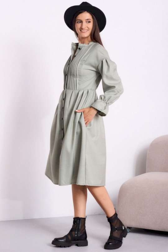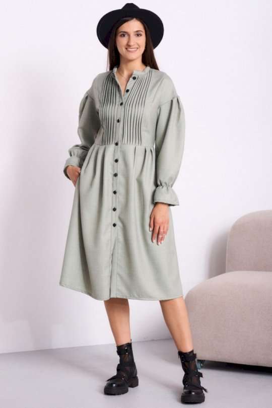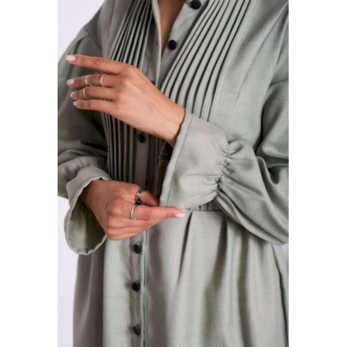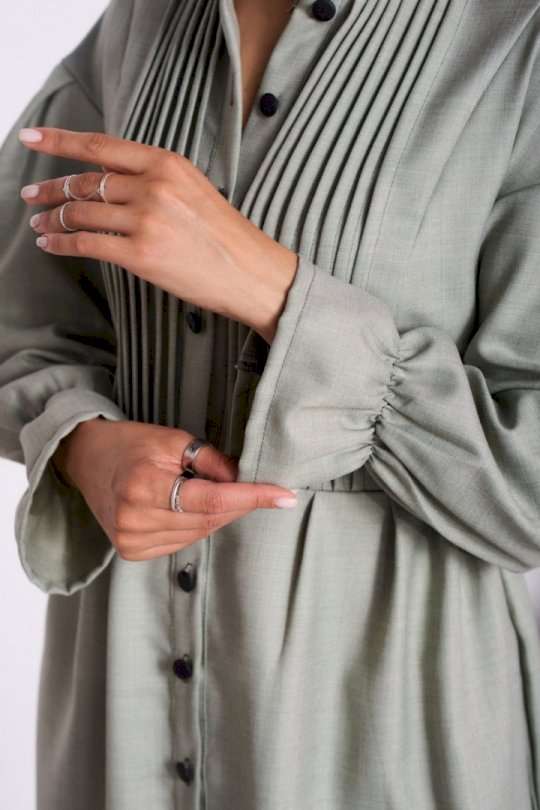 Идеальное платье для современной женщины! Celentano – это гармония стиля и уюта, где каждая деталь продумана для вашего комфорта и уверенности. Натуральный состав ткани позволяет коже дышать, обеспечивая максимальный комфорт на протяжении всего дня. Платье прямого силуэта, слегка расширяющееся к низу, свободного кроя, с округлой горловиной обработанной воротником стойкой. Застежка центральная на петли и пуговицы позволяет регулировать глубину выреза. Рукав платья со спущенным плечом и манжетой на резинке создают непринужденный и элегантный силуэт. Центральная часть полочки обработана односторонними складками, линия талии подчеркнута легкой сборкой (защипы). Особая деталь платья Celentano – присобранный на эластичную тесьму лиф по спинке на уровне талии. Это гениальное решение обеспечивает идеальную посадку на любой фигуре в размерном ряду от 42 до 52. Платье прекрасно приталено, подчеркивая женственные формы, и при этом не сковывает движений. В платье есть внутренние карманы в боковых швах, что придает удобства платью.Ткань не тянется. Длина платья 106 см, длина рукава 69см с учетом приспущенного плеча. Платье легко сочетается с различными аксессуарами и обувью, позволяя создавать множество образов на любой случай. С чем носить Celentano? • Богемный шик: Шляпа-федора, грубые ботинки и массивная сумка – для создания дерзкого и запоминающегося образа. • Городской минимализм: Кроссовки, лаконичный рюкзак и минимум украшений – для активного дня в городе. • Романтичный образ: Лодочки, нежный кардиган и жемчужное ожерелье – для свидания или прогулки. • Экспериментируйте! Платье Celentano – это отличный холст для вашего творчества! Как ухаживать за Celentano? • Деликатная стирка: Рекомендуется ручная стирка или деликатный режим в стиральной машине при температуре не выше 30 градусов. • Используйте мягкие моющие средства: Откажитесь от отбеливателей и агрессивных средств. • Не выкручивайте: Аккуратно отожмите платье, не выкручивая его. • Сушите в горизонтальном положении: Разложите платье на горизонтальной поверхности, чтобы избежать деформации. • Гладьте на низкой температуре: Если необходимо, гладьте платье с изнаночной стороны на минимальной температуре. • Не стирайте слишком часто: Шерсть и хлопок не требуют частой стирки. Проветривайте платье после каждой носки. Почувствуйте гармонию стиля и комфорта с Celentano!