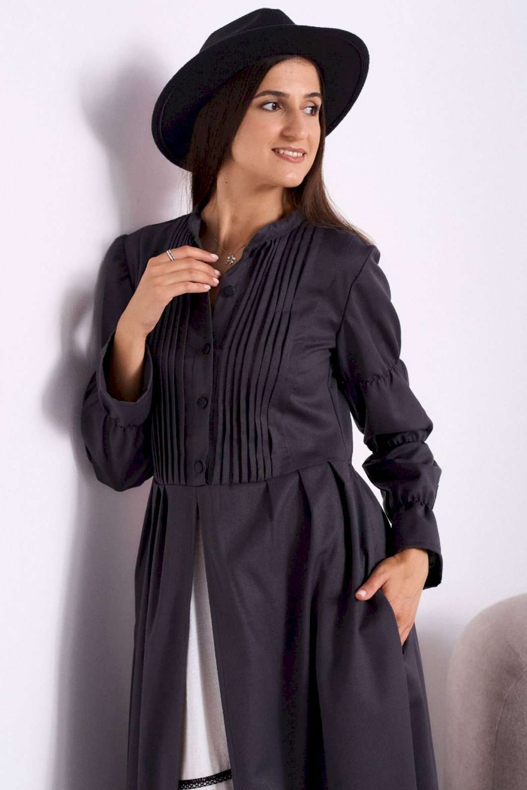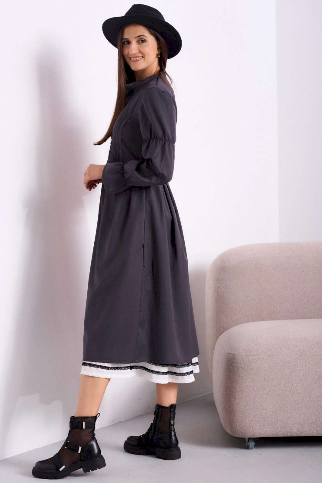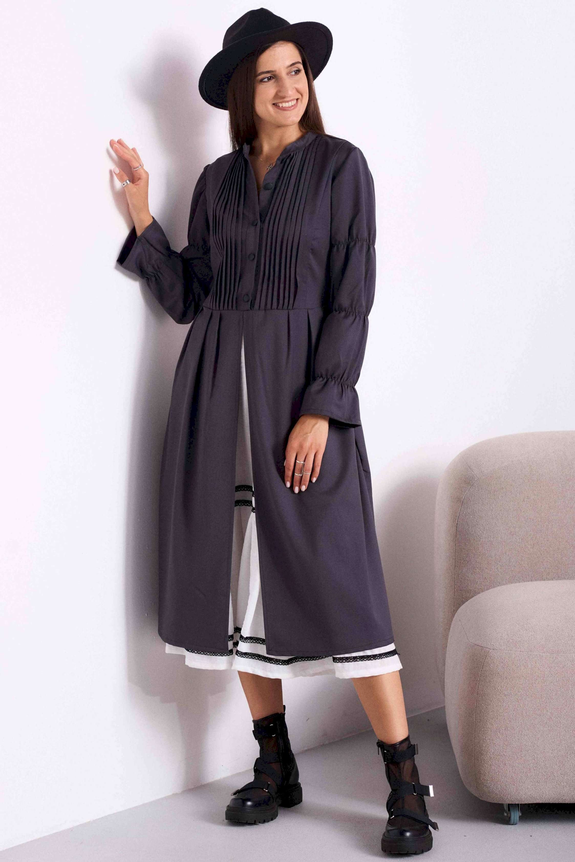 Платье дуэт от Celentano - total look с характером! Платье, которое говорит само за себя! Модель М 5052 от Celentano – это изысканное сочетание элегантности и смелости, идеальное для создания неповторимого образа. Классический черный цвет всегда в тренде, а уникальный крой этого платья подчеркнет вашу индивидуальность. Celentano . Лиф полочки украшен встречными складками (гофре), добавляющими образу строгости и утонченности. Приталенный силуэт с акцентом на талии достигается за счет призборенной спинки, обеспечивающей идеальную посадку по фигуре. Одношовный вточной рукав длиной 62 см завершается поперечной сборкой, создавая легкий и романтичный объем. Длина платья по спинке – 112 см. Главный секрет модели М 5052 – дуэт с расшитой тесьмой юбкой! Белая юбка с вышивкой создает эффект многослойности и добавляет образу легкости и женственности. Длина юбки с учетом пояса – 80 см. Носите кардиган как самостоятельный элемент, сочетая его с брюками, джинсами или шортами. Используйте юбку в качестве основы для создания множества других образов, комбинируя ее с топами, блузками и свитерами. Вместе они образуют гармоничное и стильное платье, идеально подходящий для любого случая. С чем носить Модель 5052? • Дерзкий гранж: Черные ботинки на шнуровке, шляпа-федора и кожаная куртка – для создания бунтарского и стильного образа. • Элегантная классика: Лодочки, строгий жакет и жемчужная нить – для создания безупречного делового образа. • Романтичный стиль: Босоножки на танкетке, соломенная шляпа и сумка с цветочным принтом – для легкого летнего образа. • Экспериментируйте! Модель М 5052 создана для смелых модных решений! Как ухаживать за платьем? • Деликатная стирка: Рекомендуется ручная стирка или деликатный режим в стиральной машине при температуре не выше 30 градусов. • Используйте мягкие моющие средства: Откажитесь от отбеливателей и агрессивных средств. • Не выкручивайте: Аккуратно отожмите платье, не выкручивая его. • Сушите в горизонтальном положении: Разложите платье на горизонтальной поверхности, чтобы избежать деформации. • Гладьте на низкой температуре: Если необходимо, гладьте платье с изнаночной стороны на минимальной температуре. • Не стирайте слишком часто: Шерсть и хлопок не требуют частой стирки. Проветривайте платье после каждой носки. Почувствуйте силу стиля с Celentano!