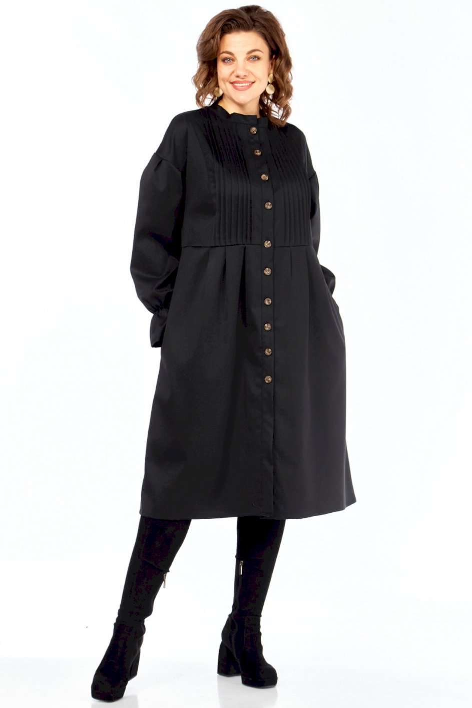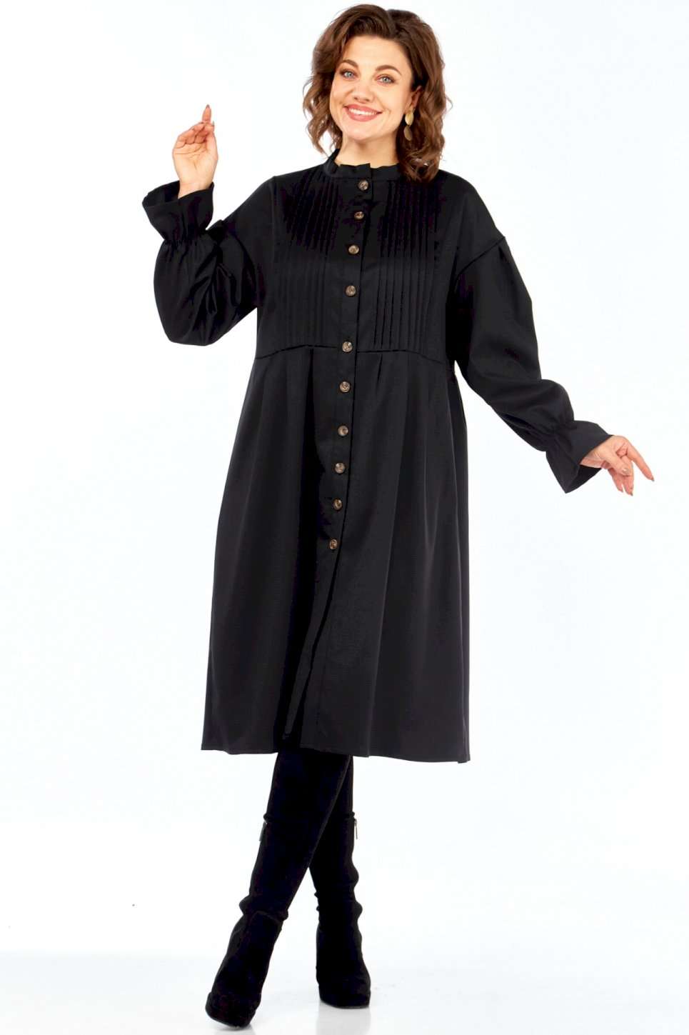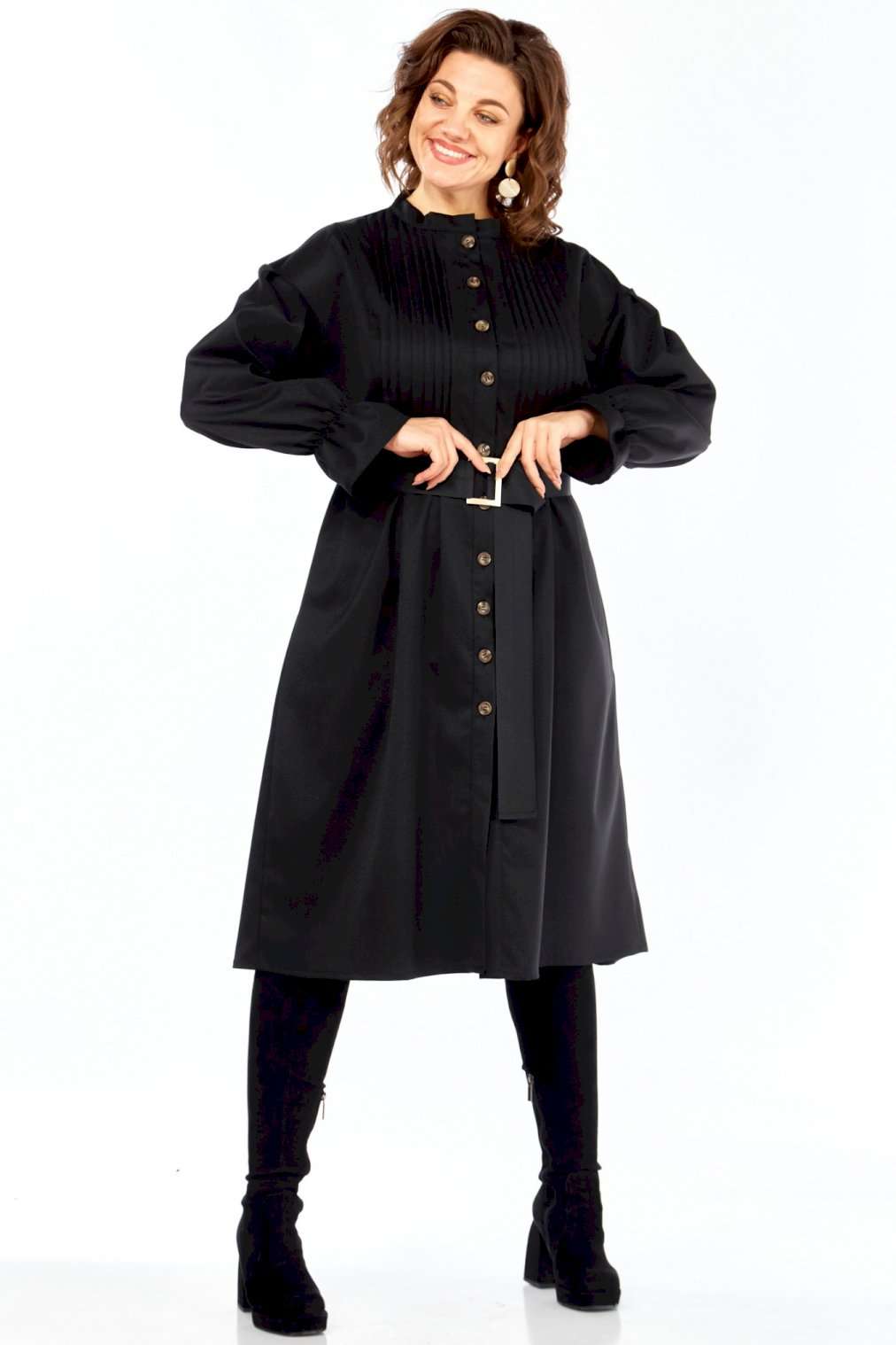 \"Идеальное платье для современной женщины! Натуральный состав ткани позволяет коже дышать, обеспечивая максимальный комфорт на протяжении всего дня. Платье свободного кроя, с округлой горловиной обработанной воротником стойкой. Застежка центральная на петли и пуговицы позволяет регулировать глубину выреза. Рукав платья со спущенным плечом и манжетой на резинке создают непринужденный и элегантный силуэт. Центральная часть полочки обработана односторонними складками, линия талии подчеркнута легкой сборкой (защипы). В комплекте идет пояс, который подчеркивает женственные формы, и при этом не сковывает движений. В платье есть внутренние карманы в боковых швах, что придает удобства платью.Ткань не тянется. Длина платья 106 см, длина рукава 69см с учетом приспущенного плеча. Платье легко сочетается с различными аксессуарами и обувью, позволяя создавать множество образов на любой случай. Как ухаживать за Celentano? • Деликатная стирка: Рекомендуется ручная стирка или деликатный режим в стиральной машине при температуре не выше 30 градусов. • Используйте мягкие моющие средства: Откажитесь от отбеливателей и агрессивных средств. • Не выкручивайте: Аккуратно отожмите платье, не выкручивая его. • Сушите в горизонтальном положении: Разложите платье на горизонтальной поверхности, чтобы избежать деформации. • Гладьте на низкой температуре: Если необходимо, гладьте платье с изнаночной стороны на минимальной температуре. • Не стирайте слишком часто: Шерсть и хлопок не требуют частой стирки. Проветривайте платье после каждой носки. Почувствуйте гармонию стиля и комфорта с Celentano!\"