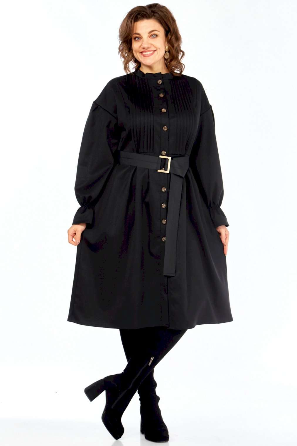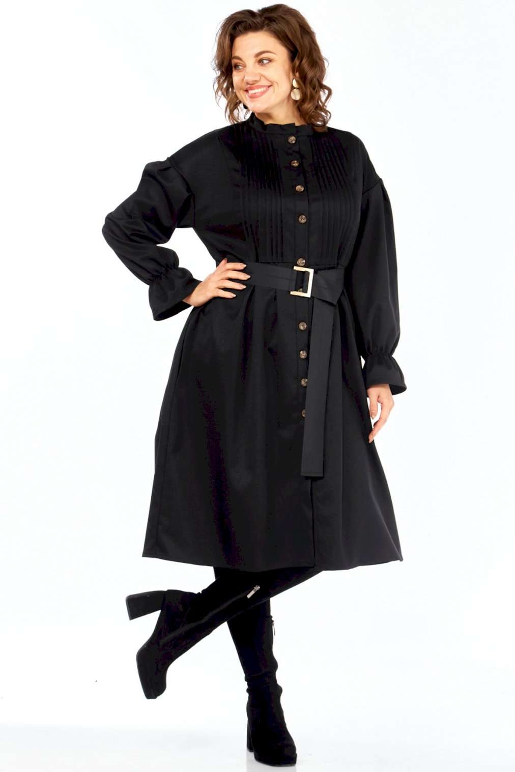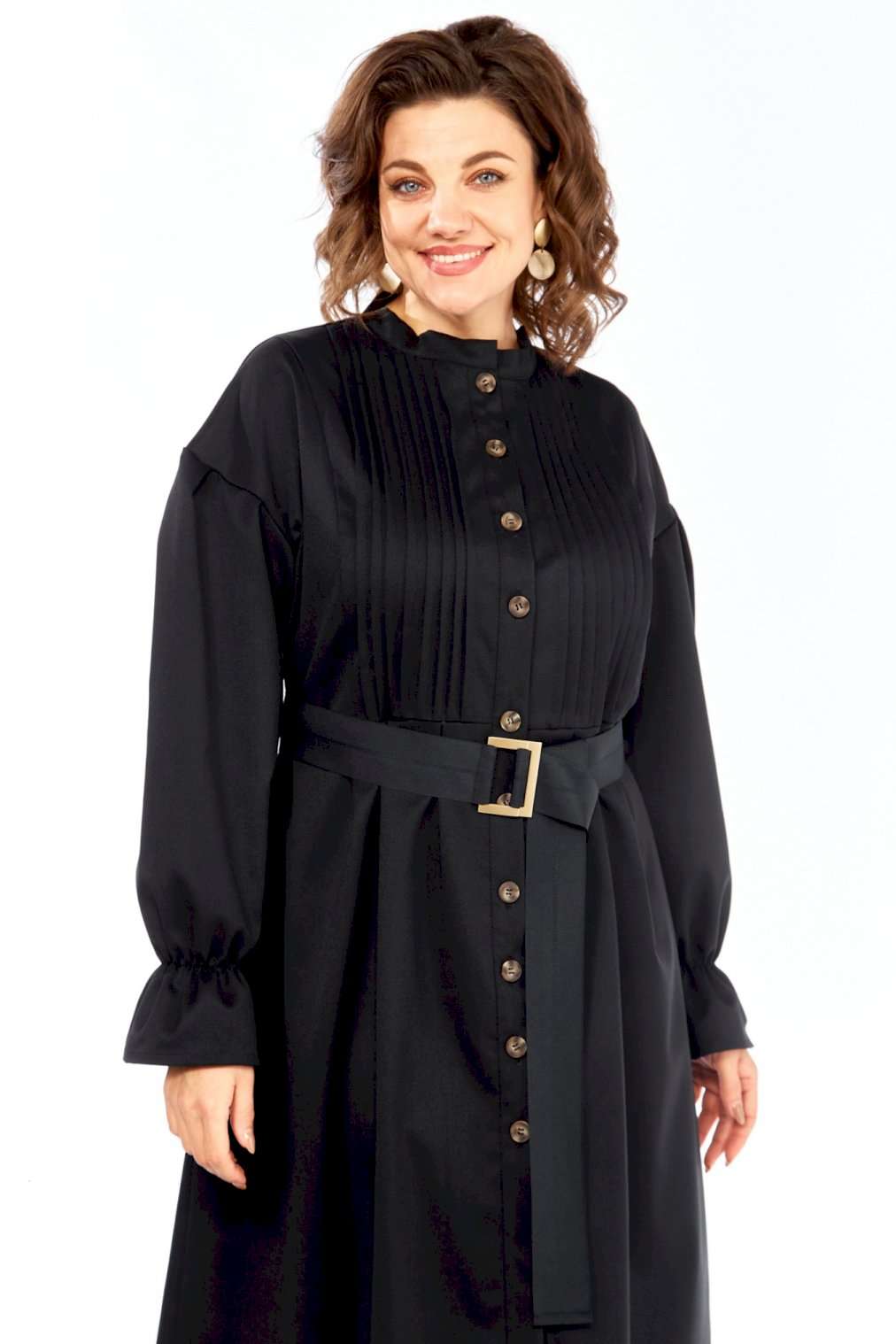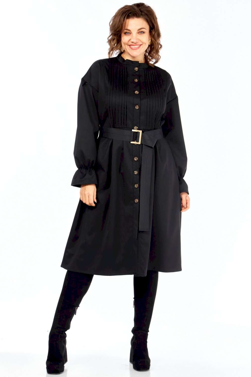 \"Идеальное платье для современной женщины! Натуральный состав ткани позволяет коже дышать, обеспечивая максимальный комфорт на протяжении всего дня. Платье свободного кроя, с округлой горловиной обработанной воротником стойкой. Застежка центральная на петли и пуговицы позволяет регулировать глубину выреза. Рукав платья со спущенным плечом и манжетой на резинке создают непринужденный и элегантный силуэт. Центральная часть полочки обработана односторонними складками, линия талии подчеркнута легкой сборкой (защипы). В комплекте идет пояс, который подчеркивает женственные формы, и при этом не сковывает движений. В платье есть внутренние карманы в боковых швах, что придает удобства платью.Ткань не тянется. Длина платья 106 см, длина рукава 69см с учетом приспущенного плеча. Платье легко сочетается с различными аксессуарами и обувью, позволяя создавать множество образов на любой случай. Как ухаживать за Celentano? • Деликатная стирка: Рекомендуется ручная стирка или деликатный режим в стиральной машине при температуре не выше 30 градусов. • Используйте мягкие моющие средства: Откажитесь от отбеливателей и агрессивных средств. • Не выкручивайте: Аккуратно отожмите платье, не выкручивая его. • Сушите в горизонтальном положении: Разложите платье на горизонтальной поверхности, чтобы избежать деформации. • Гладьте на низкой температуре: Если необходимо, гладьте платье с изнаночной стороны на минимальной температуре. • Не стирайте слишком часто: Шерсть и хлопок не требуют частой стирки. Проветривайте платье после каждой носки. Почувствуйте гармонию стиля и комфорта с Celentano!\"