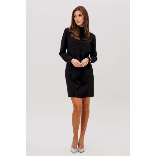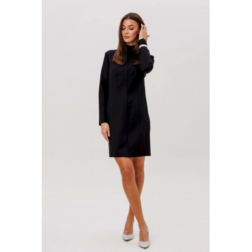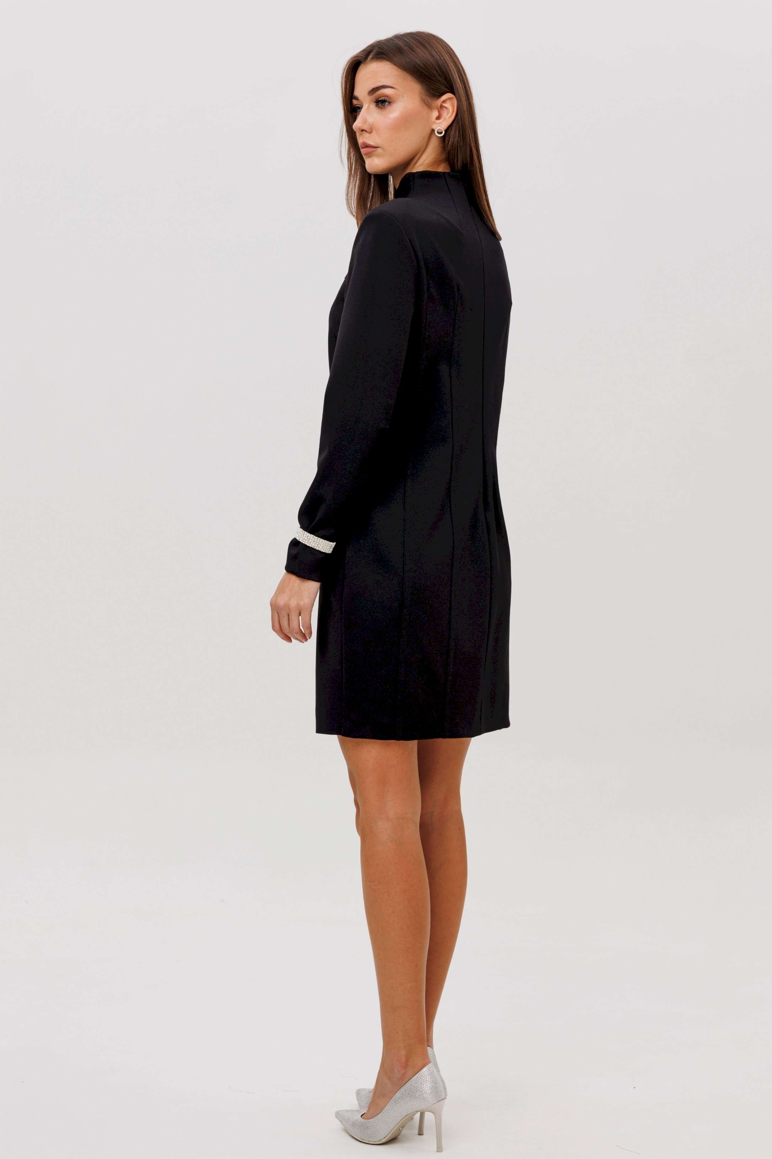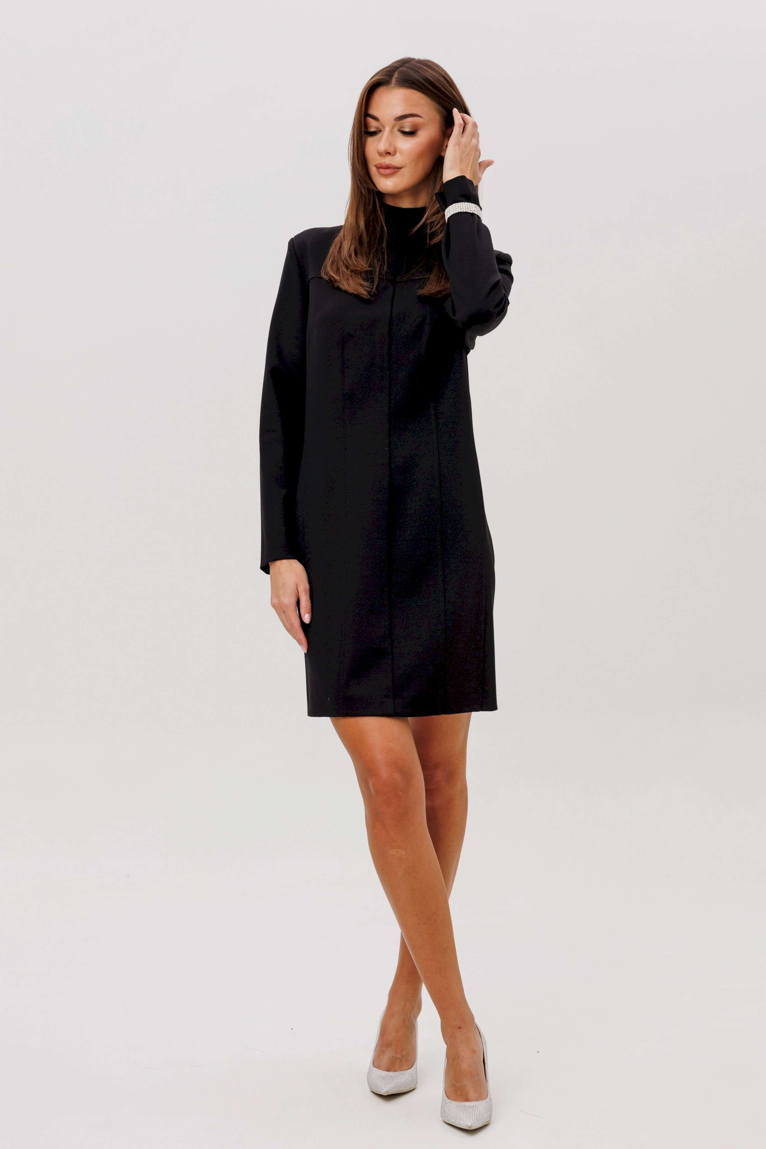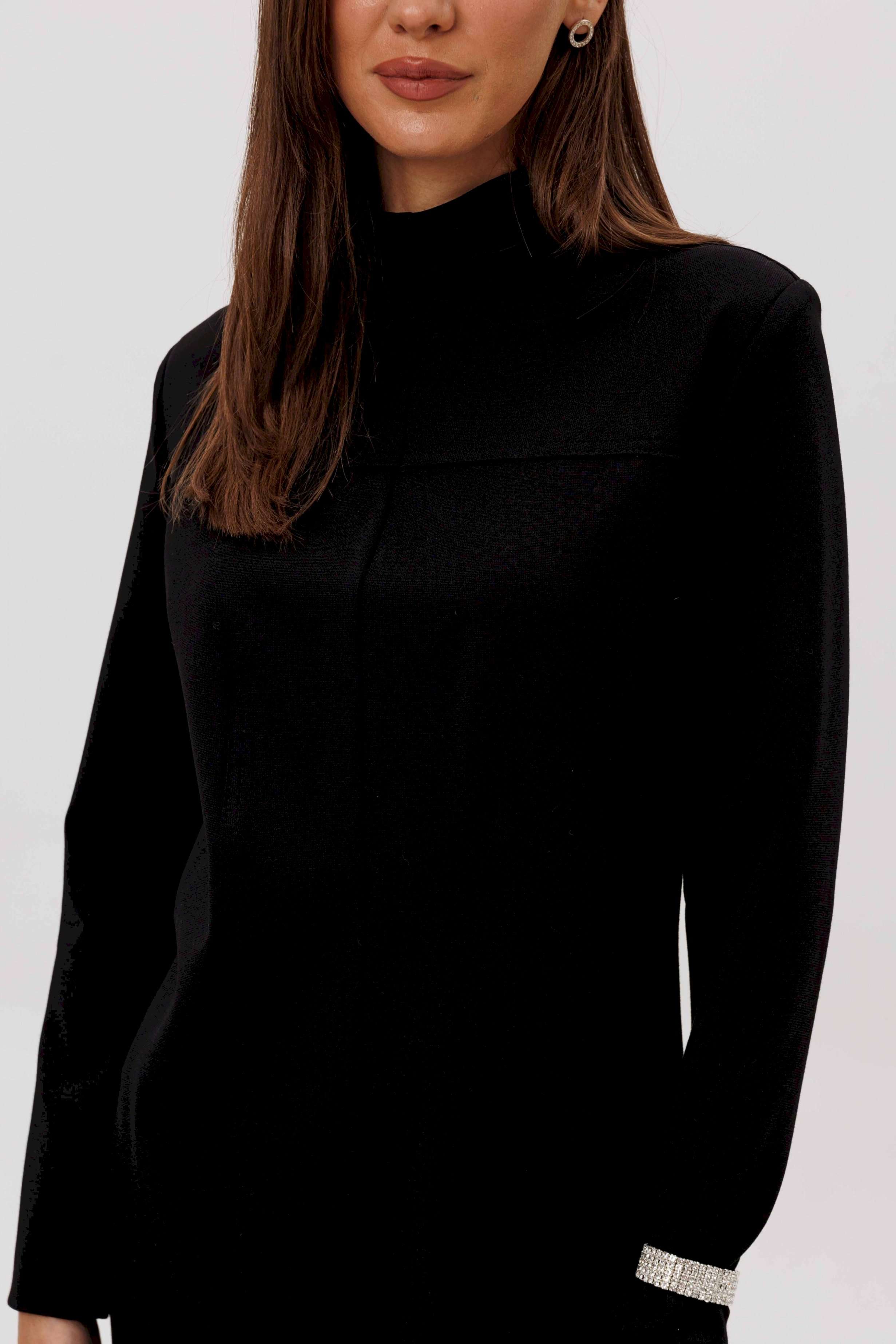 Откройте для себя новое прочтение легенды — маленькое чёрное платье, созданное для тех, кто ценит идеальную посадку, продуманную архитектуру кроя и сдержанную элегантность. Модель выполнена в прилегающем силуэте, который подчёркивает линии фигуры, оставаясь при этом максимально деликатным и утончённым. Сложное конструктивное решение превращает платье в настоящий объект дизайна: — цельнокроенный воротник-стойка добавляет образу графичности и аристократичной строгости; — отрезная кокетка по полочке формирует аккуратный, выверенный верх; — вытачки, перенесённые в линию низа, визуально вытягивают силуэт и создают эффект лёгкой динамики; — благодаря им изделие делится на 12 идеальных равных сегментов, подчёркивающих индивидуальность кроя и тонкость работы. Это платье — не просто базовая вещь. Это продуманная, современная интерпретация классики, которая позволит вам выглядеть уверенно, безупречно и по-настоящему эффектно в любой ситуации — от деловой встречи до вечернего выхода. Ваше новое идеальное маленькое чёрное платье, которое работает на образ так же, как дорогой аксессуар.