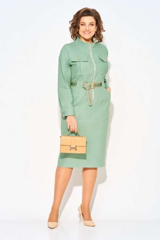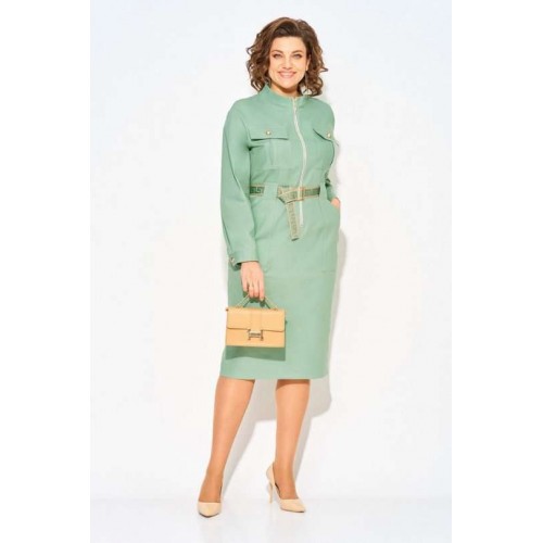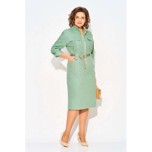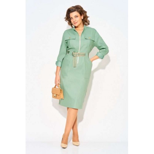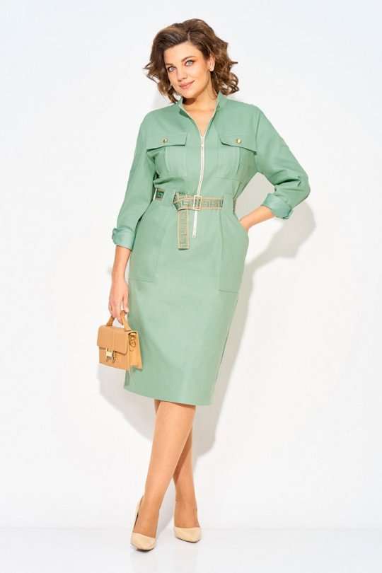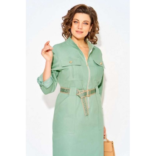 Стильное и эффектное платье, в стиле- сафари! Модель выполнена из хлопкового джинса! Платье полуприталенного силуэта, длиной за колено. По талии отрезное. Воротник - небольшая стойка, переходящая в застежку на металлическую молнию. Рука рубашечный, полной длины. По низу рукава предусмотрен манжет с застежкой на пуговку. По полочке расположены накладные карманы с клапаном. В платье также предусмотрены накладные карманы. По спинке кокетка с центральным швом переходящий в разрез на свободу движения. В платье предусмотрен съёмный пояс с металлической пряжкой! Длина платья 110 см. Длина рукава 62 см.