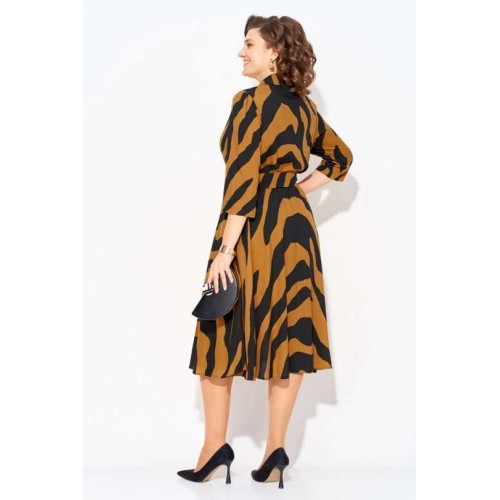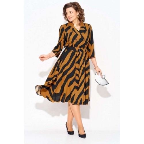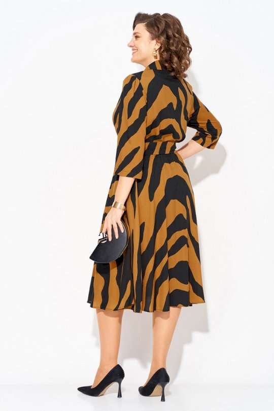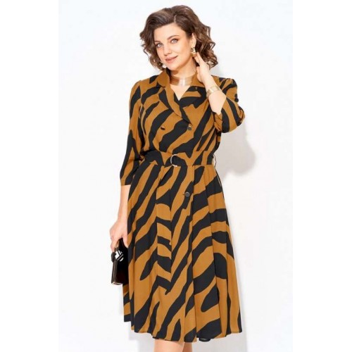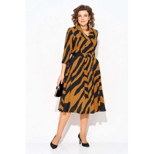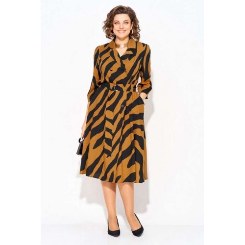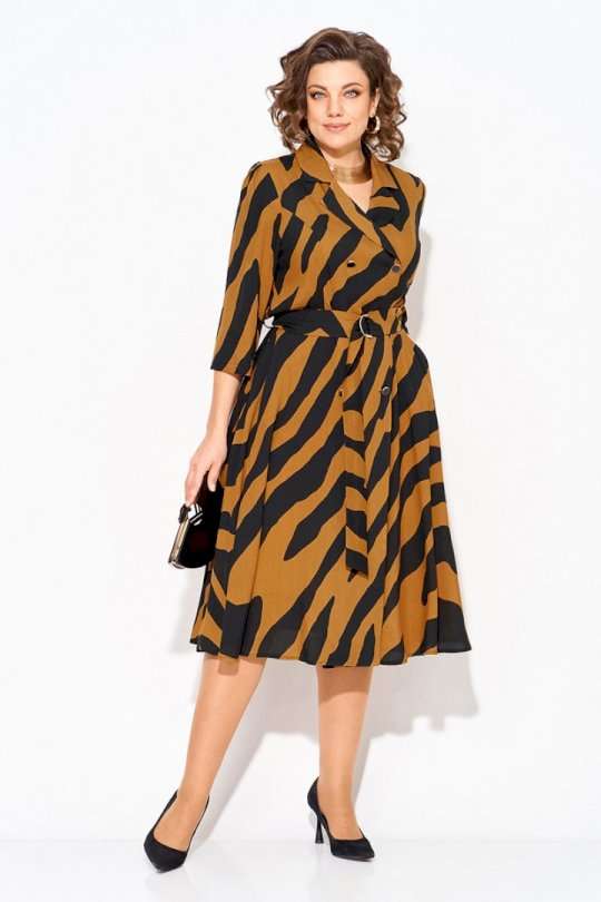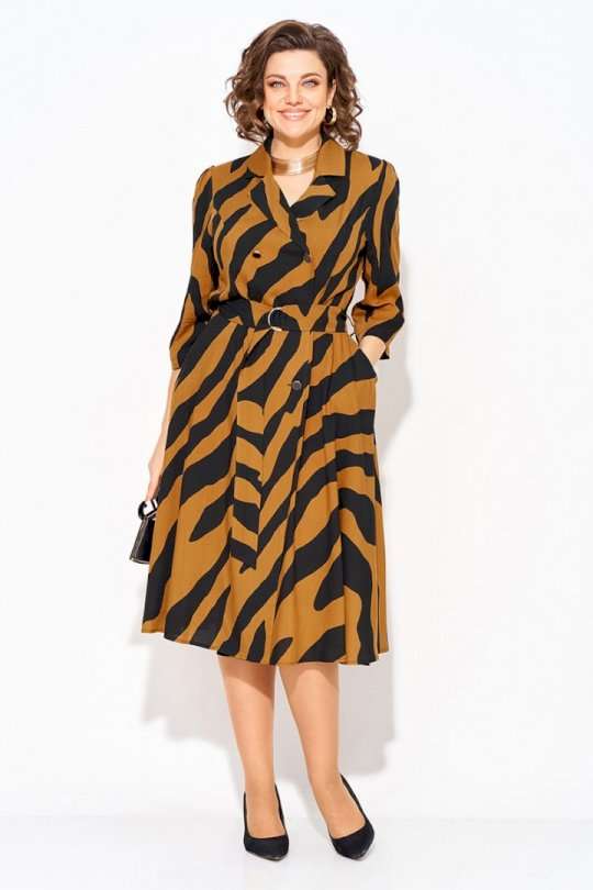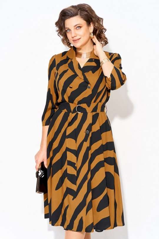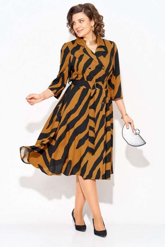 Стильное и элегантное платье с боковыми карманами подойдет для любого повода - от офисных встреч до праздничных торжеств. Английский отложной воротник переходит в двубортную застежку на декоративные пуговицы. По талии платье отрезное, юбка расклешена к низу. По спинке в области талии вставлена резинка для комфортного прилегания. Рукав вточной, длиной ¾-ти, у оката предусмотрена легкая сборка. В комплекте съемный пояс с пряжкой из основной ткани. Благодаря его универсальному дизайну прекрасно подчеркнет вашу фигуру и придаст ей изысканный образ. Подходит для высоких. Вырез на груди добавляет женственности и акцентирует внимание на декольте. В нем вы будете выглядеть нарядно и привлекать восхищенные взгляды окружающих. Длина платья по спинке 118-120 см. Длина рукава 48 см.