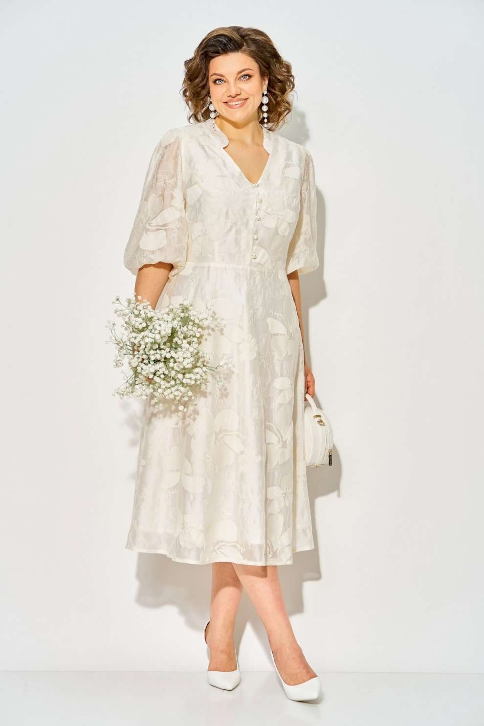 Платье 1537 экрю Liliana-style отличается своим романтическим и нарядным образом. Коллекция бренда Liliana-style предлагает модель длины миди с V-образным вырезом и пуговками из жемчуга. Изготовлено из хлопка в сочетании с вискозой и полиэстером, платье дарит легкость и комфорт, идеальные для весны и лета. Пониженная талия и расклешенная юбка создают женственный силуэт, а рукав-фонарик на резинке добавляет изюминку стилю. Закрытая спинка с потайной молнией завершает образ. Длина изделия составляет 120 см, рукава — 45 см, делая его подходящим как для торжественных мероприятий, так и для повседневного ношения в теплые дни.