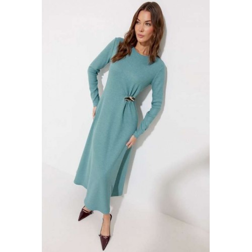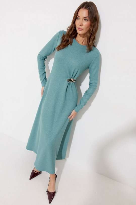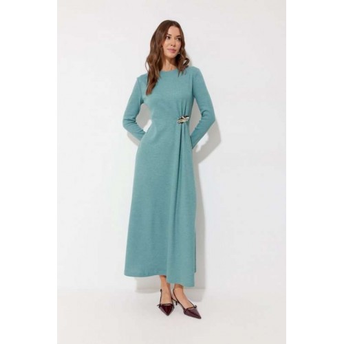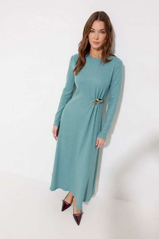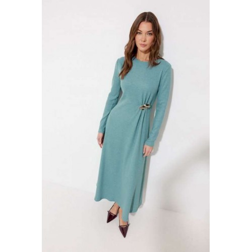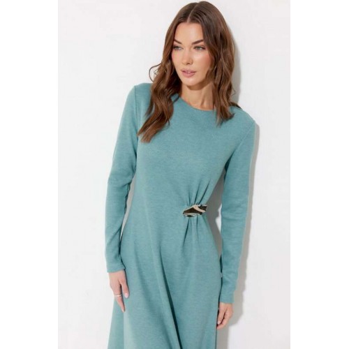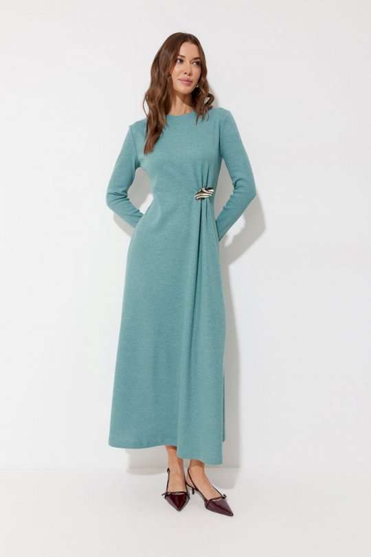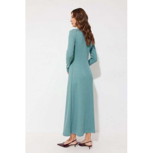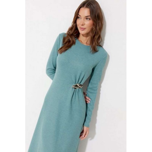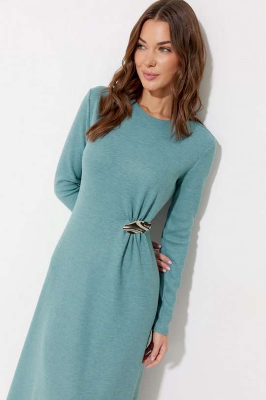 Платье из трикотажного полотна. Платье полуприлегающего силуэта с расширением по низу. Горловина овальной формы. Рукав втачной, длинный. На правом плече две складки. По переду, немного выше линии талии, по левому боку сборка. Шов сборки декорирован пришивным металлическим декором. Обращаем Ваше внимание, что декор может незначительно отличаться от фото. По среднему шву спинки вставлена потайная молния. Подходит на рост 164-170 см. Длина платья (44-48р 130 см) (50-54р 132 см). Длина рукава (44-48р 62 см) (50-54р 63 см).
