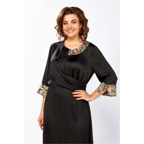 Женское платье, полуприлегающего силуэта, выполнено из легкой текстильной ткани, отделка из сетки с пайетками. Горловина округлой формы, на обтачке, по линии талии отрезное. Лиф с драпировкой по линии талии, по горловине декоративная обтачка из сетки с пайетками и бусинами. Юбка платья расклешенного силуэта, из основной ткани. Спинка также отрезная по линии талии, с резинкой, рукав втачной, оптимальной длины, по низу на манжете из сетки с пайетками. Эффектное платье на любой случай жизни! в 52р. Ширина груди- 55см, Ширина талии -43см резинка, Ширина бедер- 64см, длина рукава- 35см, ширина рукава -19,5см.