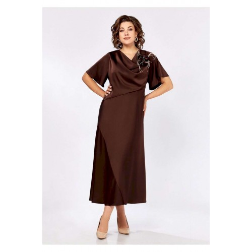 Эффектное, женское платье полуприлегающего силуэта выполнено из атласа. На полочке выполнены ассиметричные подрезы, горловина свободного покроя-«качели», декорирована съемным цветком. Спинка также с ассиметричными подрезами, рукав втачной, укороченный. Эффектное и стильное платье с ярким декором отличный вариант для любого мероприятия! в 52р. Ширина груди- 53см, Ширина талии -52см, Ширина бедер- 60см, длина рукава- 30см, ширина рукава 25см.