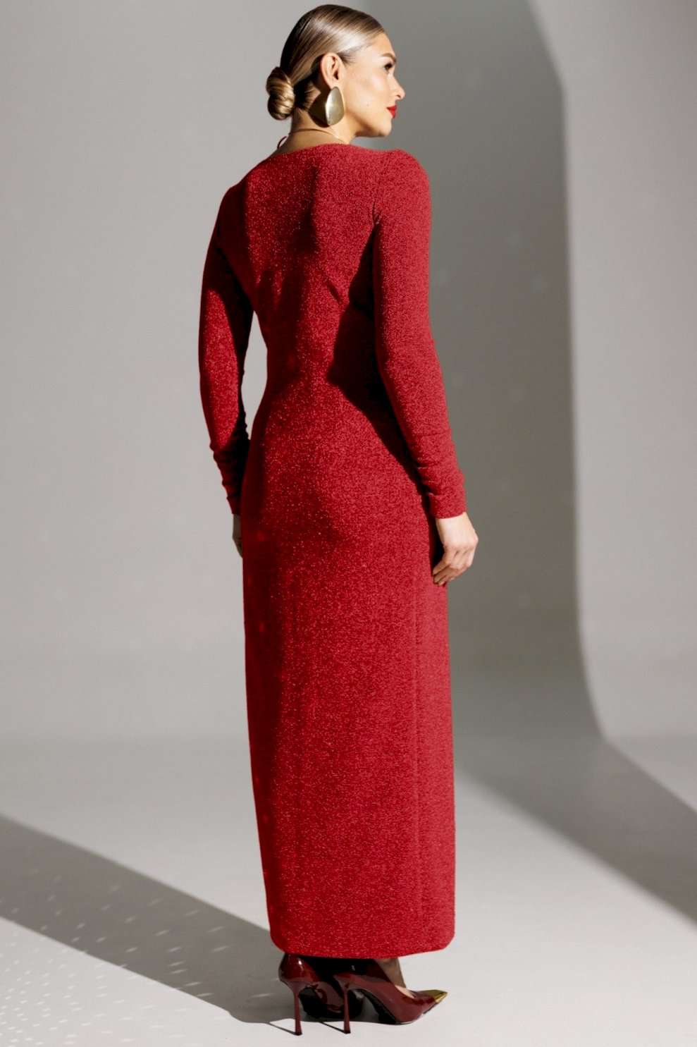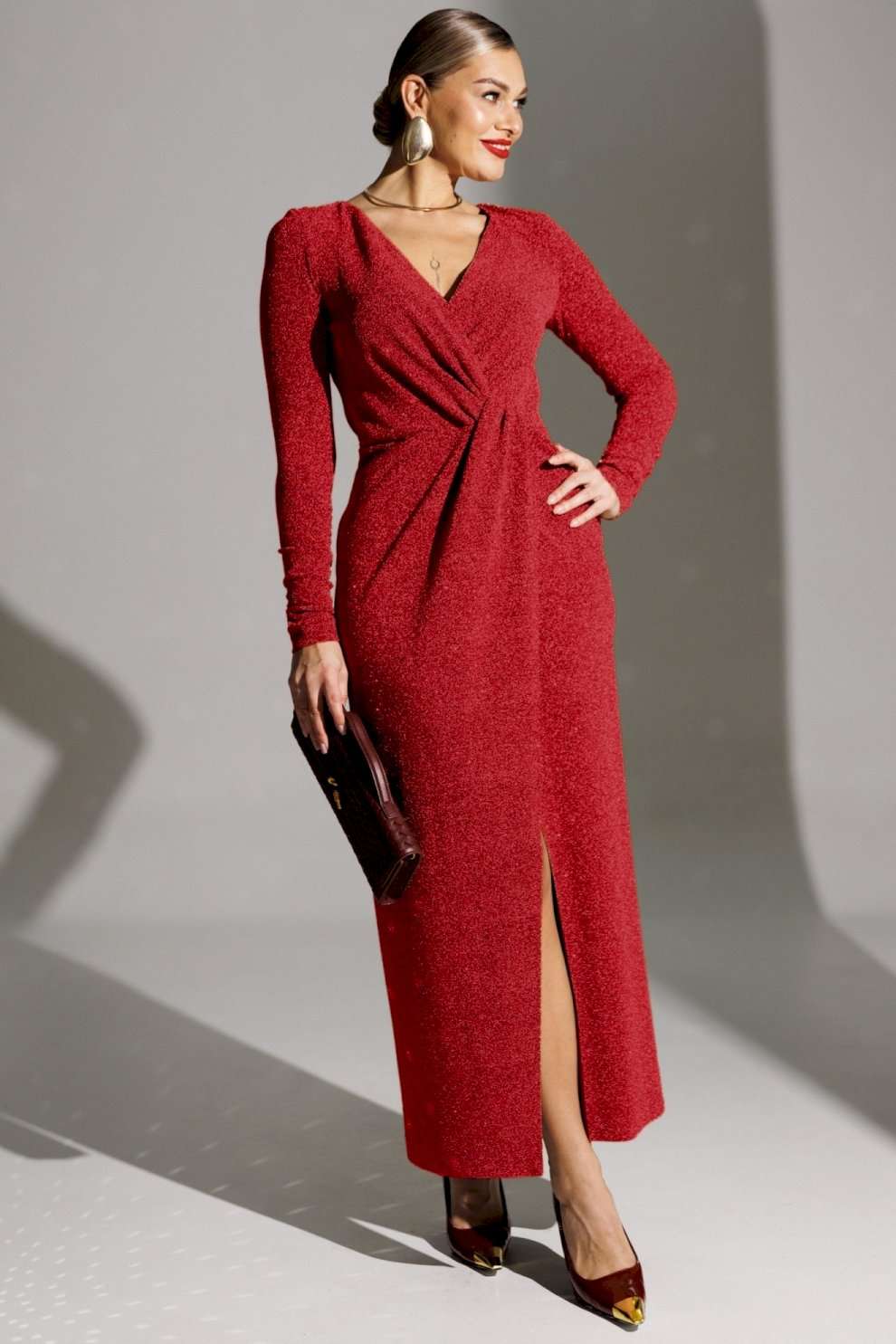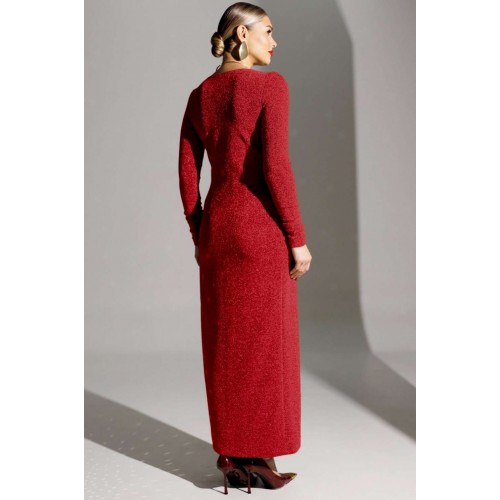 Блеск софитов, огни салютов, игривые пузырьки в бокале - и Ваше сияние обеспечено нашим вечерним платьем! Это действительно озорно, игриво, празднично! И, как ни крути, приковывает взгляды! Представленное платье приталенного силуэта. Спинка с талиевыми вытачками. Перед отрезной по линии талии. Лиф с эффектным V-образным вырезом и узлом в области талии. Юбка на запах. Рукав полуреглан, присборенный на резинку в нижней части (по шву). Платье на подкладке. Материал платья - тонкий трикотаж с блеском. Хорошо тянется. длина рукава (полуреглан): 68 см длина спинки: 143 см